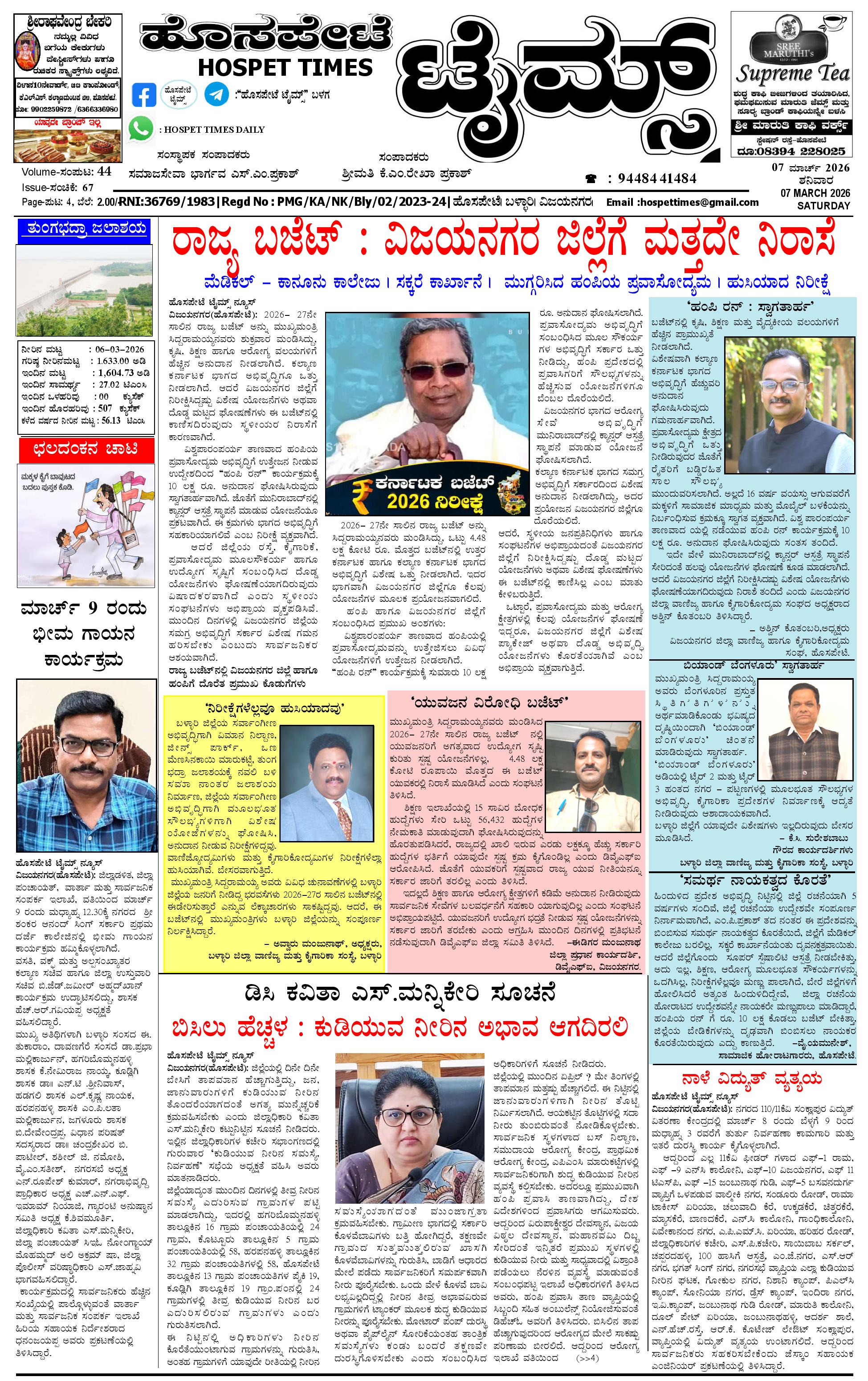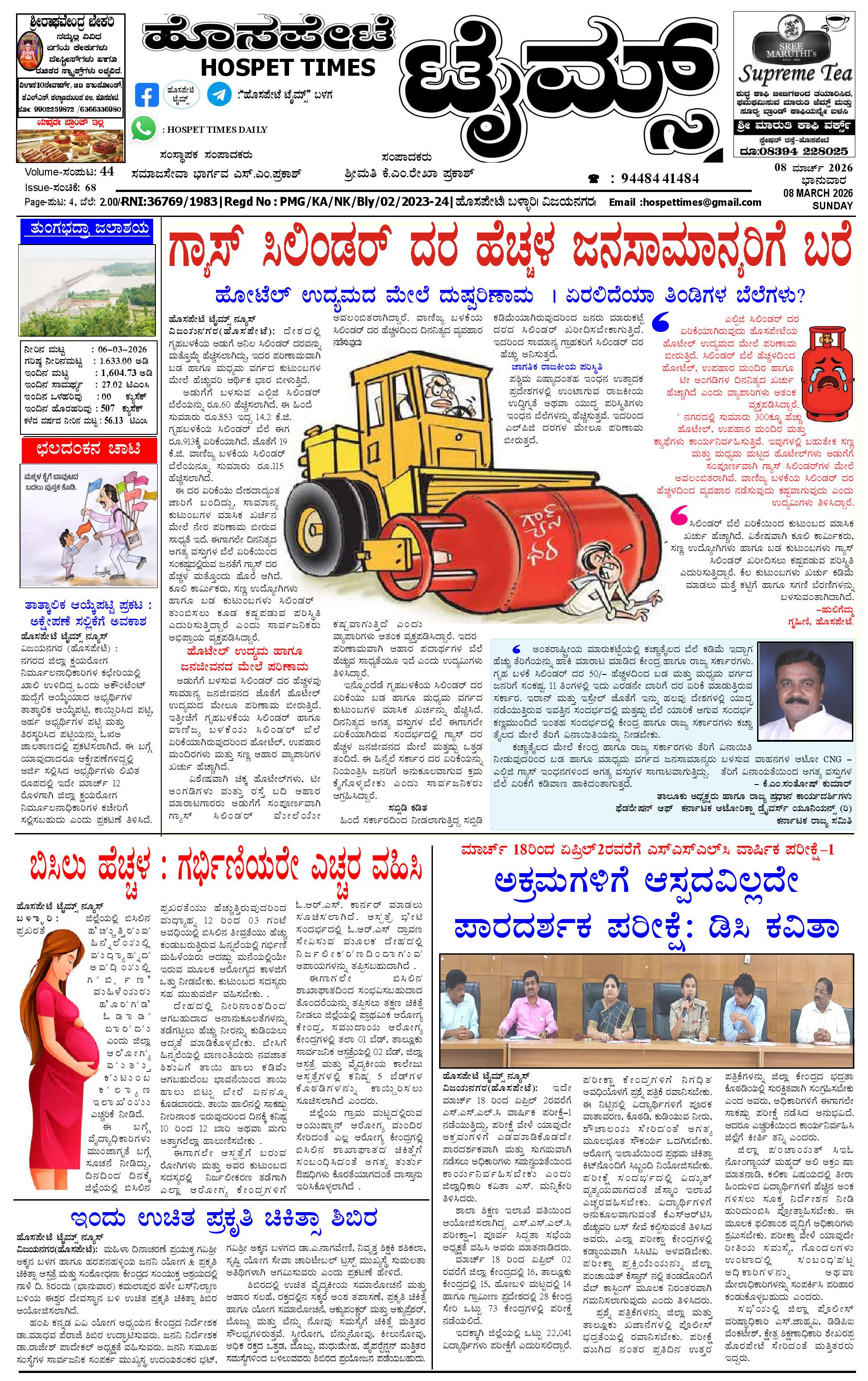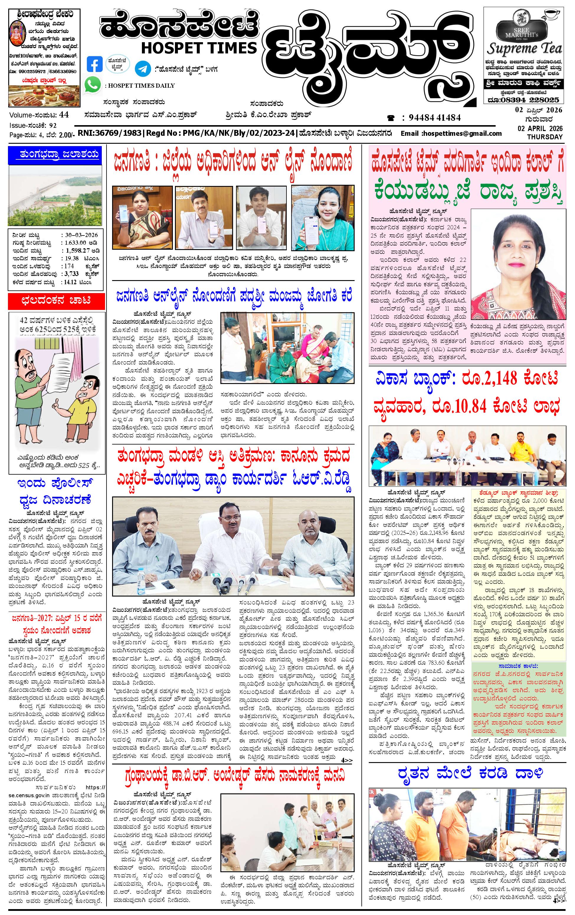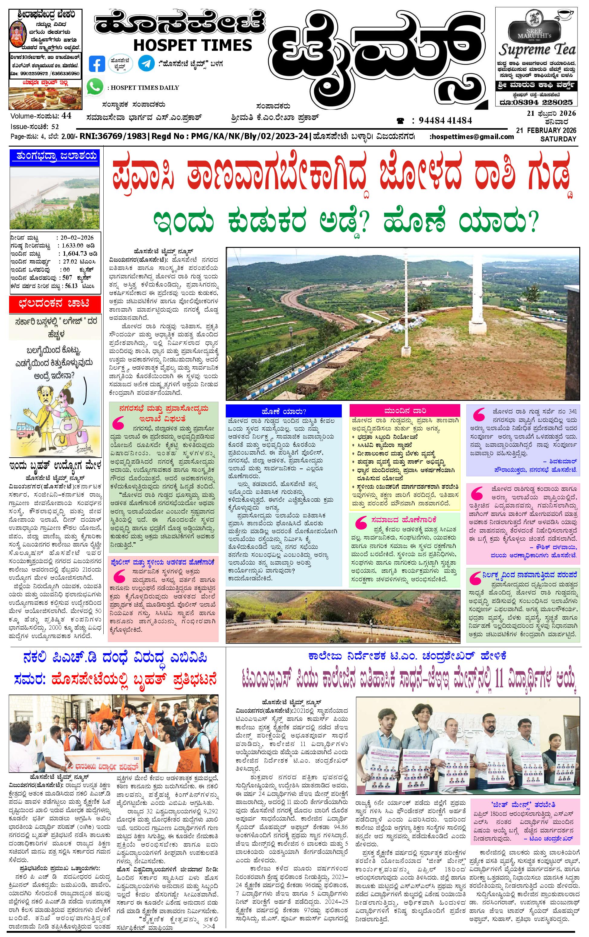 ಮಾಧ್ಯಮ ಅಕಾಡೆಮಿ ಪ್ರಶಸ್ತಿ ಪುರಸ್ಕೃತ 'ಹೊಸಪೇಟೆ ಟೈಮ್ಸ್'