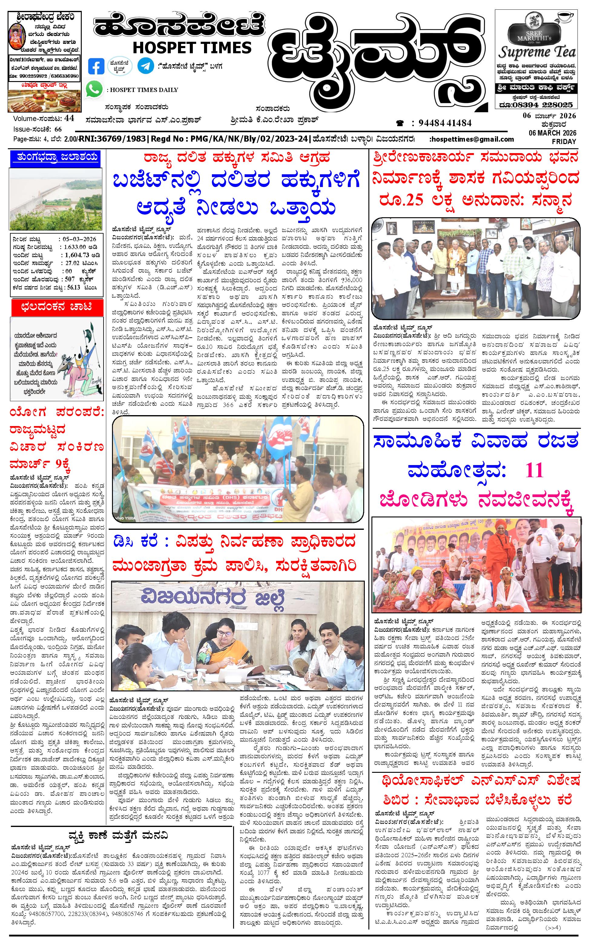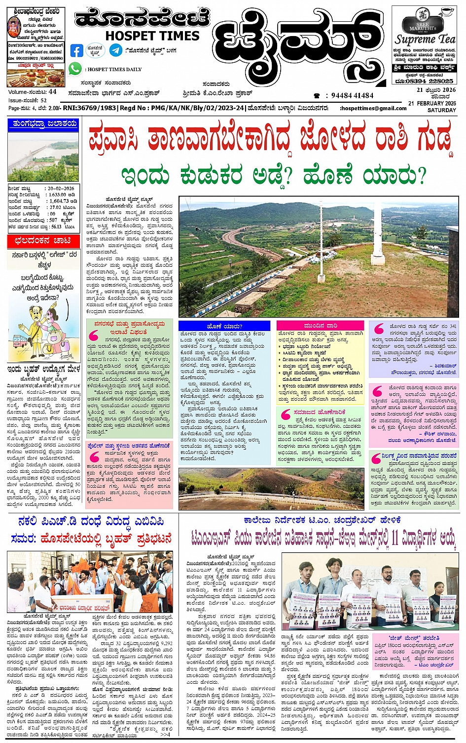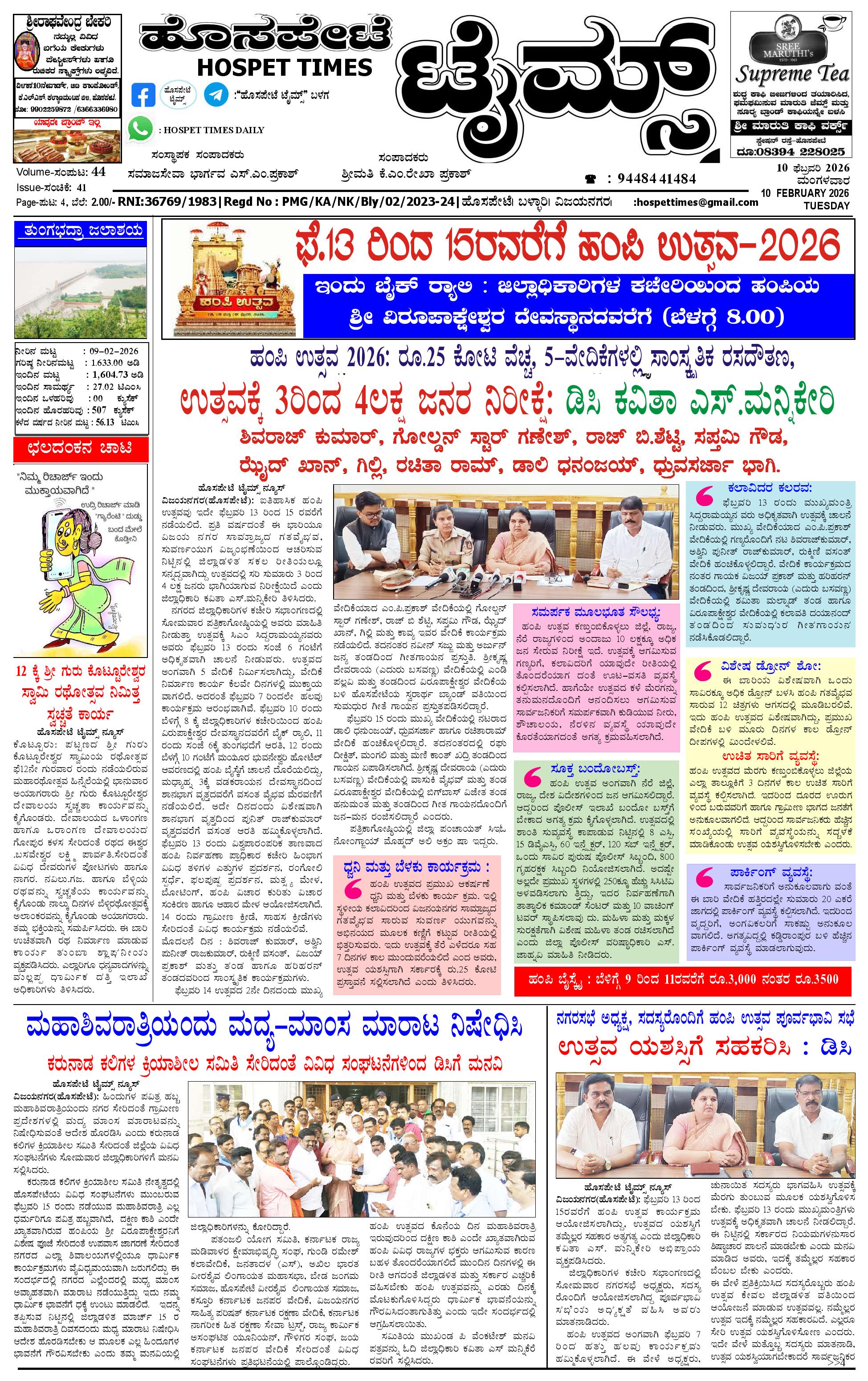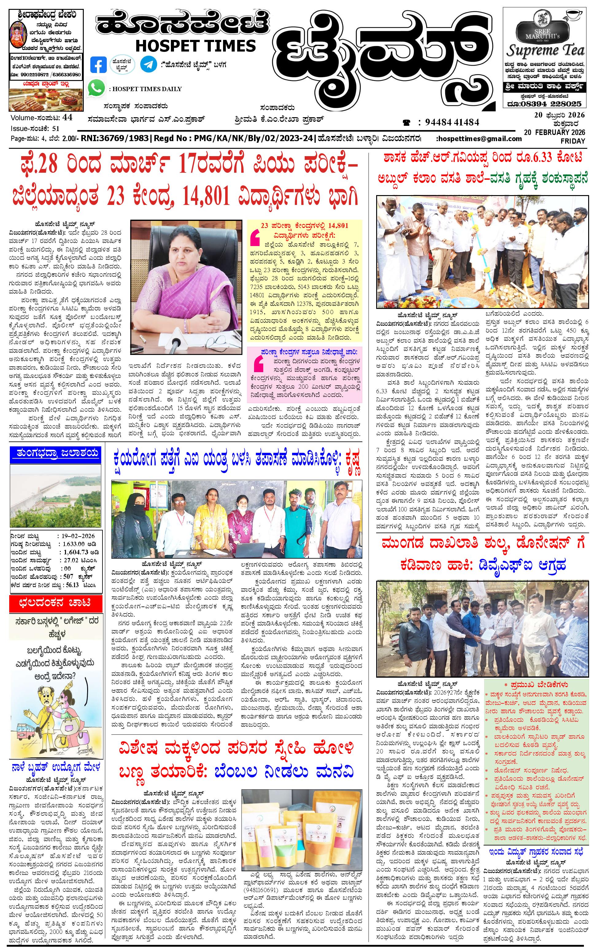 ಮಾಧ್ಯಮ ಅಕಾಡೆಮಿ ಪ್ರಶಸ್ತಿ ಪುರಸ್ಕೃತ 'ಹೊಸಪೇಟೆ ಟೈಮ್ಸ್'
