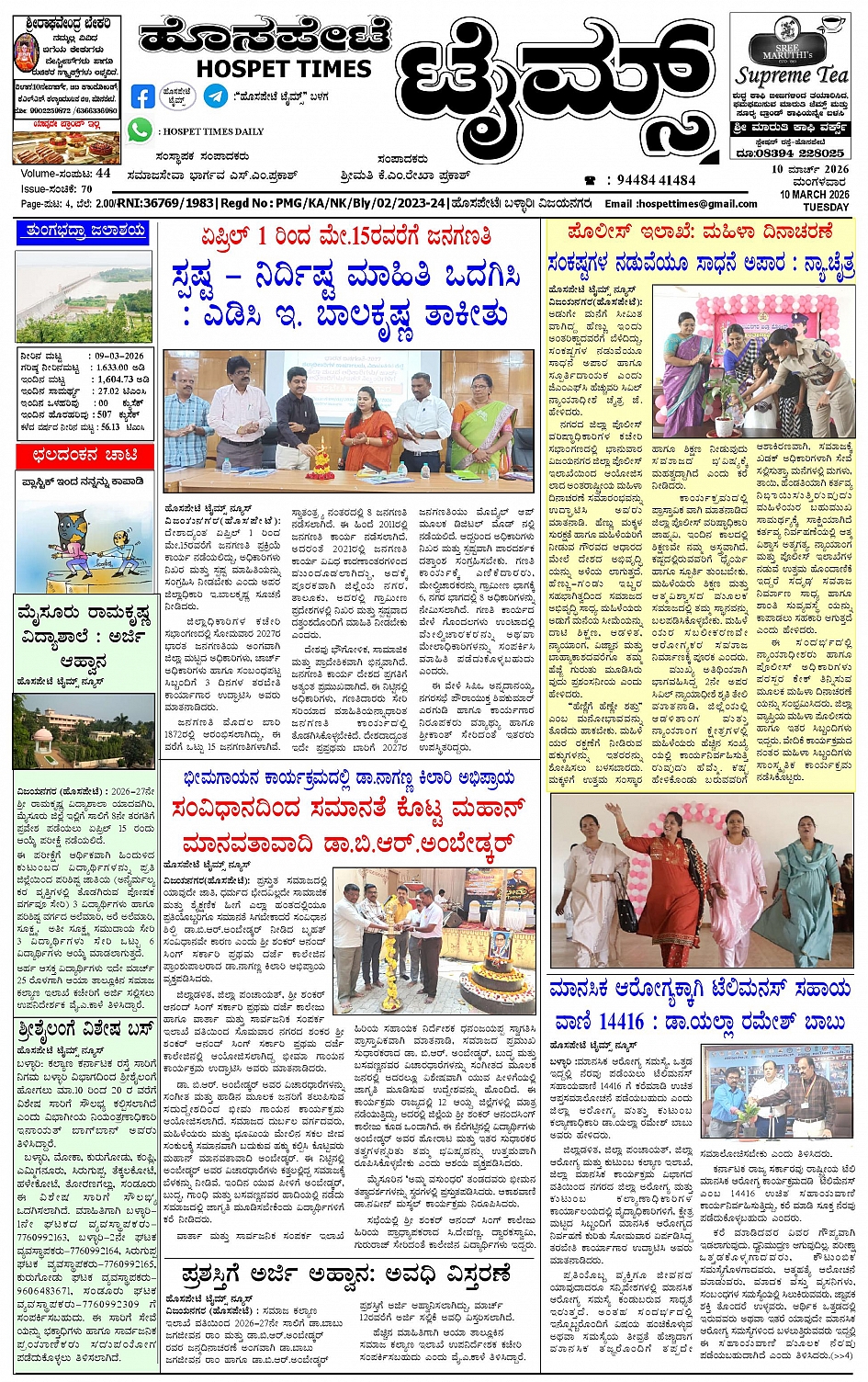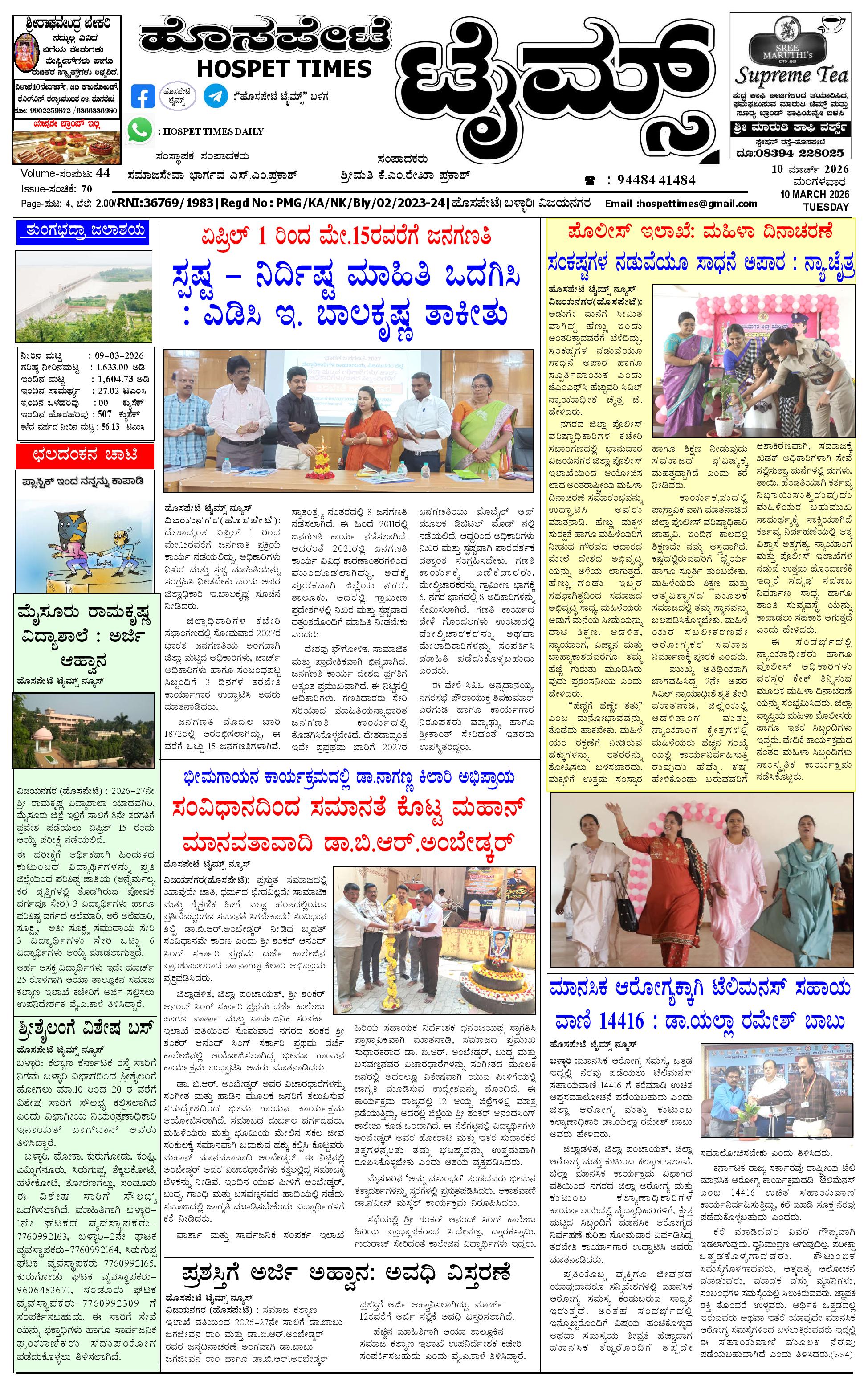 ಮಾಧ್ಯಮ ಅಕಾಡೆಮಿ ಪ್ರಶಸ್ತಿ ಪುರಸ್ಕೃತ 'ಹೊಸಪೇಟೆ ಟೈಮ್ಸ್' March 08, 2026 ಸ್ಥಳೀಯ ಸುದ್ದಿಗಳ ನೈಜ ಪ್ರತಿಬಿಂಬ << First << 1 >> Last >> Page 1Page 2Page 3Page 4 × ಮಾಧ್ಯಮ ಅಕಾಡೆಮಿ ಪ್ರಶಸ್ತಿ ಪುರಸ್ಕೃತ 'ಹೊಸಪೇಟೆ ಟೈಮ್ಸ್' HPT-08032026-page-001HPT-08032026-page-002HPT-08032026-page-003HPT-08032026-page-004 << First << 1 >> Last >> HPT-08032026-page-001HPT-08032026-page-002HPT-08032026-page-003HPT-08032026-page-004 HPT-08032026-page-001