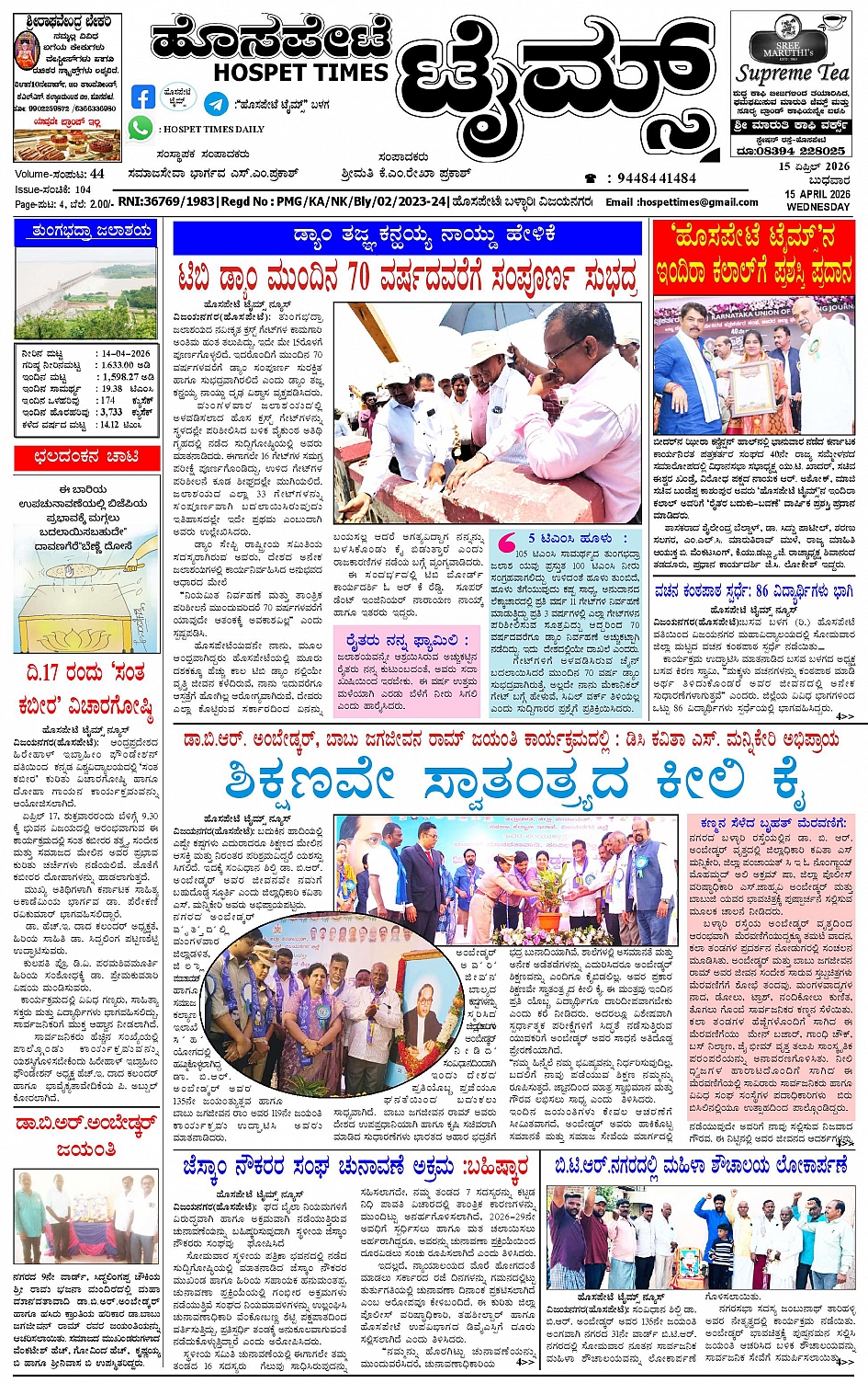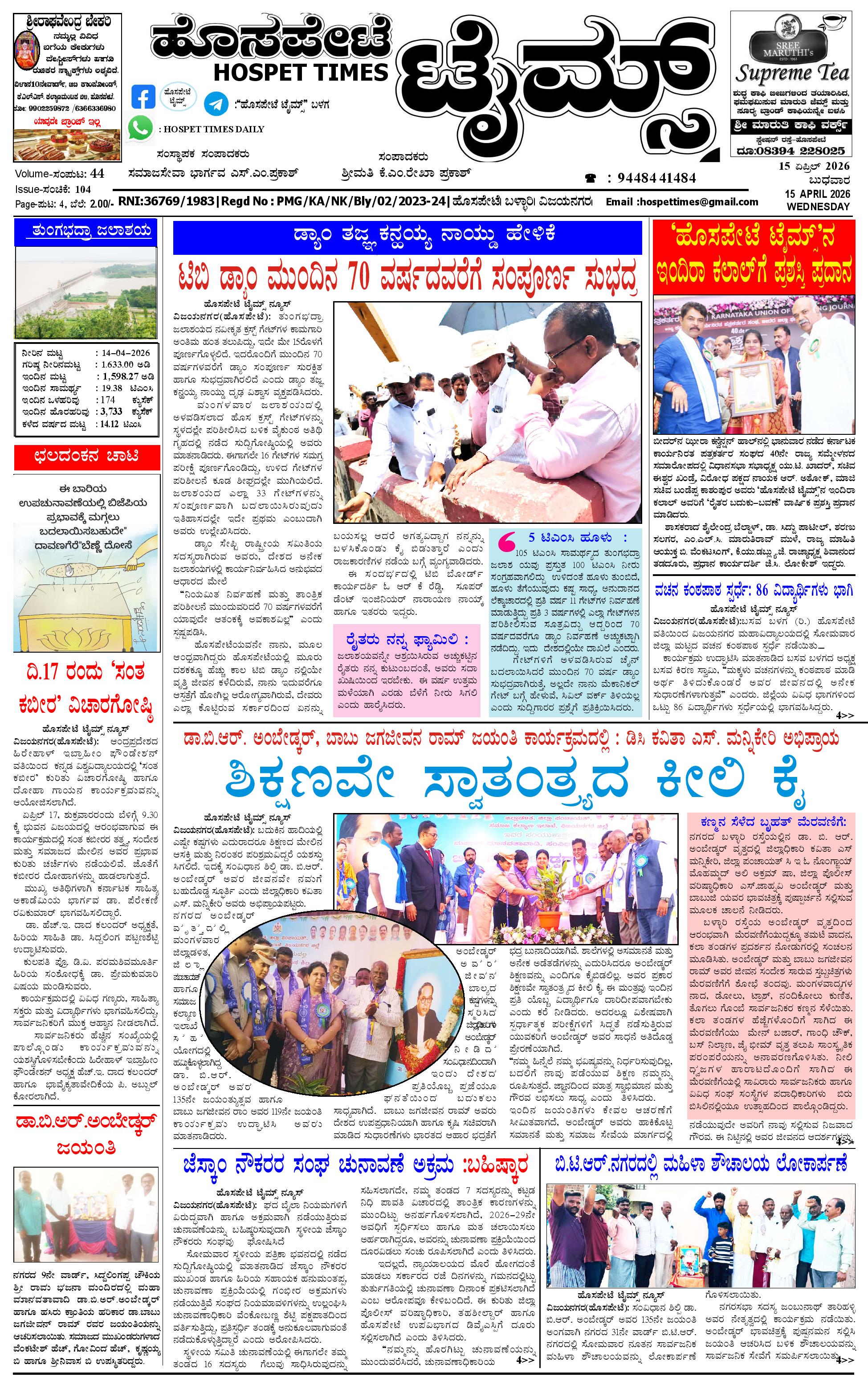 ಮಾಧ್ಯಮ ಅಕಾಡೆಮಿ ಪ್ರಶಸ್ತಿ ಪುರಸ್ಕೃತ 'ಹೊಸಪೇಟೆ ಟೈಮ್ಸ್' April 14, 2026 << First << 1 >> Last >> Page 1Page 2Page 3Page 4 × ಮಾಧ್ಯಮ ಅಕಾಡೆಮಿ ಪ್ರಶಸ್ತಿ ಪುರಸ್ಕೃತ 'ಹೊಸಪೇಟೆ ಟೈಮ್ಸ್' HPT-14042026-4-page-001HPT-14042026-4-page-002HPT-14042026-4-page-003HPT-14042026-4-page-004 << First << 1 >> Last >> HPT-14042026-4-page-001HPT-14042026-4-page-002HPT-14042026-4-page-003HPT-14042026-4-page-004 HPT-14042026-4-page-001