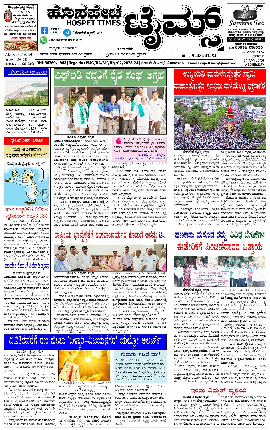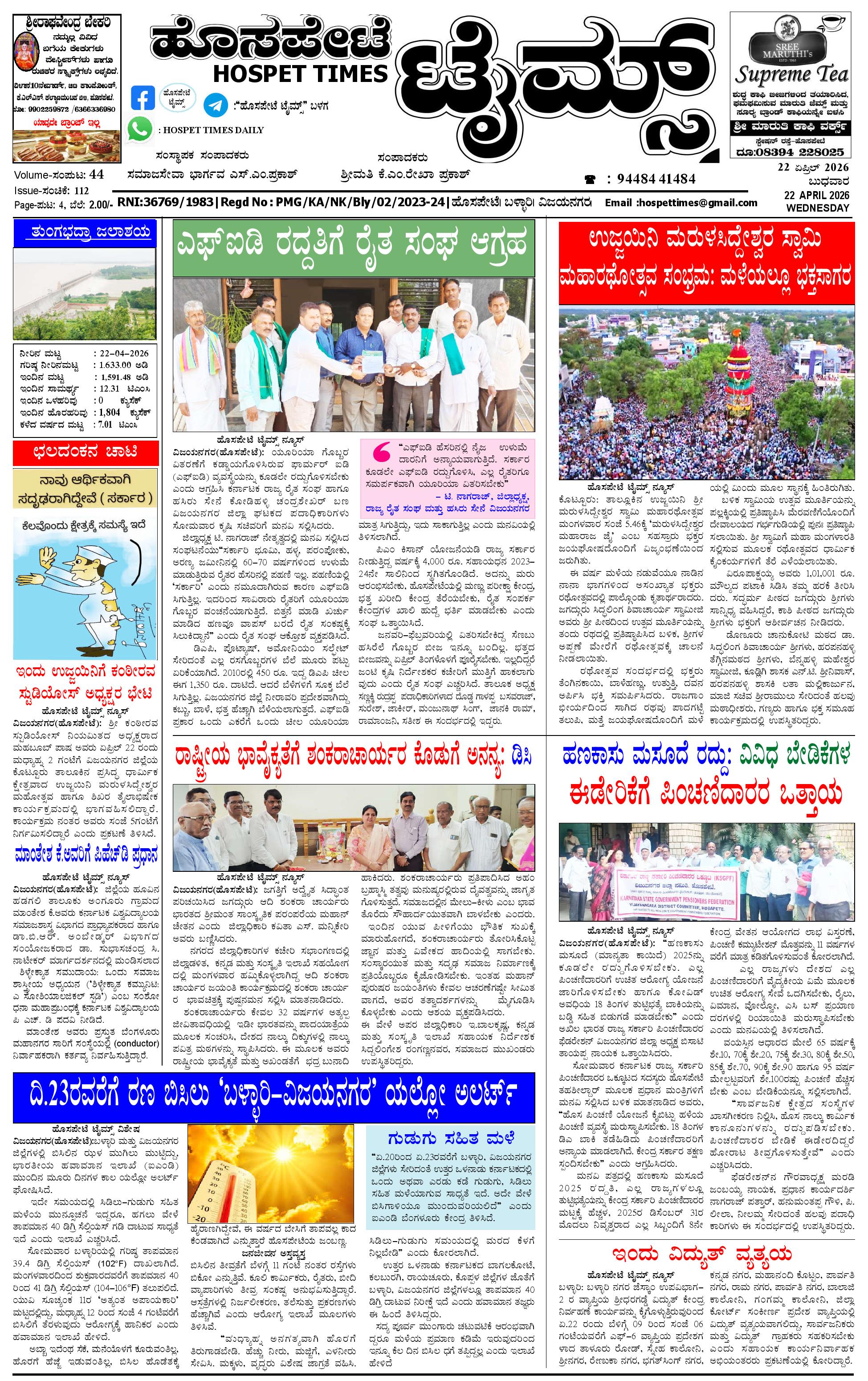 ಮಾಧ್ಯಮ ಅಕಾಡೆಮಿ ಪ್ರಶಸ್ತಿ ಪುರಸ್ಕೃತ 'ಹೊಸಪೇಟೆ ಟೈಮ್ಸ್' April 21, 2026 << First << 1 >> Last >> Page 1Page 2Page 3Page 4 × ಮಾಧ್ಯಮ ಅಕಾಡೆಮಿ ಪ್ರಶಸ್ತಿ ಪುರಸ್ಕೃತ 'ಹೊಸಪೇಟೆ ಟೈಮ್ಸ್' HPT-21042026-page-001HPT-21042026-page-002HPT-21042026-page-003HPT-21042026-page-004 << First << 1 >> Last >> HPT-21042026-page-001HPT-21042026-page-002HPT-21042026-page-003HPT-21042026-page-004 HPT-21042026-page-001