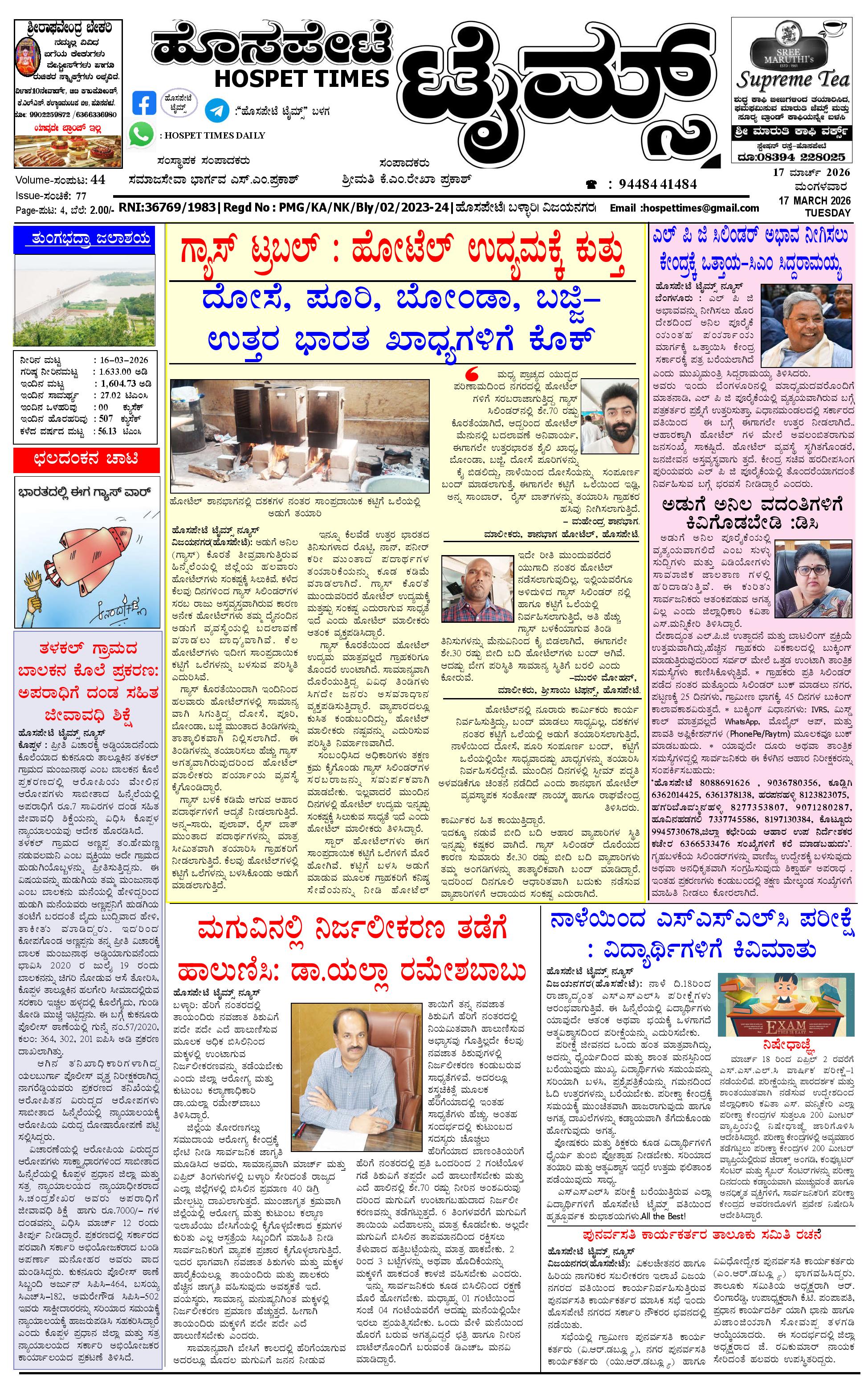 ಮಾಧ್ಯಮ ಅಕಾಡೆಮಿ ಪ್ರಶಸ್ತಿ ಪುರಸ್ಕೃತ 'ಹೊಸಪೇಟೆ ಟೈಮ್ಸ್' March 15, 2026 ಸ್ಥಳೀಯ ಸುದ್ದಿಗಳ ನೈಜ ಪ್ರತಿಬಿಂಬ << First << 1 >> Last >> Page 1Page 2Page 3Page 4 × ಮಾಧ್ಯಮ ಅಕಾಡೆಮಿ ಪ್ರಶಸ್ತಿ ಪುರಸ್ಕೃತ 'ಹೊಸಪೇಟೆ ಟೈಮ್ಸ್' HPT-15032026-page-001HPT-15032026-page-002HPT-15032026-page-003HPT-15032026-page-004 << First << 1 >> Last >> HPT-15032026-page-001HPT-15032026-page-002HPT-15032026-page-003HPT-15032026-page-004 HPT-15032026-page-001