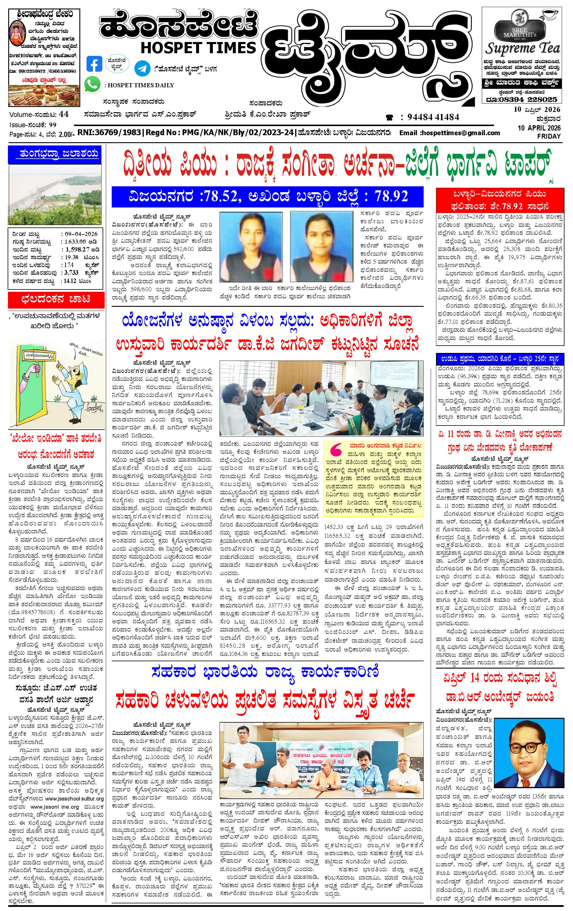 ಮಾಧ್ಯಮ ಅಕಾಡೆಮಿ ಪ್ರಶಸ್ತಿ ಪುರಸ್ಕೃತ 'ಹೊಸಪೇಟೆ ಟೈಮ್ಸ್' April 10, 2026 << First << 1 >> Last >> Page 1Page 2Page 3Page 4 × ಮಾಧ್ಯಮ ಅಕಾಡೆಮಿ ಪ್ರಶಸ್ತಿ ಪುರಸ್ಕೃತ 'ಹೊಸಪೇಟೆ ಟೈಮ್ಸ್' HPT-10042026--4-page-001HPT-10042026--4-page-002HPT-10042026--4-page-003HPT-10042026--4-page-004 << First << 1 >> Last >> HPT-10042026--4-page-001HPT-10042026--4-page-002HPT-10042026--4-page-003HPT-10042026--4-page-004 HPT-10042026--4-page-001