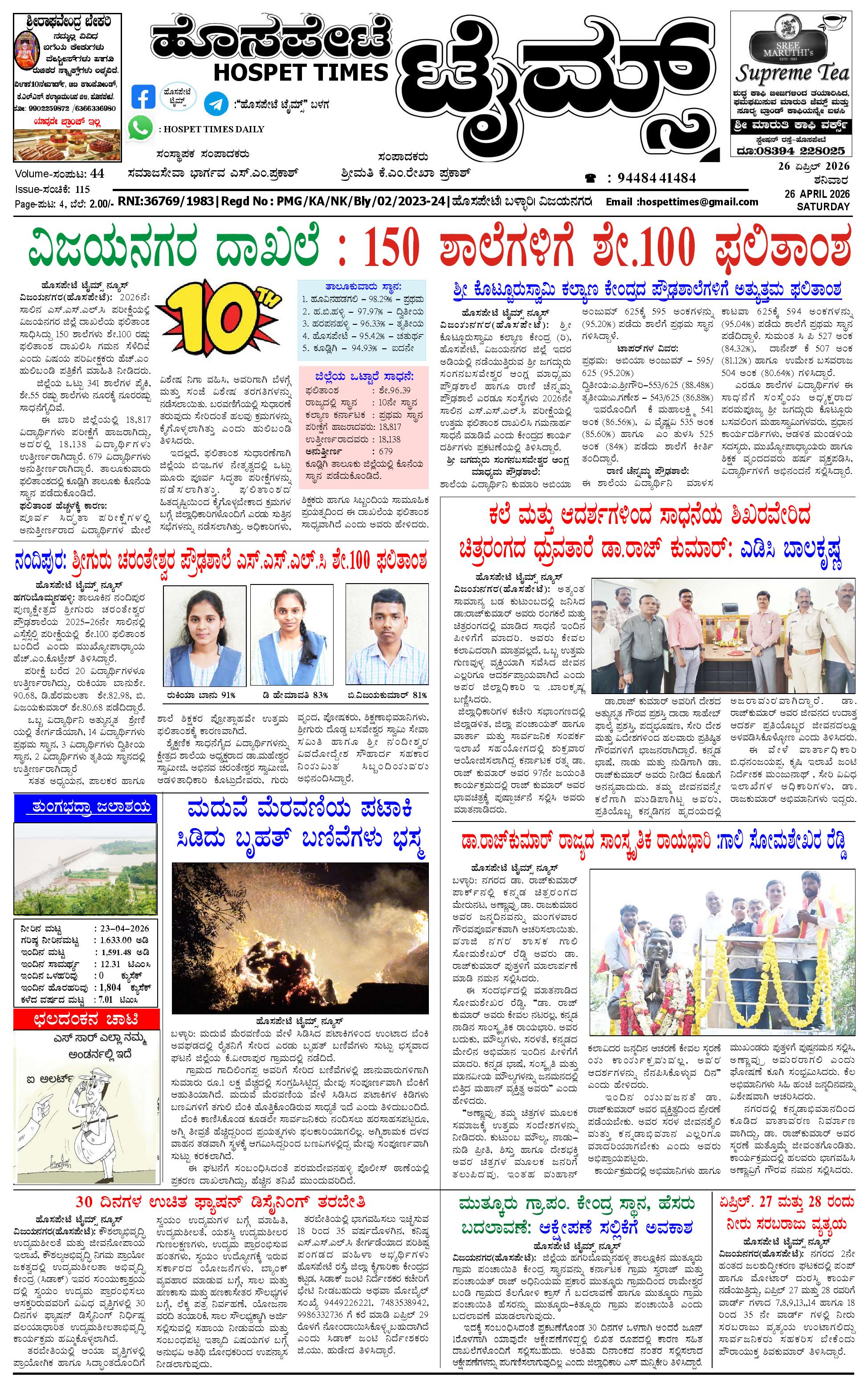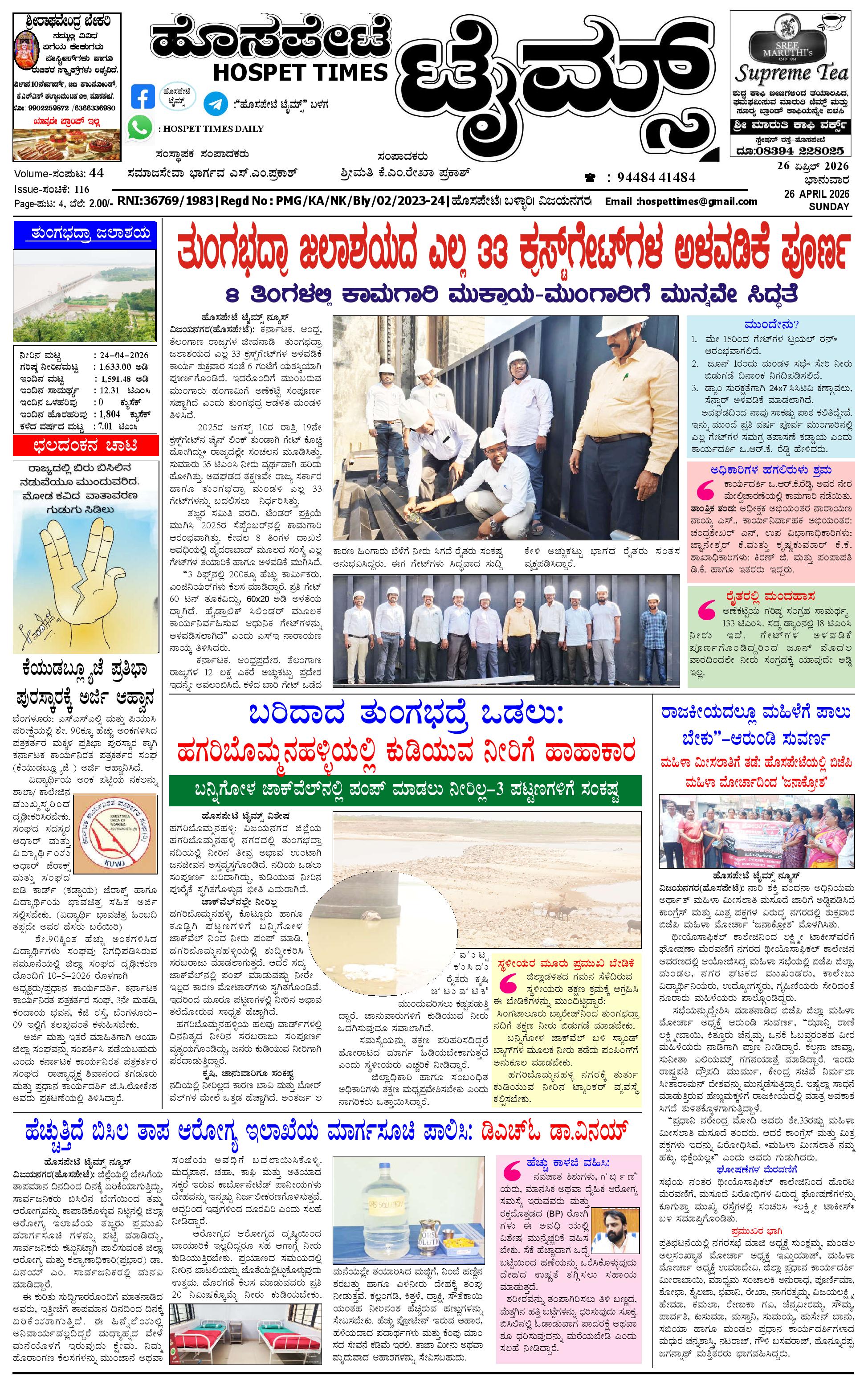 ಮಾಧ್ಯಮ ಅಕಾಡೆಮಿ ಪ್ರಶಸ್ತಿ ಪುರಸ್ಕೃತ 'ಹೊಸಪೇಟೆ ಟೈಮ್ಸ್' April 25, 2026 << First << 1 >> Last >> Page 1Page 2Page 3Page 4 × ಮಾಧ್ಯಮ ಅಕಾಡೆಮಿ ಪ್ರಶಸ್ತಿ ಪುರಸ್ಕೃತ 'ಹೊಸಪೇಟೆ ಟೈಮ್ಸ್' HPT-25042026-4-page-001HPT-25042026-4-page-002HPT-25042026-4-page-003HPT-25042026-4-page-004 << First << 1 >> Last >> HPT-25042026-4-page-001HPT-25042026-4-page-002HPT-25042026-4-page-003HPT-25042026-4-page-004 HPT-25042026-4-page-001