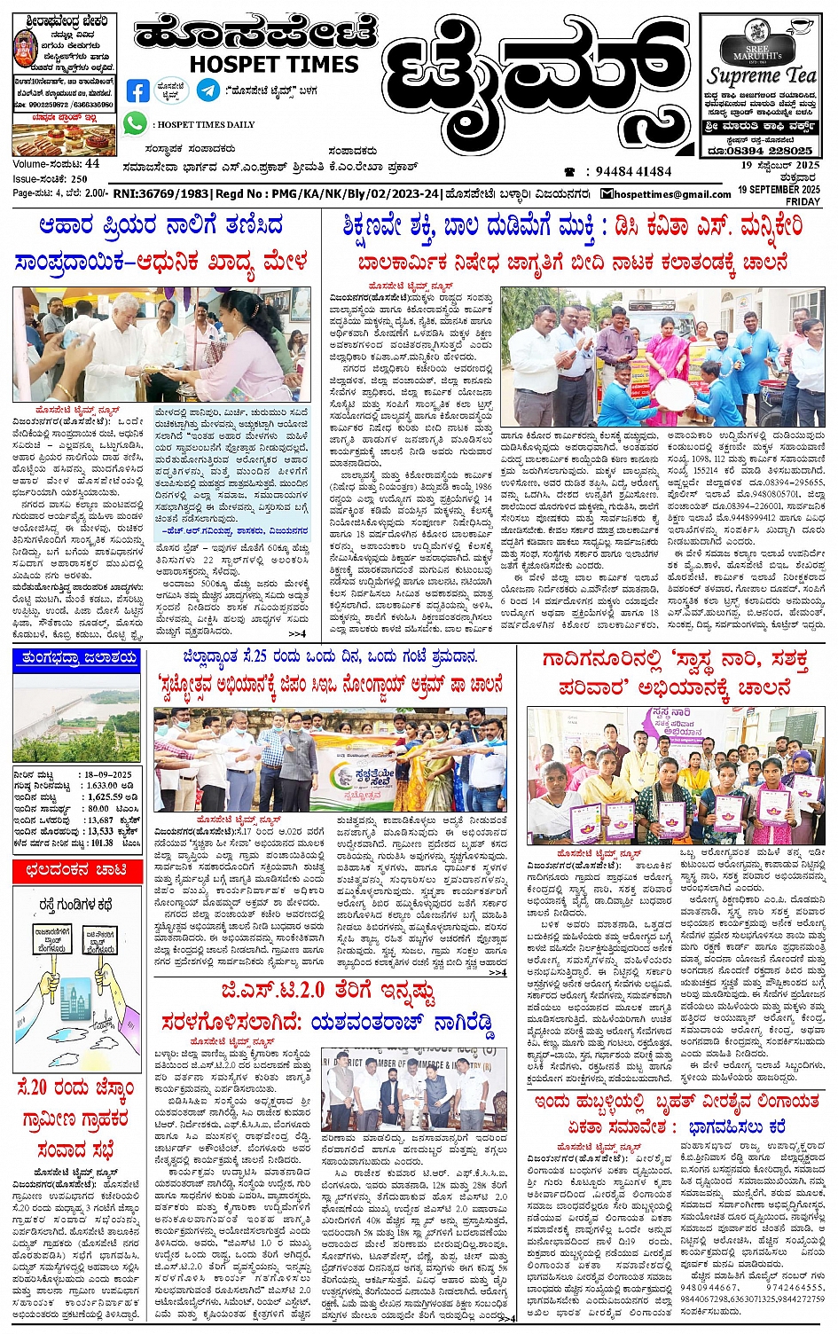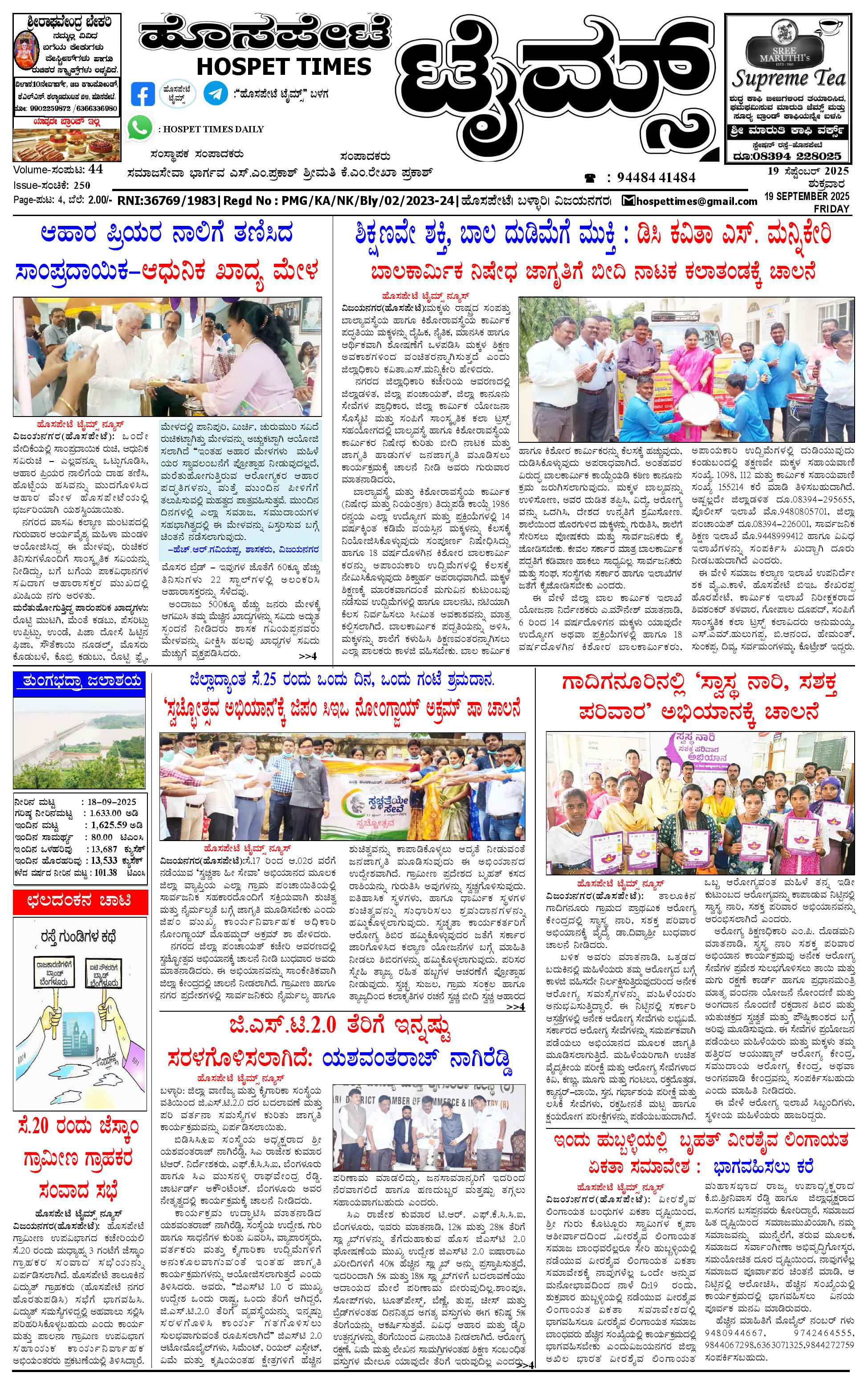 ಮಾಧ್ಯಮ ಅಕಾಡೆಮಿ ಪ್ರಶಸ್ತಿ ಪುರಸ್ಕೃತ 'ಹೊಸಪೇಟೆ ಟೈಮ್ಸ್' September 19, 2025 << First << 1 >> Last >> Page 1Page 2Page 3Page 4 × ಮಾಧ್ಯಮ ಅಕಾಡೆಮಿ ಪ್ರಶಸ್ತಿ ಪುರಸ್ಕೃತ 'ಹೊಸಪೇಟೆ ಟೈಮ್ಸ್' HPT-19092025--4-page-001HPT-19092025--4-page-002HPT-19092025--4-page-003HPT-19092025--4-page-004 << First << 1 >> Last >> HPT-19092025--4-page-001HPT-19092025--4-page-002HPT-19092025--4-page-003HPT-19092025--4-page-004 HPT-19092025--4-page-001