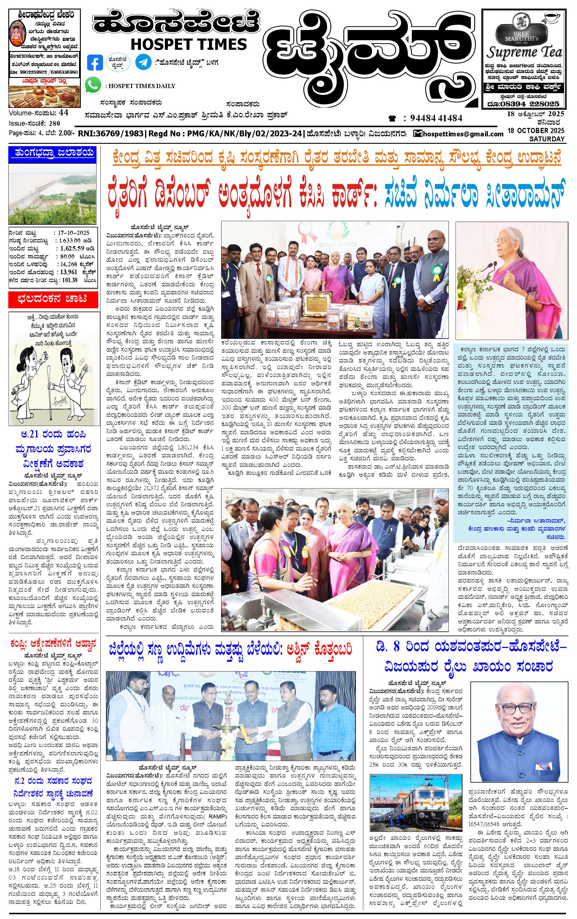ಮಾಧ್ಯಮ ಅಕಾಡೆಮಿ ಪ್ರಶಸ್ತಿ ಪುರಸ್ಕೃತ 'ಹೊಸಪೇಟೆ ಟೈಮ್ಸ್' October 18, 2025 << First << 1 >> Last >> Page 1Page 2Page 3Page 4 × ಮಾಧ್ಯಮ ಅಕಾಡೆಮಿ ಪ್ರಶಸ್ತಿ ಪುರಸ್ಕೃತ 'ಹೊಸಪೇಟೆ ಟೈಮ್ಸ್' HPT-18102025--4-page-001HPT-18102025--4-page-002HPT-18102025--4-page-003HPT-18102025--4-page-004 << First << 1 >> Last >> HPT-18102025--4-page-001HPT-18102025--4-page-002HPT-18102025--4-page-003HPT-18102025--4-page-004 HPT-18102025--4-page-001