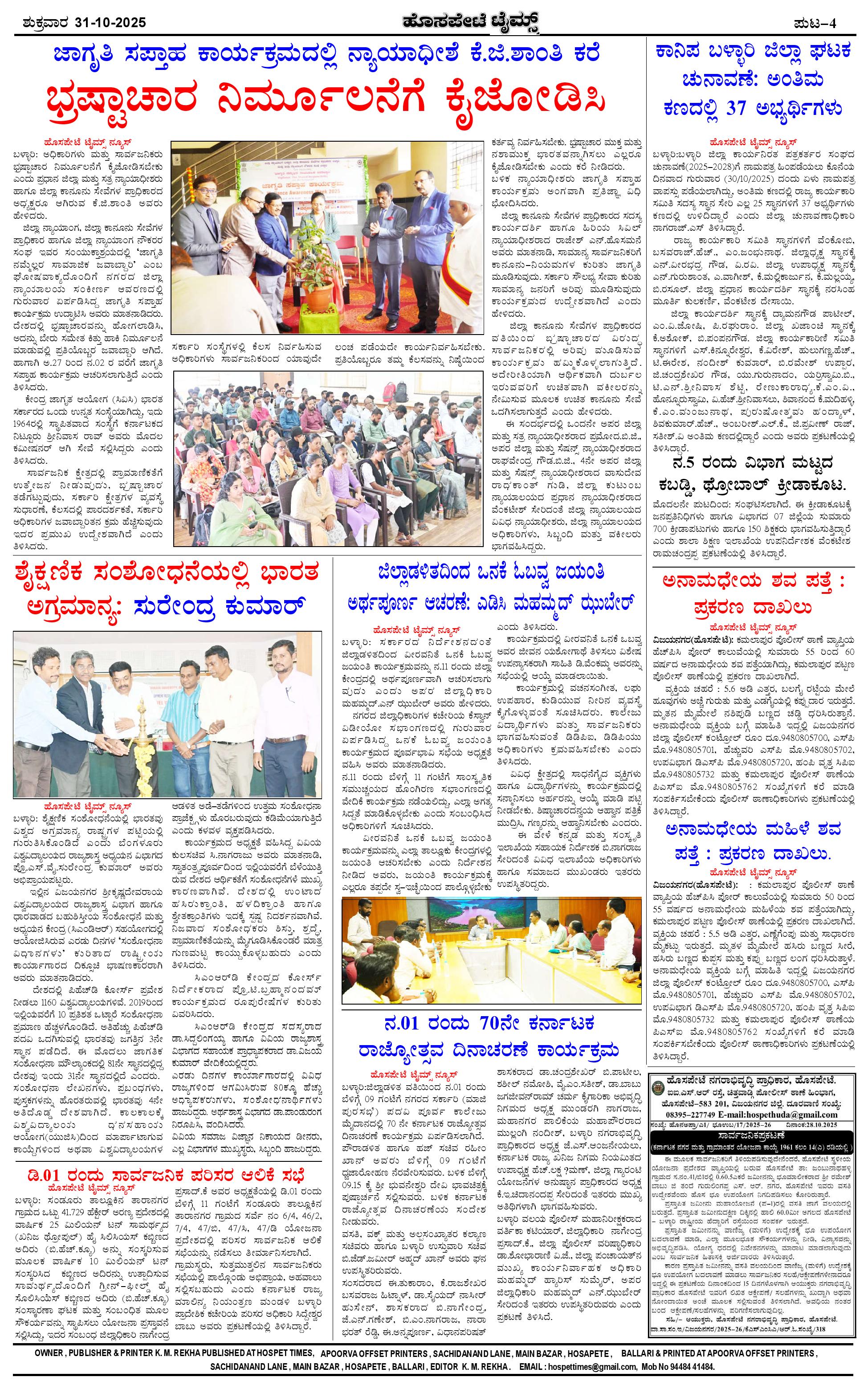 ಮಾಧ್ಯಮ ಅಕಾಡೆಮಿ ಪ್ರಶಸ್ತಿ ಪುರಸ್ಕೃತ 'ಹೊಸಪೇಟೆ ಟೈಮ್ಸ್' Page: 4 October 31, 2025 << First << 4 >> Last >> Page 1Page 2Page 3Page 4 × ಮಾಧ್ಯಮ ಅಕಾಡೆಮಿ ಪ್ರಶಸ್ತಿ ಪುರಸ್ಕೃತ 'ಹೊಸಪೇಟೆ ಟೈಮ್ಸ್' HPT-31102025--4-page-001HPT-31102025--4-page-002HPT-31102025--4-page-003HPT-31102025--4-page-004 << First << 4 >> Last >> HPT-31102025--4-page-001HPT-31102025--4-page-002HPT-31102025--4-page-003HPT-31102025--4-page-004 HPT-31102025--4-page-004