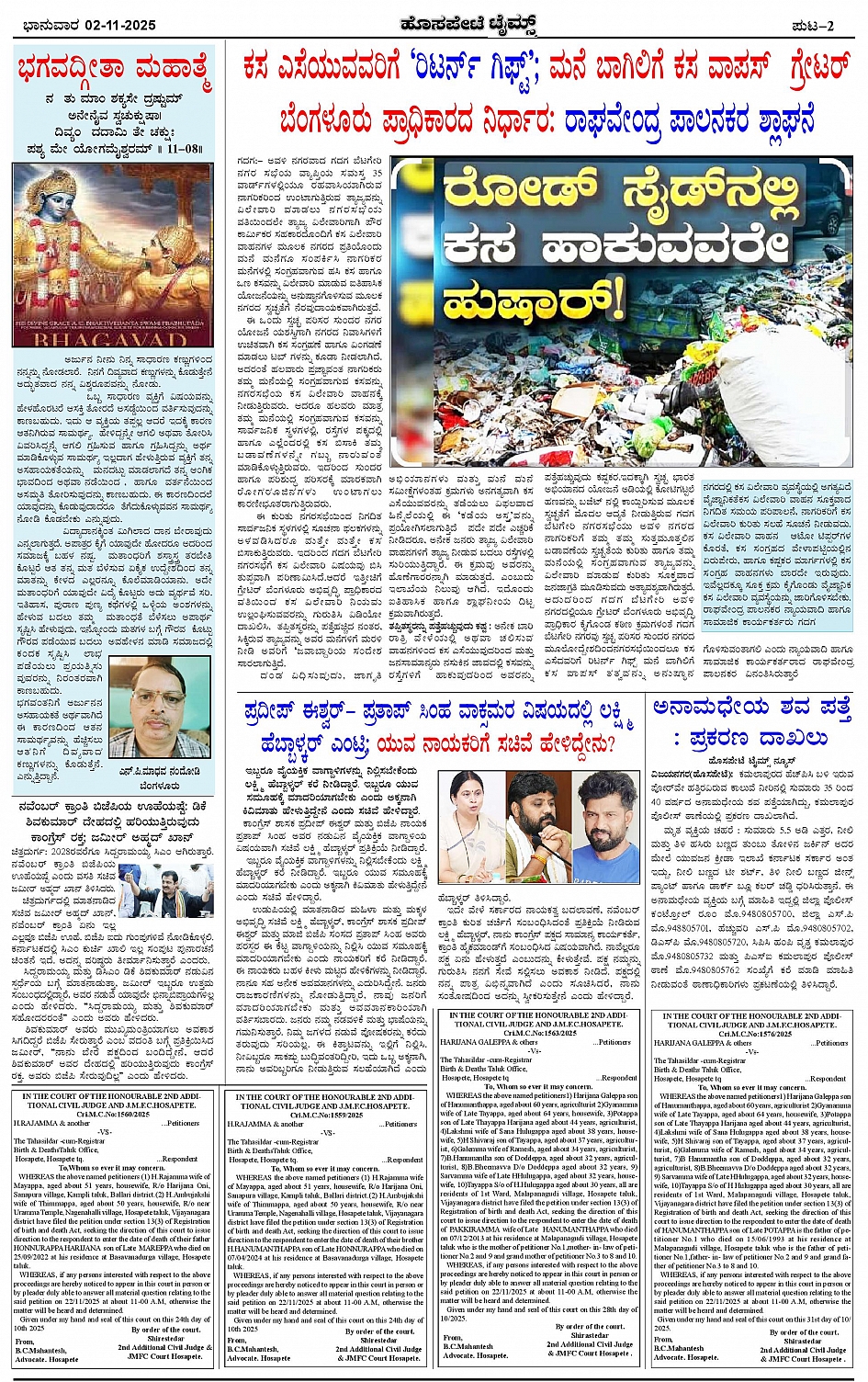 ಮಾಧ್ಯಮ ಅಕಾಡೆಮಿ ಪ್ರಶಸ್ತಿ ಪುರಸ್ಕೃತ 'ಹೊಸಪೇಟೆ ಟೈಮ್ಸ್' Page: 2 November 02, 2025 << First << 2 >> Last >> Page 1Page 2Page 3Page 4 × ಮಾಧ್ಯಮ ಅಕಾಡೆಮಿ ಪ್ರಶಸ್ತಿ ಪುರಸ್ಕೃತ 'ಹೊಸಪೇಟೆ ಟೈಮ್ಸ್' HPT-02112025--4-page-001HPT-02112025--4-page-002HPT-02112025--4-page-003HPT-02112025--4-page-004 << First << 2 >> Last >> HPT-02112025--4-page-001HPT-02112025--4-page-002HPT-02112025--4-page-003HPT-02112025--4-page-004 HPT-02112025--4-page-002