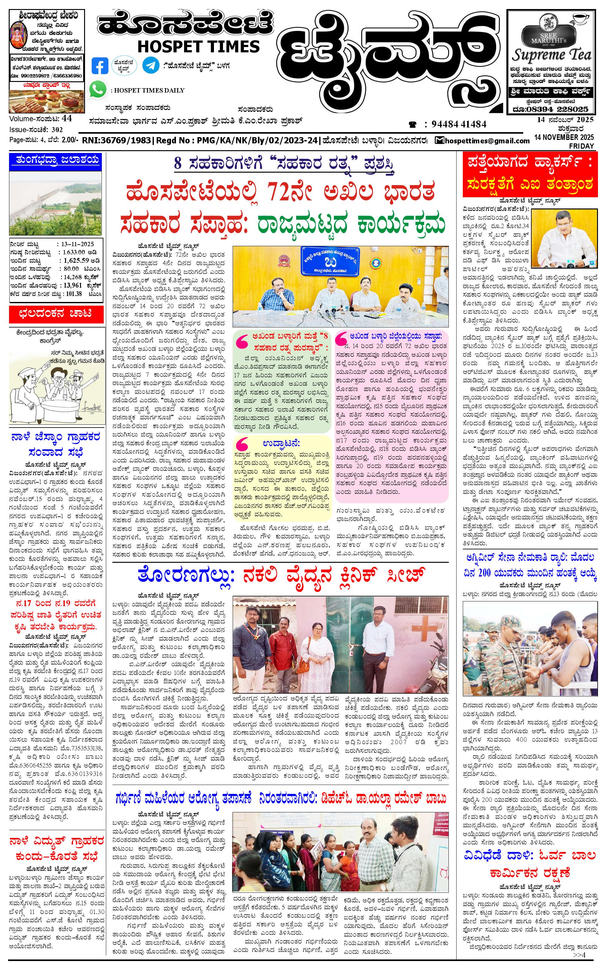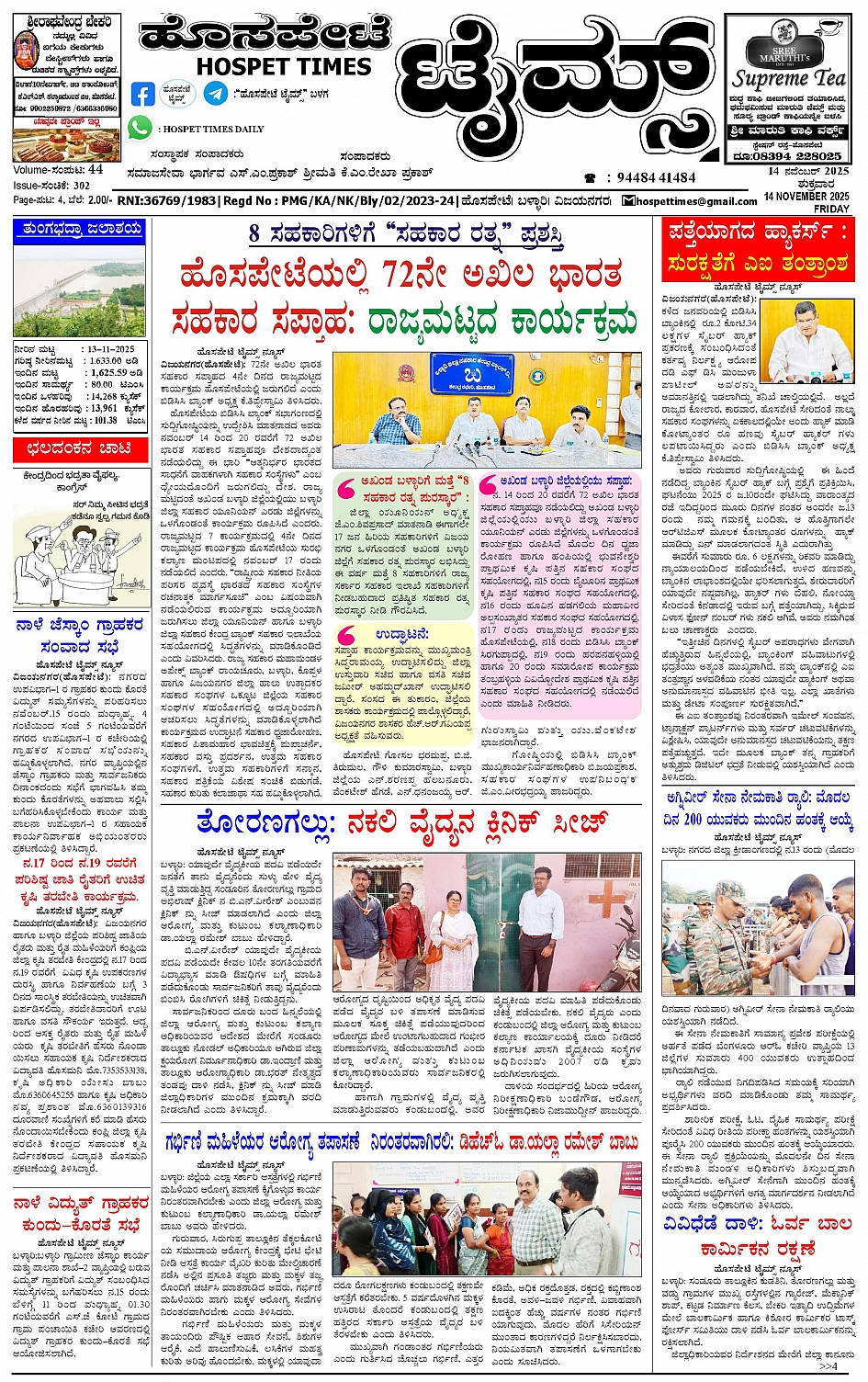ಮಾಧ್ಯಮ ಅಕಾಡೆಮಿ ಪ್ರಶಸ್ತಿ ಪುರಸ್ಕೃತ 'ಹೊಸಪೇಟೆ ಟೈಮ್ಸ್' November 14, 2025 << First << 1 >> Last >> Page 1Page 2Page 3Page 4 × ಮಾಧ್ಯಮ ಅಕಾಡೆಮಿ ಪ್ರಶಸ್ತಿ ಪುರಸ್ಕೃತ 'ಹೊಸಪೇಟೆ ಟೈಮ್ಸ್' HPT-14112025-4 PAGE-page-001HPT-14112025-4 PAGE-page-002HPT-14112025-4 PAGE-page-003HPT-14112025-4 PAGE-page-004 << First << 1 >> Last >> HPT-14112025-4 PAGE-page-001HPT-14112025-4 PAGE-page-002HPT-14112025-4 PAGE-page-003HPT-14112025-4 PAGE-page-004 HPT-14112025-4 PAGE-page-001