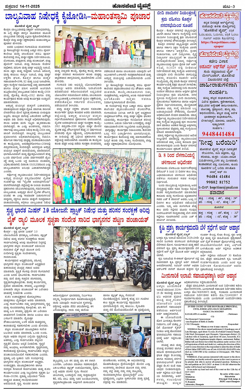 ಮಾಧ್ಯಮ ಅಕಾಡೆಮಿ ಪ್ರಶಸ್ತಿ ಪುರಸ್ಕೃತ 'ಹೊಸಪೇಟೆ ಟೈಮ್ಸ್' Page: 3 November 14, 2025 << First << 3 >> Last >> Page 1Page 2Page 3Page 4 × ಮಾಧ್ಯಮ ಅಕಾಡೆಮಿ ಪ್ರಶಸ್ತಿ ಪುರಸ್ಕೃತ 'ಹೊಸಪೇಟೆ ಟೈಮ್ಸ್' HPT-14112025-4 PAGE-page-001HPT-14112025-4 PAGE-page-002HPT-14112025-4 PAGE-page-003HPT-14112025-4 PAGE-page-004 << First << 3 >> Last >> HPT-14112025-4 PAGE-page-001HPT-14112025-4 PAGE-page-002HPT-14112025-4 PAGE-page-003HPT-14112025-4 PAGE-page-004 HPT-14112025-4 PAGE-page-003