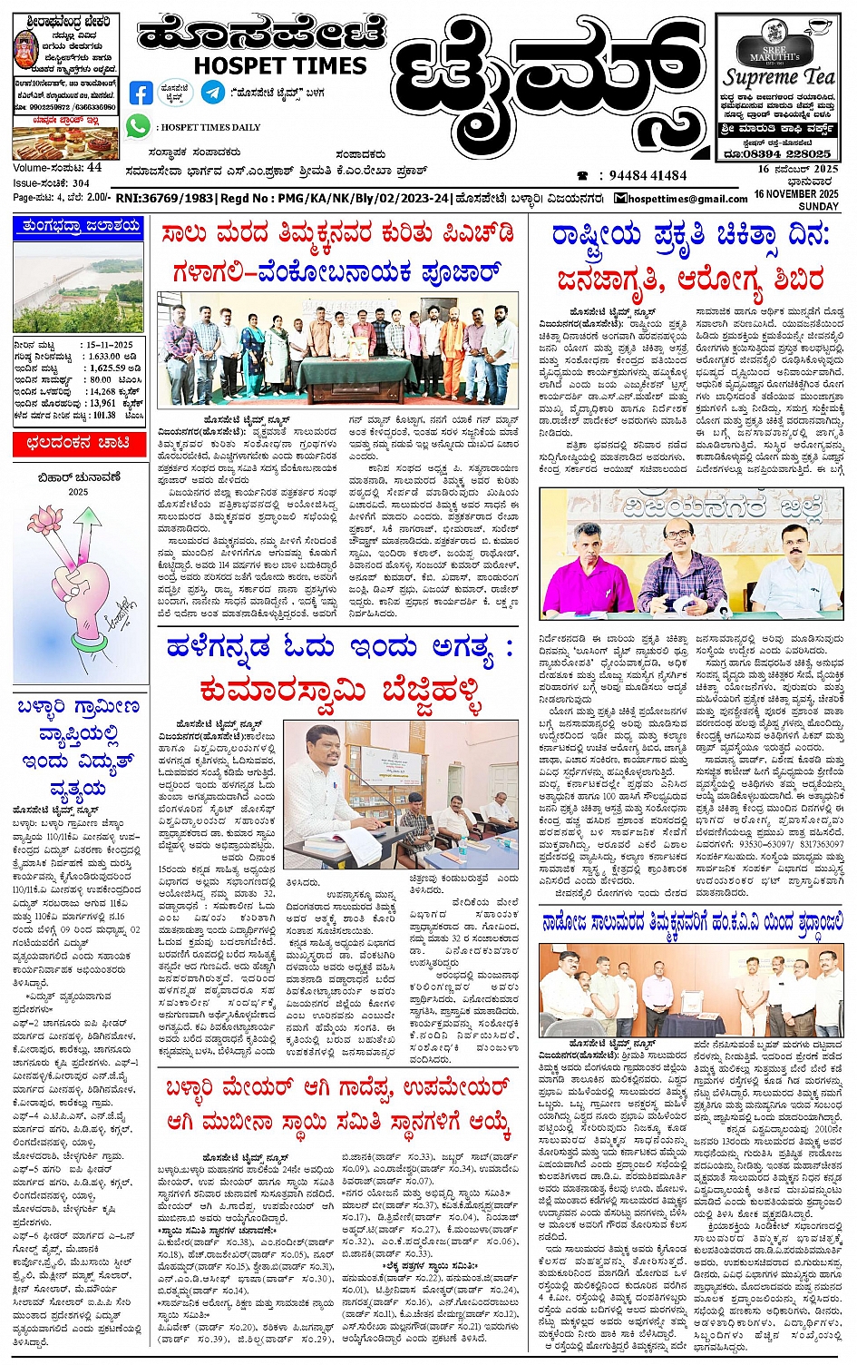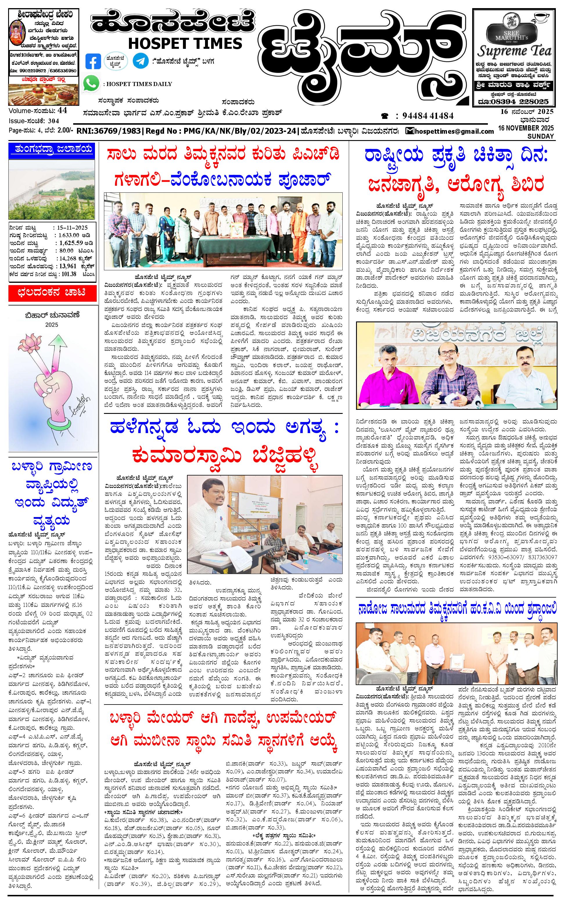 ಮಾಧ್ಯಮ ಅಕಾಡೆಮಿ ಪ್ರಶಸ್ತಿ ಪುರಸ್ಕೃತ 'ಹೊಸಪೇಟೆ ಟೈಮ್ಸ್' November 16, 2025 << First << 1 >> Last >> Page 1Page 2Page 3Page 4 × ಮಾಧ್ಯಮ ಅಕಾಡೆಮಿ ಪ್ರಶಸ್ತಿ ಪುರಸ್ಕೃತ 'ಹೊಸಪೇಟೆ ಟೈಮ್ಸ್' HPT-16112025--4-page-001HPT-16112025--4-page-002HPT-16112025--4-page-003HPT-16112025--4-page-004 << First << 1 >> Last >> HPT-16112025--4-page-001HPT-16112025--4-page-002HPT-16112025--4-page-003HPT-16112025--4-page-004 HPT-16112025--4-page-001