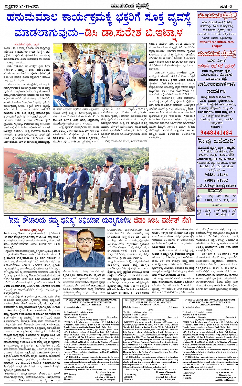 ಮಾಧ್ಯಮ ಅಕಾಡೆಮಿ ಪ್ರಶಸ್ತಿ ಪುರಸ್ಕೃತ 'ಹೊಸಪೇಟೆ ಟೈಮ್ಸ್' Page: 3 November 21, 2025 << First << 3 >> Last >> Page 1Page 2Page 3Page 4 × ಮಾಧ್ಯಮ ಅಕಾಡೆಮಿ ಪ್ರಶಸ್ತಿ ಪುರಸ್ಕೃತ 'ಹೊಸಪೇಟೆ ಟೈಮ್ಸ್' HPT-21112025--4-page-001HPT-21112025--4-page-002HPT-21112025--4-page-003HPT-21112025--4-page-004 << First << 3 >> Last >> HPT-21112025--4-page-001HPT-21112025--4-page-002HPT-21112025--4-page-003HPT-21112025--4-page-004 HPT-21112025--4-page-003