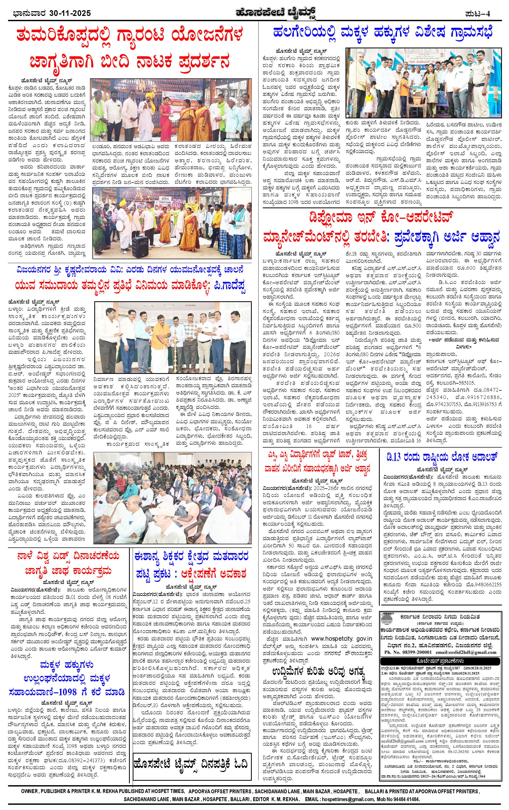 ಮಾಧ್ಯಮ ಅಕಾಡೆಮಿ ಪ್ರಶಸ್ತಿ ಪುರಸ್ಕೃತ 'ಹೊಸಪೇಟೆ ಟೈಮ್ಸ್' Page: 4 November 30, 2025 << First << 4 >> Last >> Page 1Page 2Page 3Page 4 × ಮಾಧ್ಯಮ ಅಕಾಡೆಮಿ ಪ್ರಶಸ್ತಿ ಪುರಸ್ಕೃತ 'ಹೊಸಪೇಟೆ ಟೈಮ್ಸ್' HPT-30112025--4-page-001HPT-30112025--4-page-002HPT-30112025--4-page-003HPT-30112025--4-page-004 << First << 4 >> Last >> HPT-30112025--4-page-001HPT-30112025--4-page-002HPT-30112025--4-page-003HPT-30112025--4-page-004 HPT-30112025--4-page-004