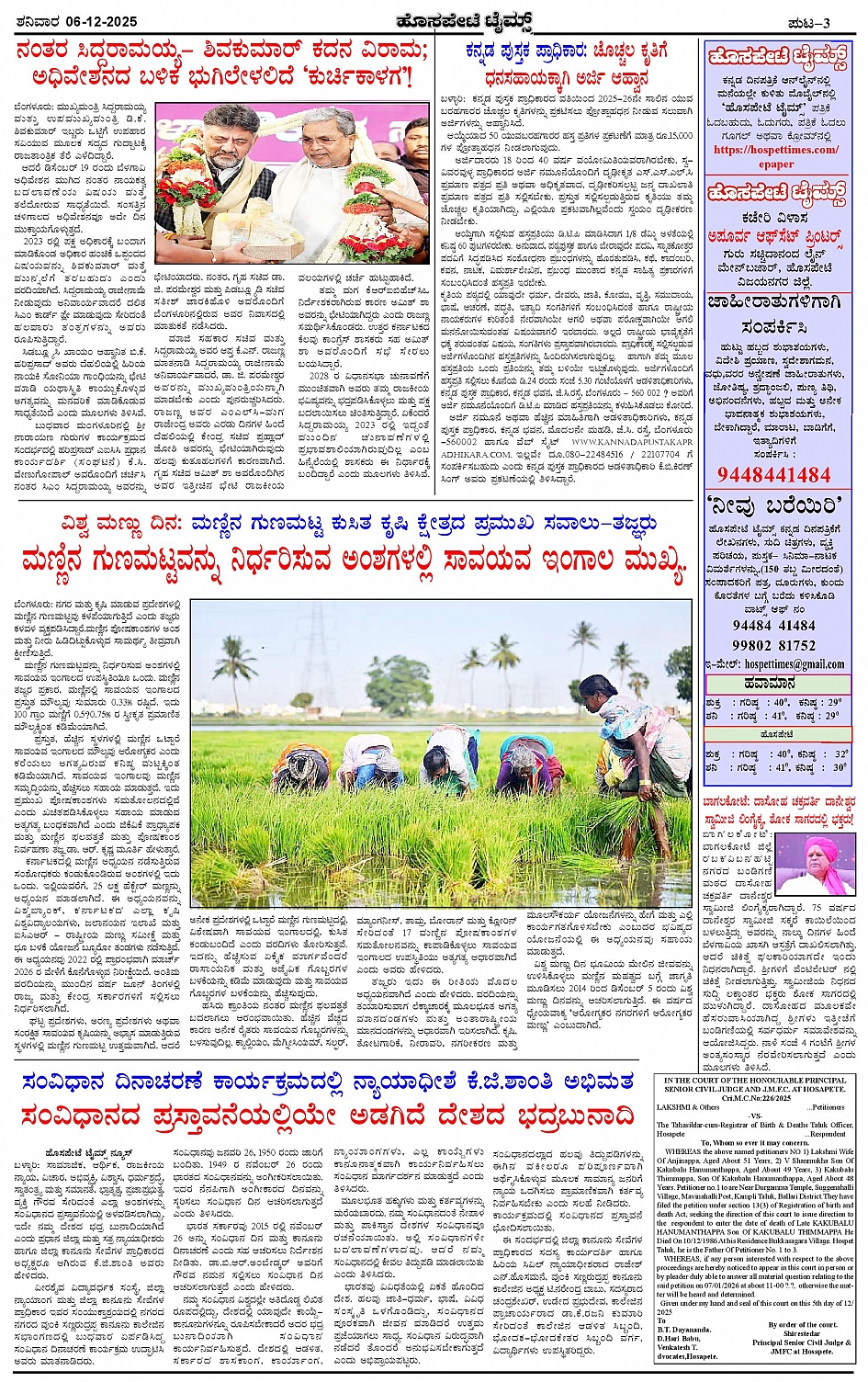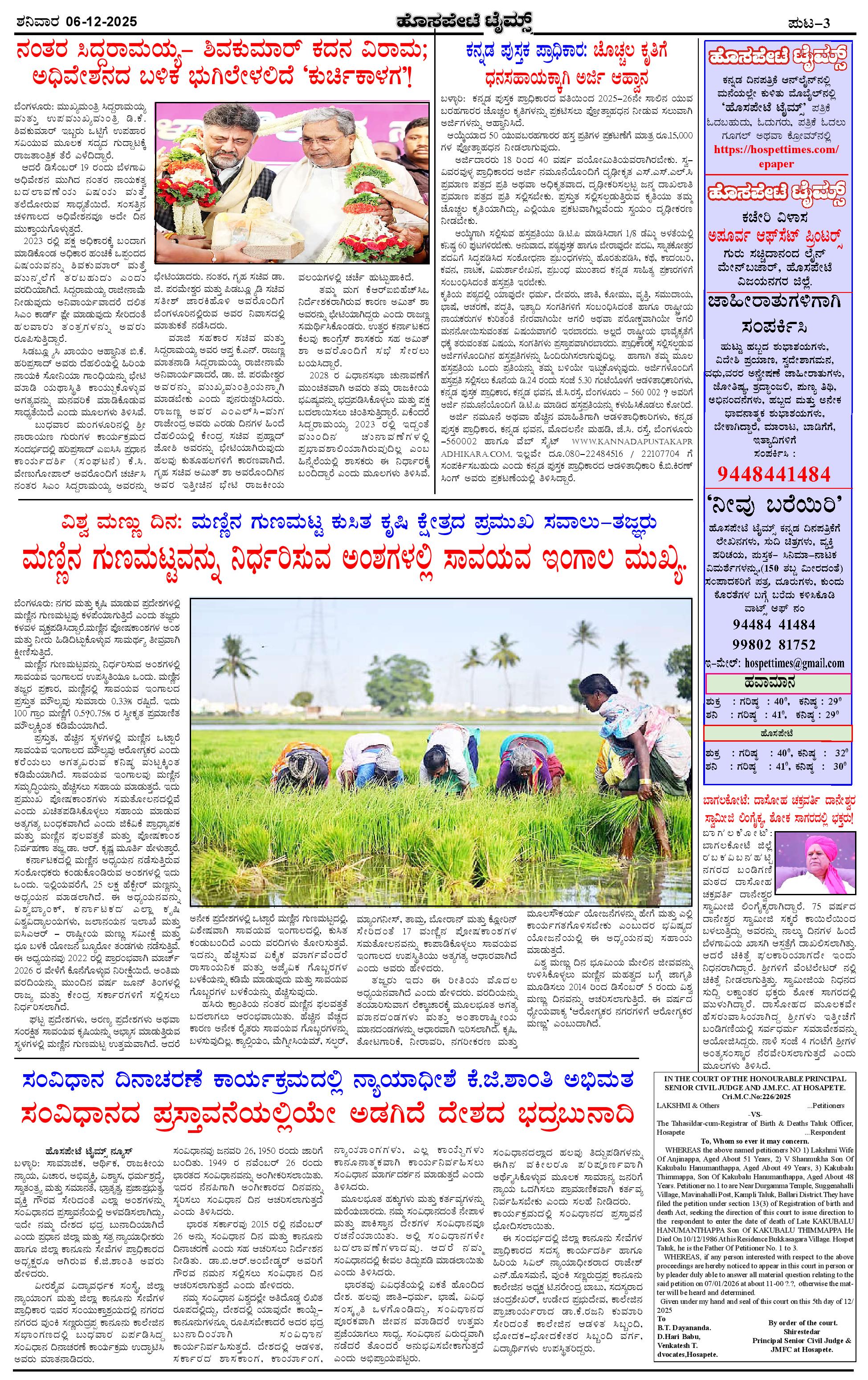 ಮಾಧ್ಯಮ ಅಕಾಡೆಮಿ ಪ್ರಶಸ್ತಿ ಪುರಸ್ಕೃತ 'ಹೊಸಪೇಟೆ ಟೈಮ್ಸ್' Page: 3 December 06, 2025 << First << 3 >> Last >> Page 1Page 2Page 3Page 4 × ಮಾಧ್ಯಮ ಅಕಾಡೆಮಿ ಪ್ರಶಸ್ತಿ ಪುರಸ್ಕೃತ 'ಹೊಸಪೇಟೆ ಟೈಮ್ಸ್' HPT-06122025--4-page-001HPT-06122025--4-page-002HPT-06122025--4-page-003HPT-06122025--4-page-004 << First << 3 >> Last >> HPT-06122025--4-page-001HPT-06122025--4-page-002HPT-06122025--4-page-003HPT-06122025--4-page-004 HPT-06122025--4-page-003