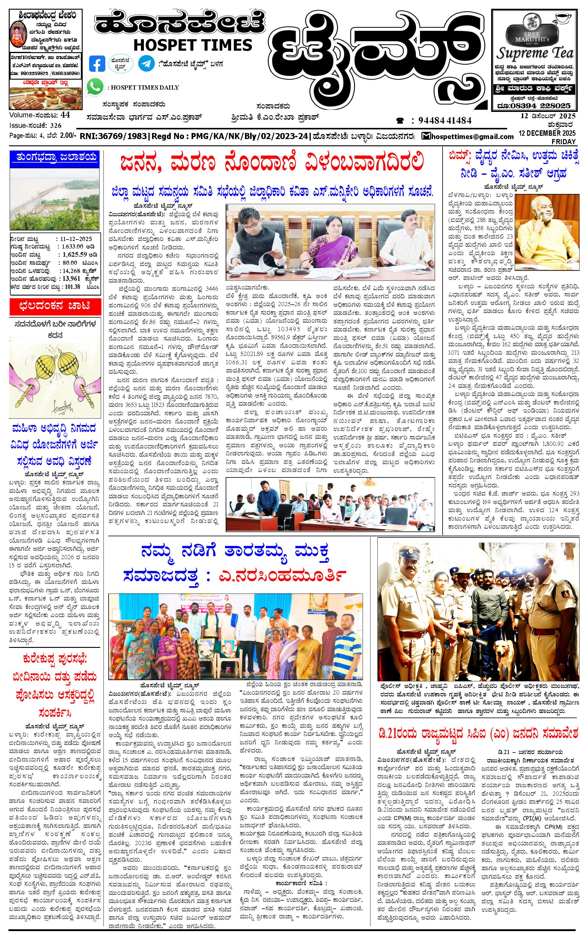ಮಾಧ್ಯಮ ಅಕಾಡೆಮಿ ಪ್ರಶಸ್ತಿ ಪುರಸ್ಕೃತ 'ಹೊಸಪೇಟೆ ಟೈಮ್ಸ್' December 12, 2025 << First << 1 >> Last >> Page 1Page 2Page 3Page 4 × ಮಾಧ್ಯಮ ಅಕಾಡೆಮಿ ಪ್ರಶಸ್ತಿ ಪುರಸ್ಕೃತ 'ಹೊಸಪೇಟೆ ಟೈಮ್ಸ್' HPT-12122025-4-page-001HPT-12122025-4-page-002HPT-12122025-4-page-003HPT-12122025-4-page-004 << First << 1 >> Last >> HPT-12122025-4-page-001HPT-12122025-4-page-002HPT-12122025-4-page-003HPT-12122025-4-page-004 HPT-12122025-4-page-001