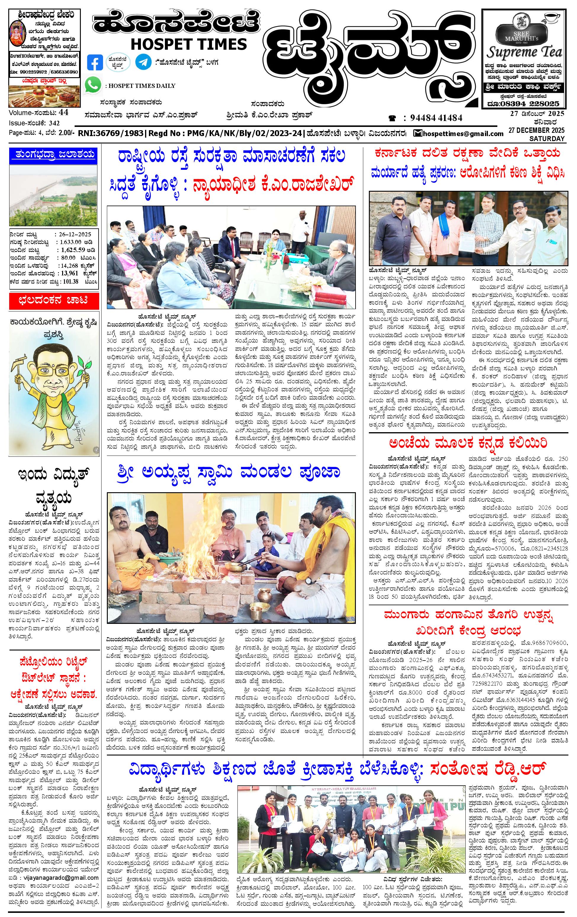 ಮಾಧ್ಯಮ ಅಕಾಡೆಮಿ ಪ್ರಶಸ್ತಿ ಪುರಸ್ಕೃತ 'ಹೊಸಪೇಟೆ ಟೈಮ್ಸ್' December 27, 2025 << First << 1 >> Last >> Page 1Page 2Page 3Page 4 × ಮಾಧ್ಯಮ ಅಕಾಡೆಮಿ ಪ್ರಶಸ್ತಿ ಪುರಸ್ಕೃತ 'ಹೊಸಪೇಟೆ ಟೈಮ್ಸ್' HPT-27122025--4-page-001HPT-27122025--4-page-002HPT-27122025--4-page-003HPT-27122025--4-page-004 << First << 1 >> Last >> HPT-27122025--4-page-001HPT-27122025--4-page-002HPT-27122025--4-page-003HPT-27122025--4-page-004 HPT-27122025--4-page-001