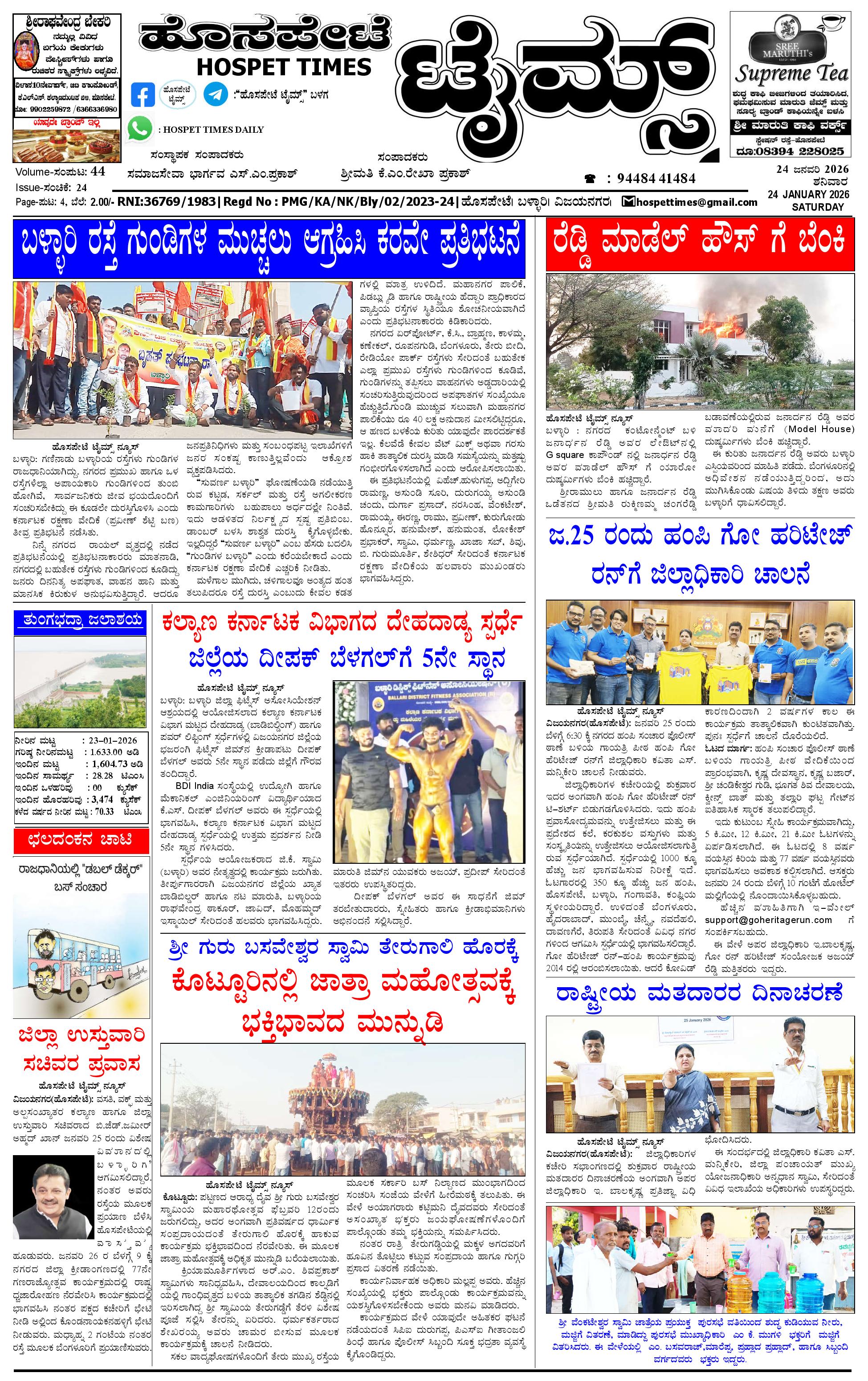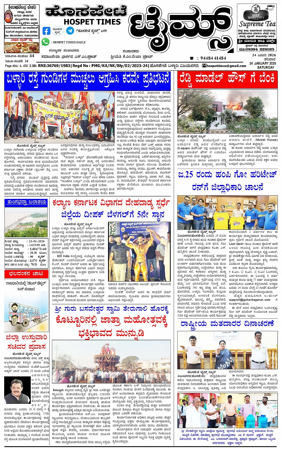 ಮಾಧ್ಯಮ ಅಕಾಡೆಮಿ ಪ್ರಶಸ್ತಿ ಪುರಸ್ಕೃತ 'ಹೊಸಪೇಟೆ ಟೈಮ್ಸ್' January 24, 2026 << First << 1 >> Last >> Page 1Page 2Page 3Page 4 × ಮಾಧ್ಯಮ ಅಕಾಡೆಮಿ ಪ್ರಶಸ್ತಿ ಪುರಸ್ಕೃತ 'ಹೊಸಪೇಟೆ ಟೈಮ್ಸ್' HPT-24012026-4 PAGE-page-001HPT-24012026-4 PAGE-page-002HPT-24012026-4 PAGE-page-003HPT-24012026-4 PAGE-page-004 << First << 1 >> Last >> HPT-24012026-4 PAGE-page-001HPT-24012026-4 PAGE-page-002HPT-24012026-4 PAGE-page-003HPT-24012026-4 PAGE-page-004 HPT-24012026-4 PAGE-page-001