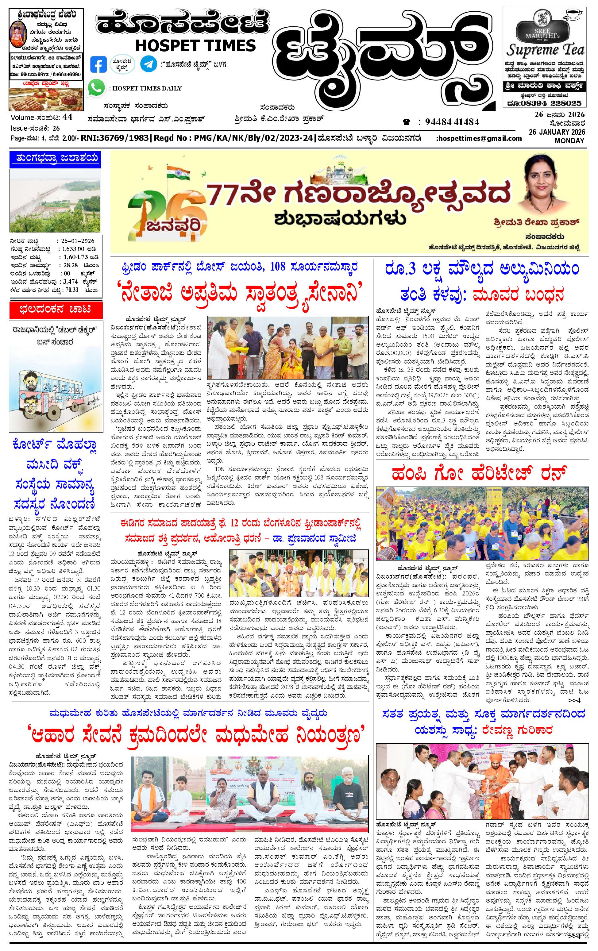 ಮಾಧ್ಯಮ ಅಕಾಡೆಮಿ ಪ್ರಶಸ್ತಿ ಪುರಸ್ಕೃತ 'ಹೊಸಪೇಟೆ ಟೈಮ್ಸ್' January 26, 2026 << First << 1 >> Last >> Page 1Page 2Page 3Page 4 × ಮಾಧ್ಯಮ ಅಕಾಡೆಮಿ ಪ್ರಶಸ್ತಿ ಪುರಸ್ಕೃತ 'ಹೊಸಪೇಟೆ ಟೈಮ್ಸ್' HPT-26012026--4-page-001HPT-26012026--4-page-002HPT-26012026--4-page-003HPT-26012026--4-page-004 << First << 1 >> Last >> HPT-26012026--4-page-001HPT-26012026--4-page-002HPT-26012026--4-page-003HPT-26012026--4-page-004 HPT-26012026--4-page-001