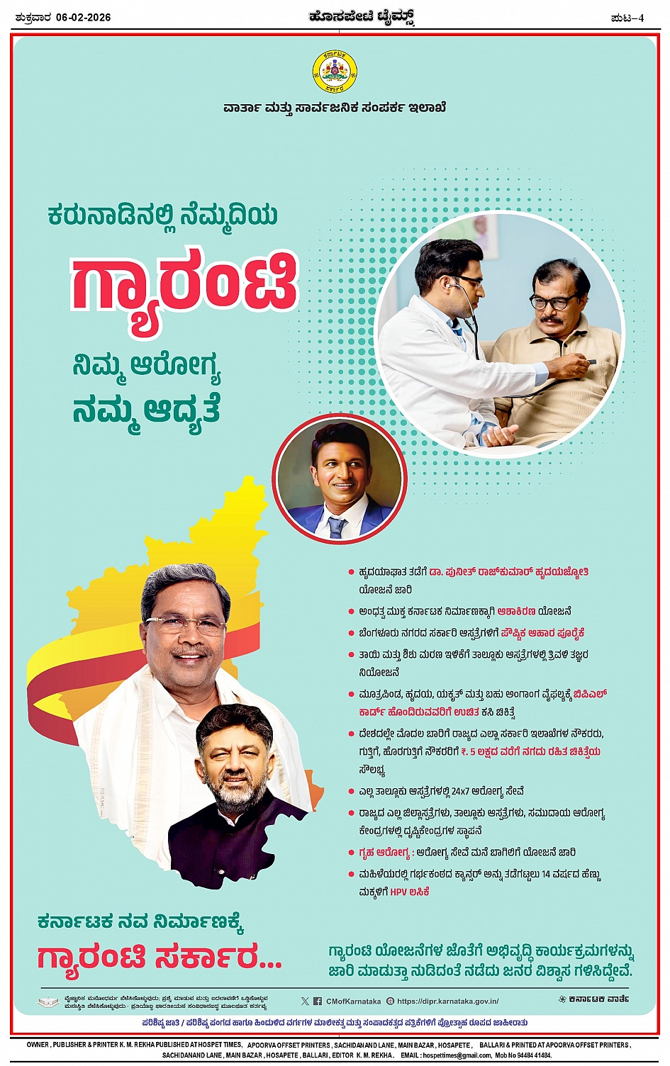 ಮಾಧ್ಯಮ ಅಕಾಡೆಮಿ ಪ್ರಶಸ್ತಿ ಪುರಸ್ಕೃತ 'ಹೊಸಪೇಟೆ ಟೈಮ್ಸ್' Page: 4 February 06, 2026 << First << 4 >> Last >> Page 1Page 2Page 3Page 4 × ಮಾಧ್ಯಮ ಅಕಾಡೆಮಿ ಪ್ರಶಸ್ತಿ ಪುರಸ್ಕೃತ 'ಹೊಸಪೇಟೆ ಟೈಮ್ಸ್' HPT-06022026--4-page-001HPT-06022026--4-page-002HPT-06022026--4-page-003HPT-06022026--4-page-004 << First << 4 >> Last >> HPT-06022026--4-page-001HPT-06022026--4-page-002HPT-06022026--4-page-003HPT-06022026--4-page-004 HPT-06022026--4-page-004