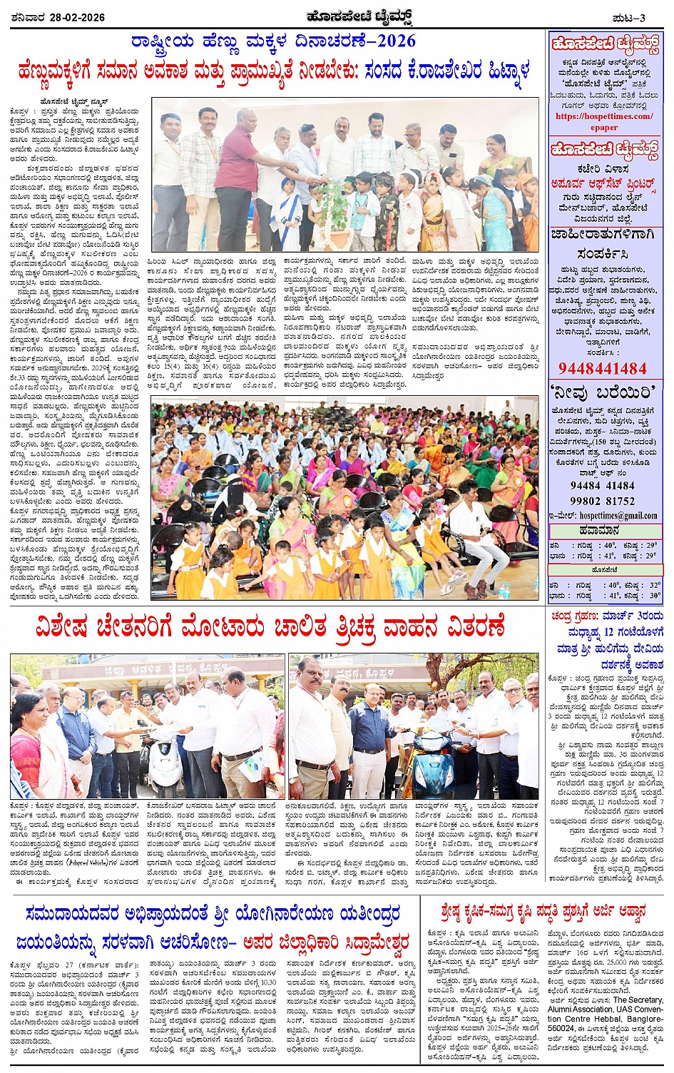 ಮಾಧ್ಯಮ ಅಕಾಡೆಮಿ ಪ್ರಶಸ್ತಿ ಪುರಸ್ಕೃತ 'ಹೊಸಪೇಟೆ ಟೈಮ್ಸ್' Page: 3 February 28, 2026 << First << 3 >> Last >> Page 1Page 2Page 3Page 4 × ಮಾಧ್ಯಮ ಅಕಾಡೆಮಿ ಪ್ರಶಸ್ತಿ ಪುರಸ್ಕೃತ 'ಹೊಸಪೇಟೆ ಟೈಮ್ಸ್' HPT-28022026--4-page-001HPT-28022026--4-page-002HPT-28022026--4-page-003HPT-28022026--4-page-004 << First << 3 >> Last >> HPT-28022026--4-page-001HPT-28022026--4-page-002HPT-28022026--4-page-003HPT-28022026--4-page-004 HPT-28022026--4-page-003