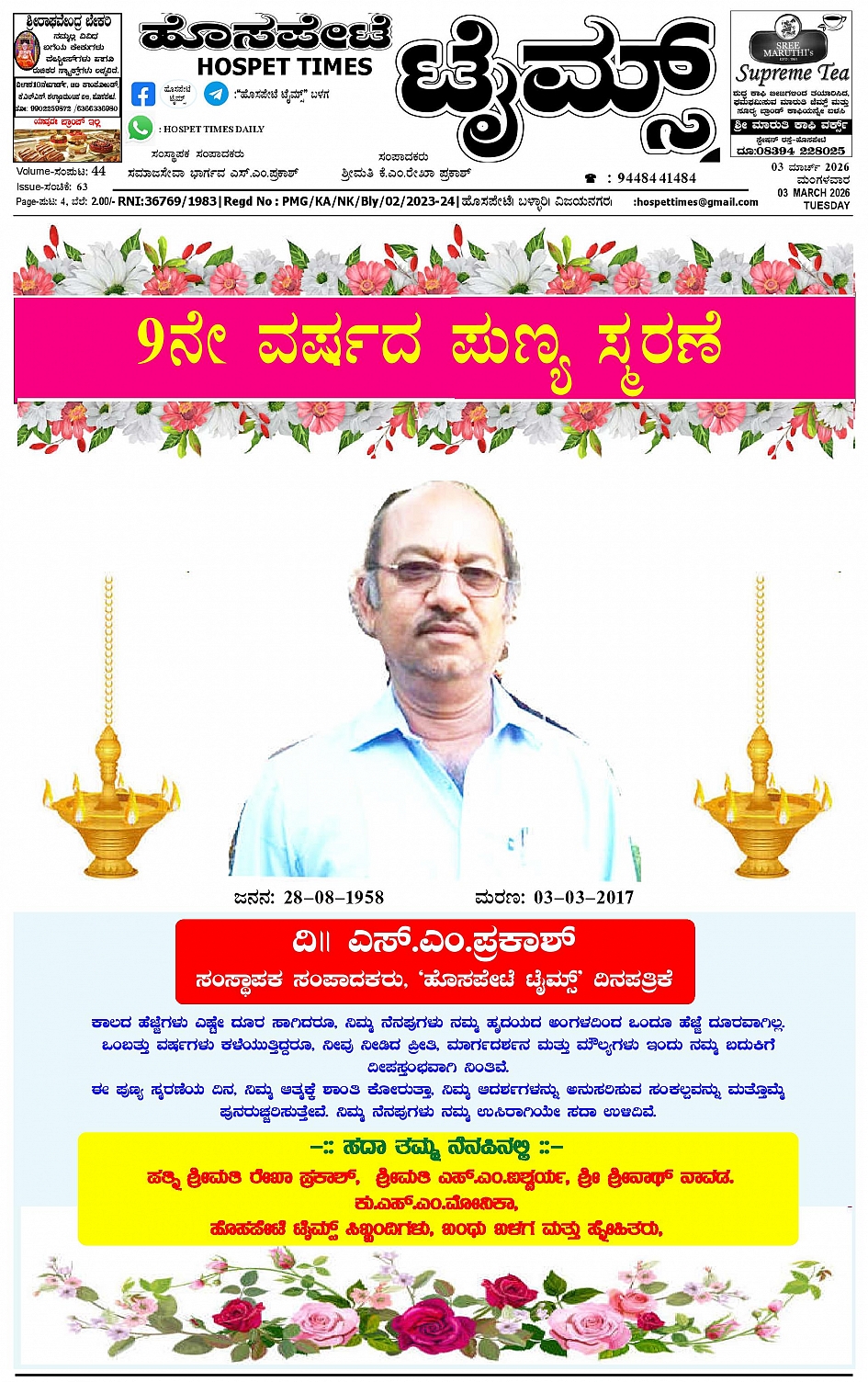 ಮಾಧ್ಯಮ ಅಕಾಡೆಮಿ ಪ್ರಶಸ್ತಿ ಪುರಸ್ಕೃತ 'ಹೊಸಪೇಟೆ ಟೈಮ್ಸ್' March 03, 2026 << First << 1 >> Last >> Page 1Page 2Page 3Page 4 × ಮಾಧ್ಯಮ ಅಕಾಡೆಮಿ ಪ್ರಶಸ್ತಿ ಪುರಸ್ಕೃತ 'ಹೊಸಪೇಟೆ ಟೈಮ್ಸ್' HPT-03032026-4-page-001HPT-03032026-4-page-002HPT-03032026-4-page-003HPT-03032026-4-page-004 << First << 1 >> Last >> HPT-03032026-4-page-001HPT-03032026-4-page-002HPT-03032026-4-page-003HPT-03032026-4-page-004 HPT-03032026-4-page-001