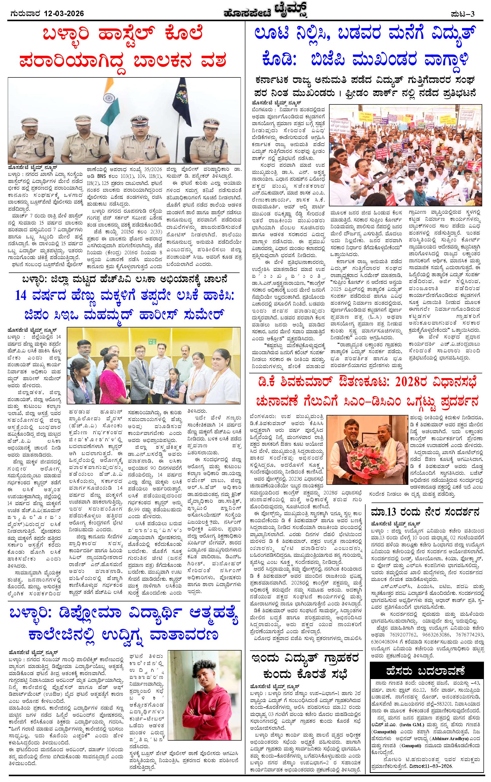 ಮಾಧ್ಯಮ ಅಕಾಡೆಮಿ ಪ್ರಶಸ್ತಿ ಪುರಸ್ಕೃತ 'ಹೊಸಪೇಟೆ ಟೈಮ್ಸ್' Page: 3 March 12, 2026 ಸ್ಥಳೀಯ ಸುದ್ದಿಗಳ ನೈಜ ಪ್ರತಿಬಿಂಬ << First << 3 >> Last >> Page 1Page 2Page 3Page 4 × ಮಾಧ್ಯಮ ಅಕಾಡೆಮಿ ಪ್ರಶಸ್ತಿ ಪುರಸ್ಕೃತ 'ಹೊಸಪೇಟೆ ಟೈಮ್ಸ್' HPT-12032026.1-page-001HPT-12032026.1-page-002HPT-12032026.1-page-003HPT-12032026.1-page-004 << First << 3 >> Last >> HPT-12032026.1-page-001HPT-12032026.1-page-002HPT-12032026.1-page-003HPT-12032026.1-page-004 HPT-12032026.1-page-003