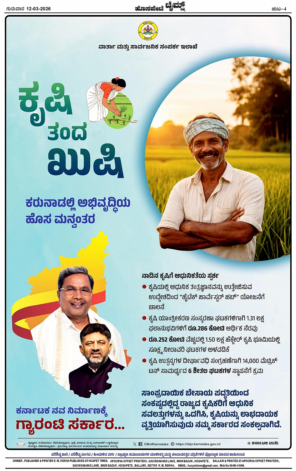 ಮಾಧ್ಯಮ ಅಕಾಡೆಮಿ ಪ್ರಶಸ್ತಿ ಪುರಸ್ಕೃತ 'ಹೊಸಪೇಟೆ ಟೈಮ್ಸ್' Page: 4 March 12, 2026 ಸ್ಥಳೀಯ ಸುದ್ದಿಗಳ ನೈಜ ಪ್ರತಿಬಿಂಬ << First << 4 >> Last >> Page 1Page 2Page 3Page 4 × ಮಾಧ್ಯಮ ಅಕಾಡೆಮಿ ಪ್ರಶಸ್ತಿ ಪುರಸ್ಕೃತ 'ಹೊಸಪೇಟೆ ಟೈಮ್ಸ್' HPT-12032026.1-page-001HPT-12032026.1-page-002HPT-12032026.1-page-003HPT-12032026.1-page-004 << First << 4 >> Last >> HPT-12032026.1-page-001HPT-12032026.1-page-002HPT-12032026.1-page-003HPT-12032026.1-page-004 HPT-12032026.1-page-004