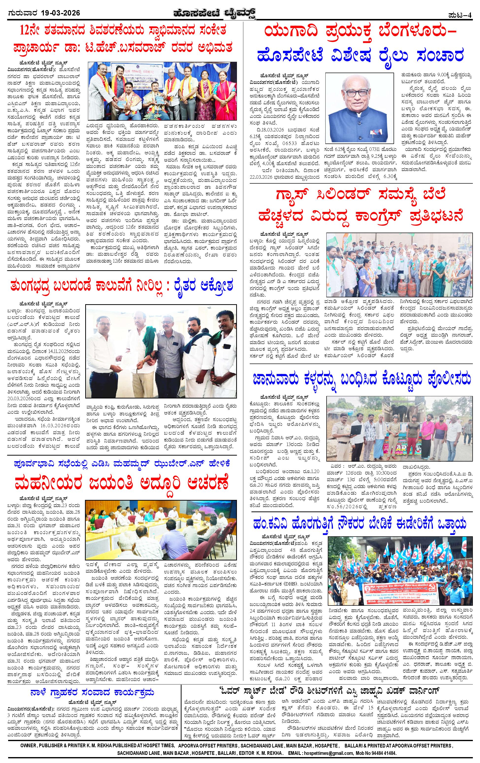 ಮಾಧ್ಯಮ ಅಕಾಡೆಮಿ ಪ್ರಶಸ್ತಿ ಪುರಸ್ಕೃತ 'ಹೊಸಪೇಟೆ ಟೈಮ್ಸ್' Page: 4 March 19, 2026 << First << 4 >> Last >> Page 1Page 2Page 3Page 4 × ಮಾಧ್ಯಮ ಅಕಾಡೆಮಿ ಪ್ರಶಸ್ತಿ ಪುರಸ್ಕೃತ 'ಹೊಸಪೇಟೆ ಟೈಮ್ಸ್' HPT-19032026--4-page-001HPT-19032026--4-page-002HPT-19032026--4-page-003HPT-19032026--4-page-004 << First << 4 >> Last >> HPT-19032026--4-page-001HPT-19032026--4-page-002HPT-19032026--4-page-003HPT-19032026--4-page-004 HPT-19032026--4-page-004