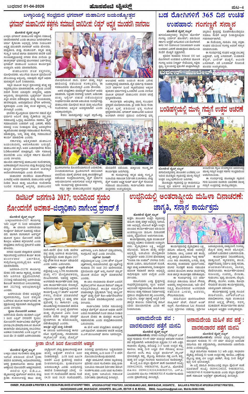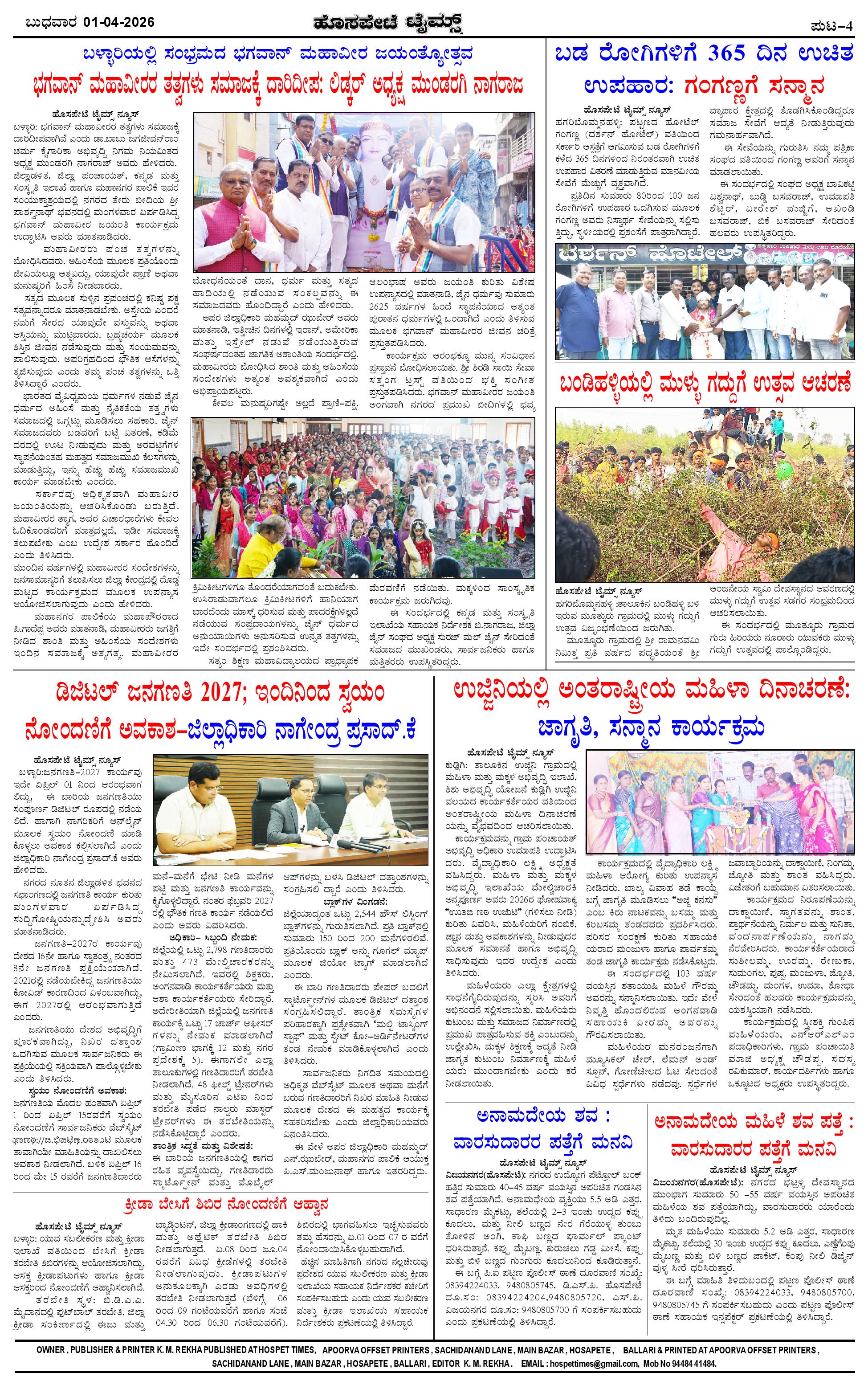 ಮಾಧ್ಯಮ ಅಕಾಡೆಮಿ ಪ್ರಶಸ್ತಿ ಪುರಸ್ಕೃತ 'ಹೊಸಪೇಟೆ ಟೈಮ್ಸ್' Page: 4 April 01, 2026 << First << 4 >> Last >> Page 1Page 2Page 3Page 4 × ಮಾಧ್ಯಮ ಅಕಾಡೆಮಿ ಪ್ರಶಸ್ತಿ ಪುರಸ್ಕೃತ 'ಹೊಸಪೇಟೆ ಟೈಮ್ಸ್' HPT-01042026--4-page-001HPT-01042026--4-page-002HPT-01042026--4-page-003HPT-01042026--4-page-004 << First << 4 >> Last >> HPT-01042026--4-page-001HPT-01042026--4-page-002HPT-01042026--4-page-003HPT-01042026--4-page-004 HPT-01042026--4-page-004