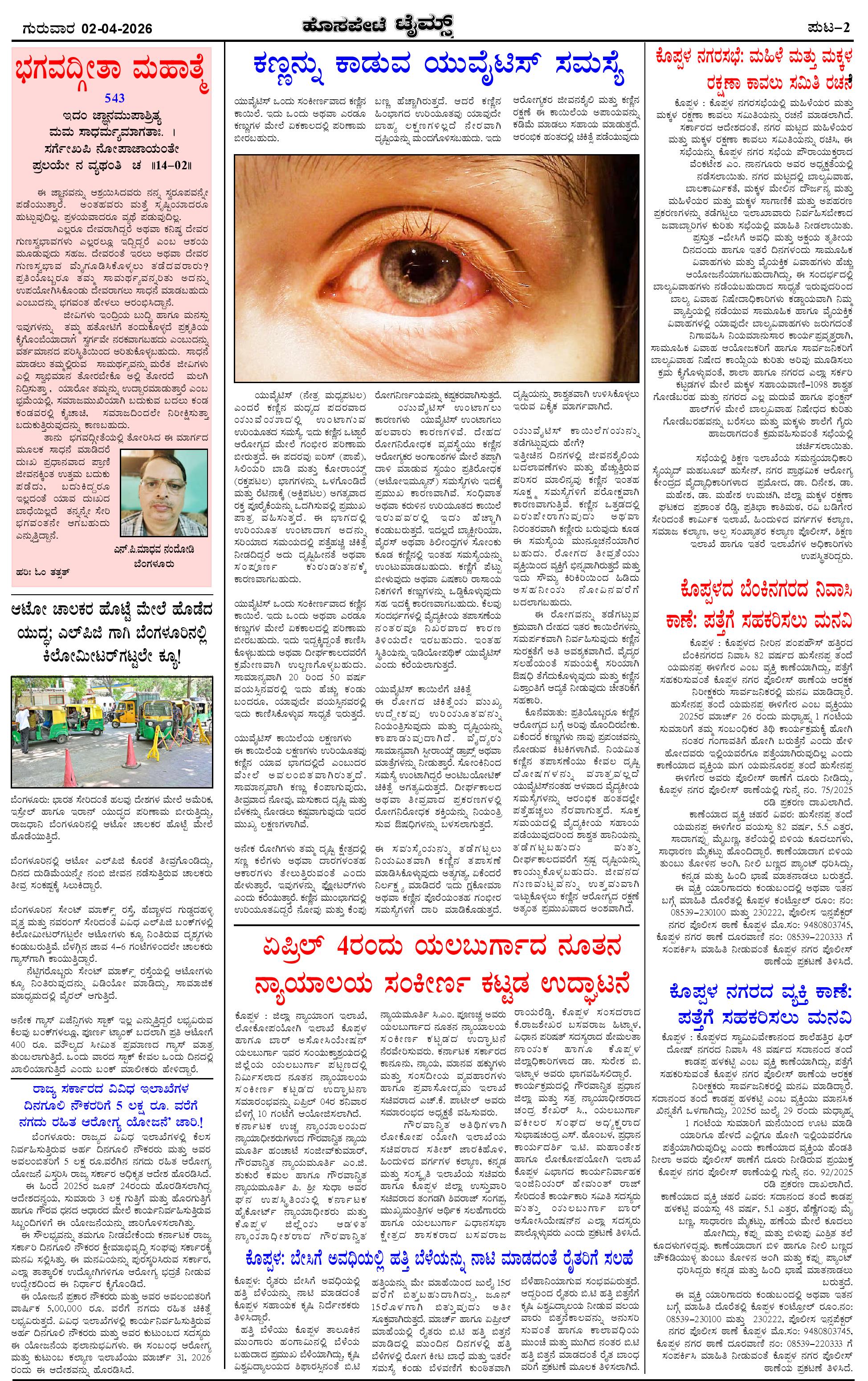 ಮಾಧ್ಯಮ ಅಕಾಡೆಮಿ ಪ್ರಶಸ್ತಿ ಪುರಸ್ಕೃತ 'ಹೊಸಪೇಟೆ ಟೈಮ್ಸ್' Page: 2 April 02, 2026 << First << 2 >> Last >> Page 1Page 2Page 3Page 4 × ಮಾಧ್ಯಮ ಅಕಾಡೆಮಿ ಪ್ರಶಸ್ತಿ ಪುರಸ್ಕೃತ 'ಹೊಸಪೇಟೆ ಟೈಮ್ಸ್' HPT-02042026--4-page-001HPT-02042026--4-page-002HPT-02042026--4-page-003HPT-02042026--4-page-004 << First << 2 >> Last >> HPT-02042026--4-page-001HPT-02042026--4-page-002HPT-02042026--4-page-003HPT-02042026--4-page-004 HPT-02042026--4-page-002
