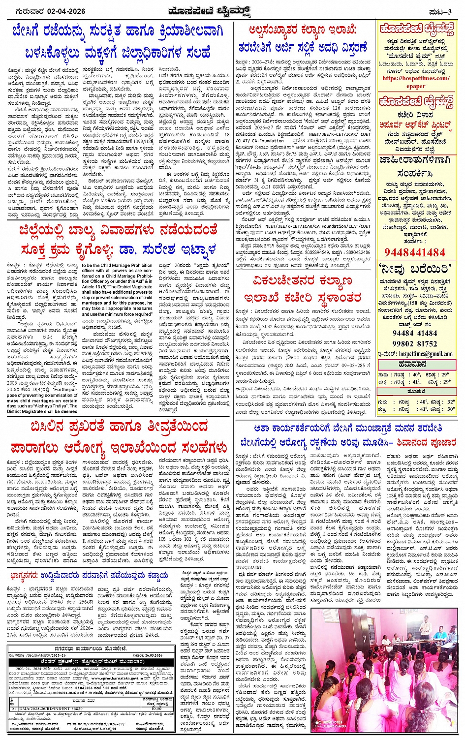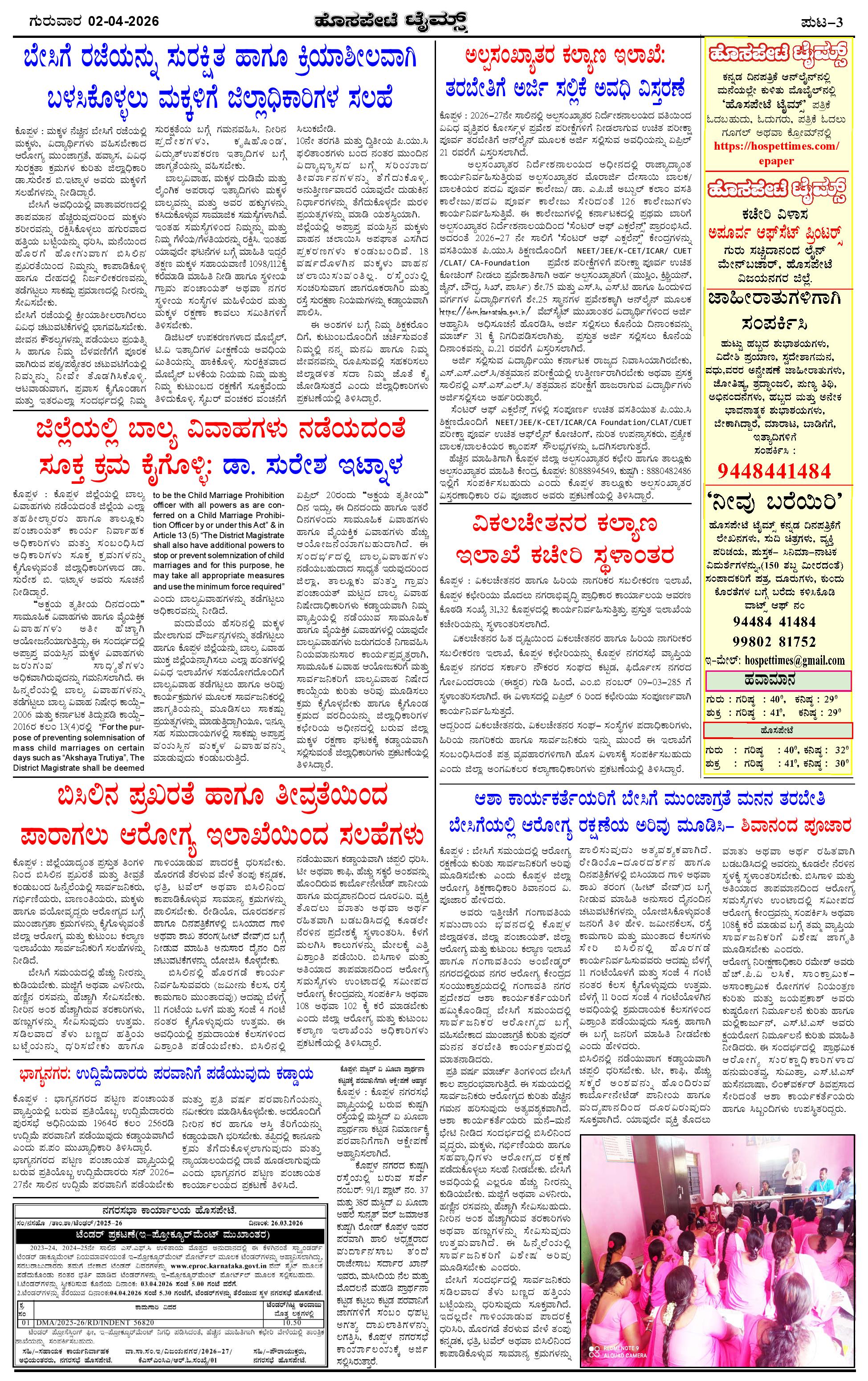 ಮಾಧ್ಯಮ ಅಕಾಡೆಮಿ ಪ್ರಶಸ್ತಿ ಪುರಸ್ಕೃತ 'ಹೊಸಪೇಟೆ ಟೈಮ್ಸ್' Page: 3 April 02, 2026 << First << 3 >> Last >> Page 1Page 2Page 3Page 4 × ಮಾಧ್ಯಮ ಅಕಾಡೆಮಿ ಪ್ರಶಸ್ತಿ ಪುರಸ್ಕೃತ 'ಹೊಸಪೇಟೆ ಟೈಮ್ಸ್' HPT-02042026--4-page-001HPT-02042026--4-page-002HPT-02042026--4-page-003HPT-02042026--4-page-004 << First << 3 >> Last >> HPT-02042026--4-page-001HPT-02042026--4-page-002HPT-02042026--4-page-003HPT-02042026--4-page-004 HPT-02042026--4-page-003