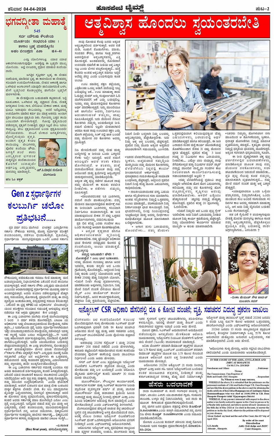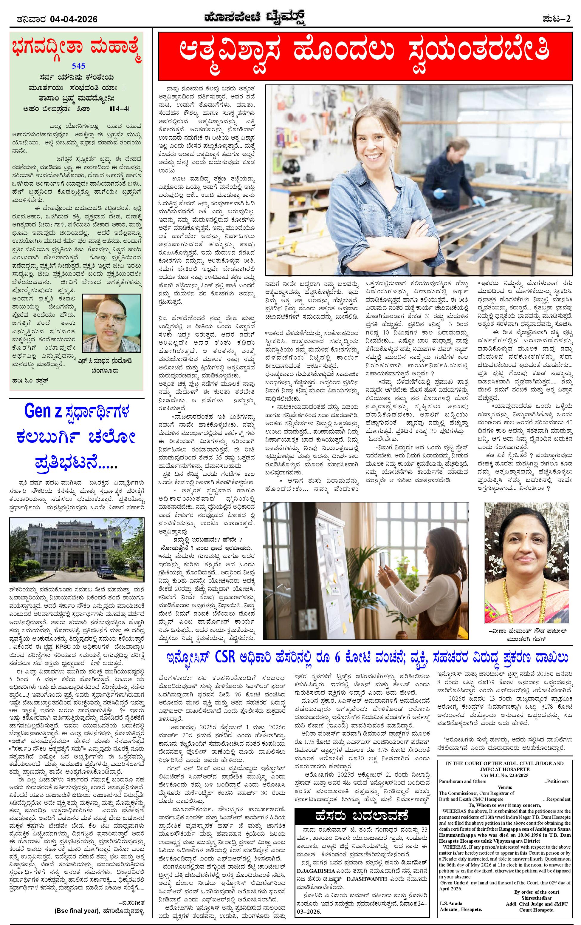 ಮಾಧ್ಯಮ ಅಕಾಡೆಮಿ ಪ್ರಶಸ್ತಿ ಪುರಸ್ಕೃತ 'ಹೊಸಪೇಟೆ ಟೈಮ್ಸ್' Page: 2 April 04, 2026 << First << 2 >> Last >> Page 1Page 2Page 3Page 4 × ಮಾಧ್ಯಮ ಅಕಾಡೆಮಿ ಪ್ರಶಸ್ತಿ ಪುರಸ್ಕೃತ 'ಹೊಸಪೇಟೆ ಟೈಮ್ಸ್' HPT-04042026-4-page-001HPT-04042026-4-page-002HPT-04042026-4-page-003HPT-04042026-4-page-004 << First << 2 >> Last >> HPT-04042026-4-page-001HPT-04042026-4-page-002HPT-04042026-4-page-003HPT-04042026-4-page-004 HPT-04042026-4-page-002