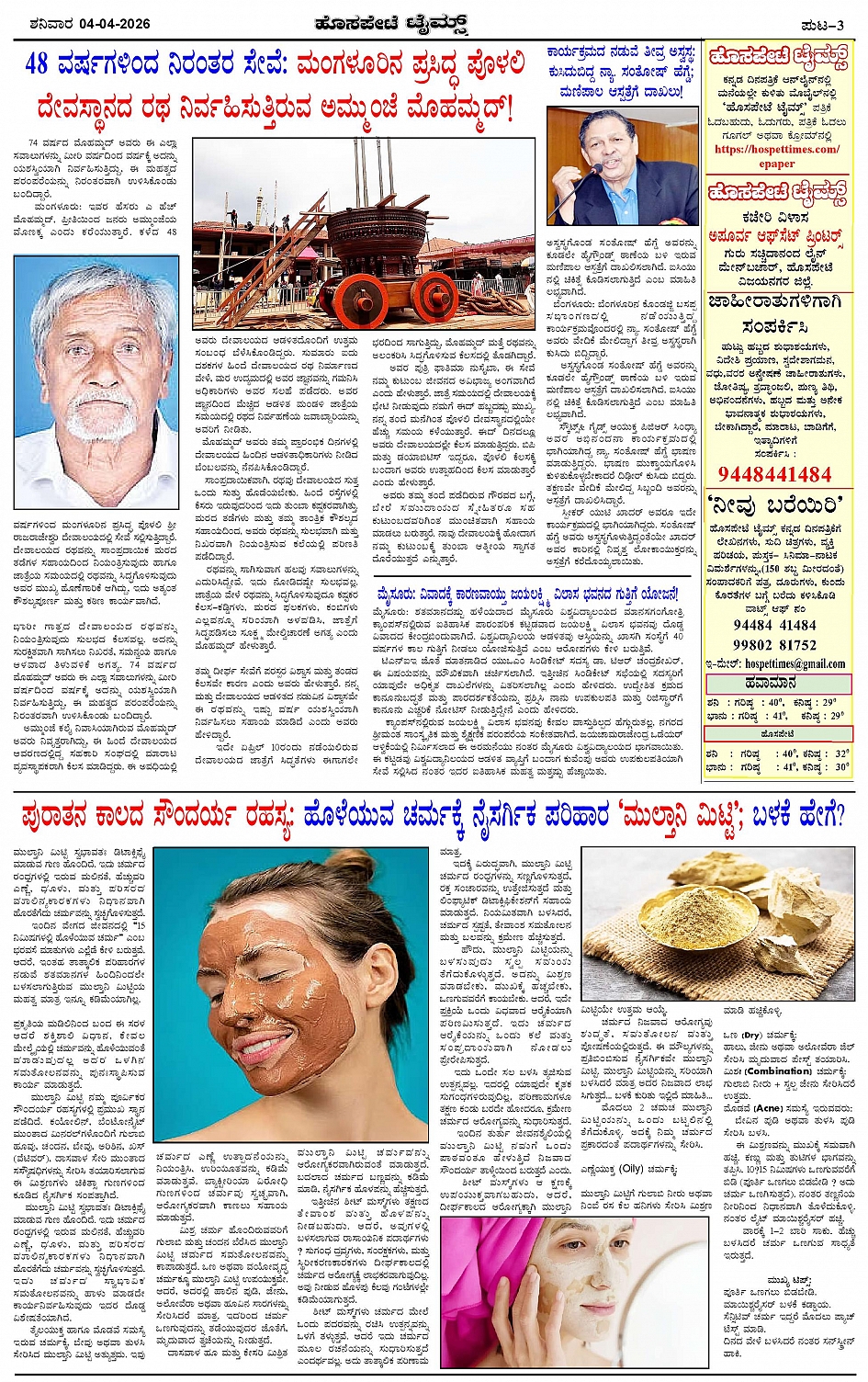 ಮಾಧ್ಯಮ ಅಕಾಡೆಮಿ ಪ್ರಶಸ್ತಿ ಪುರಸ್ಕೃತ 'ಹೊಸಪೇಟೆ ಟೈಮ್ಸ್' Page: 3 April 04, 2026 << First << 3 >> Last >> Page 1Page 2Page 3Page 4 × ಮಾಧ್ಯಮ ಅಕಾಡೆಮಿ ಪ್ರಶಸ್ತಿ ಪುರಸ್ಕೃತ 'ಹೊಸಪೇಟೆ ಟೈಮ್ಸ್' HPT-04042026-4-page-001HPT-04042026-4-page-002HPT-04042026-4-page-003HPT-04042026-4-page-004 << First << 3 >> Last >> HPT-04042026-4-page-001HPT-04042026-4-page-002HPT-04042026-4-page-003HPT-04042026-4-page-004 HPT-04042026-4-page-003