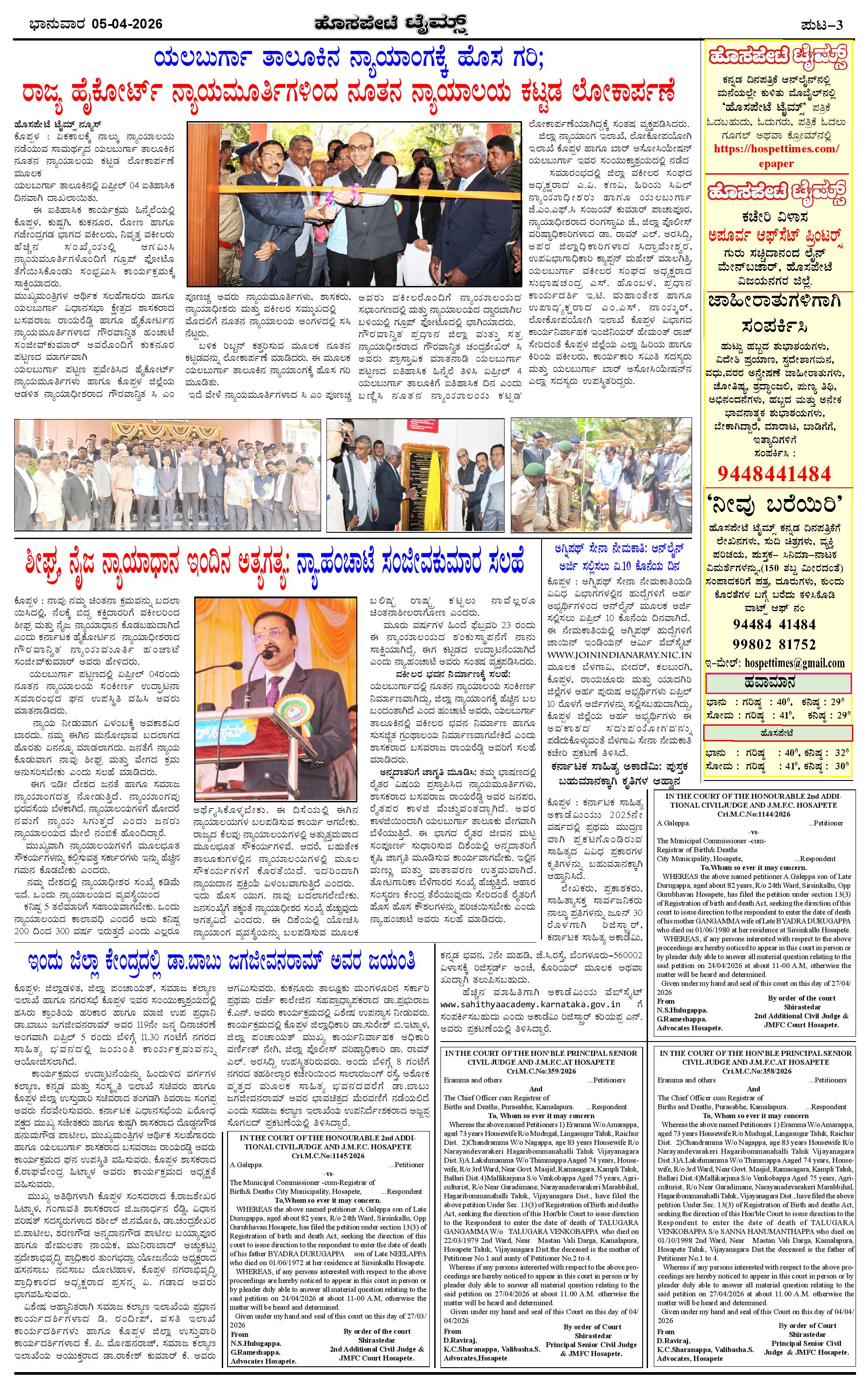 ಮಾಧ್ಯಮ ಅಕಾಡೆಮಿ ಪ್ರಶಸ್ತಿ ಪುರಸ್ಕೃತ 'ಹೊಸಪೇಟೆ ಟೈಮ್ಸ್' Page: 3 April 05, 2026 << First << 3 >> Last >> Page 1Page 2Page 3Page 4 × ಮಾಧ್ಯಮ ಅಕಾಡೆಮಿ ಪ್ರಶಸ್ತಿ ಪುರಸ್ಕೃತ 'ಹೊಸಪೇಟೆ ಟೈಮ್ಸ್' HPT-05042026--4-page-001HPT-05042026--4-page-002HPT-05042026--4-page-003HPT-05042026--4-page-004 << First << 3 >> Last >> HPT-05042026--4-page-001HPT-05042026--4-page-002HPT-05042026--4-page-003HPT-05042026--4-page-004 HPT-05042026--4-page-003