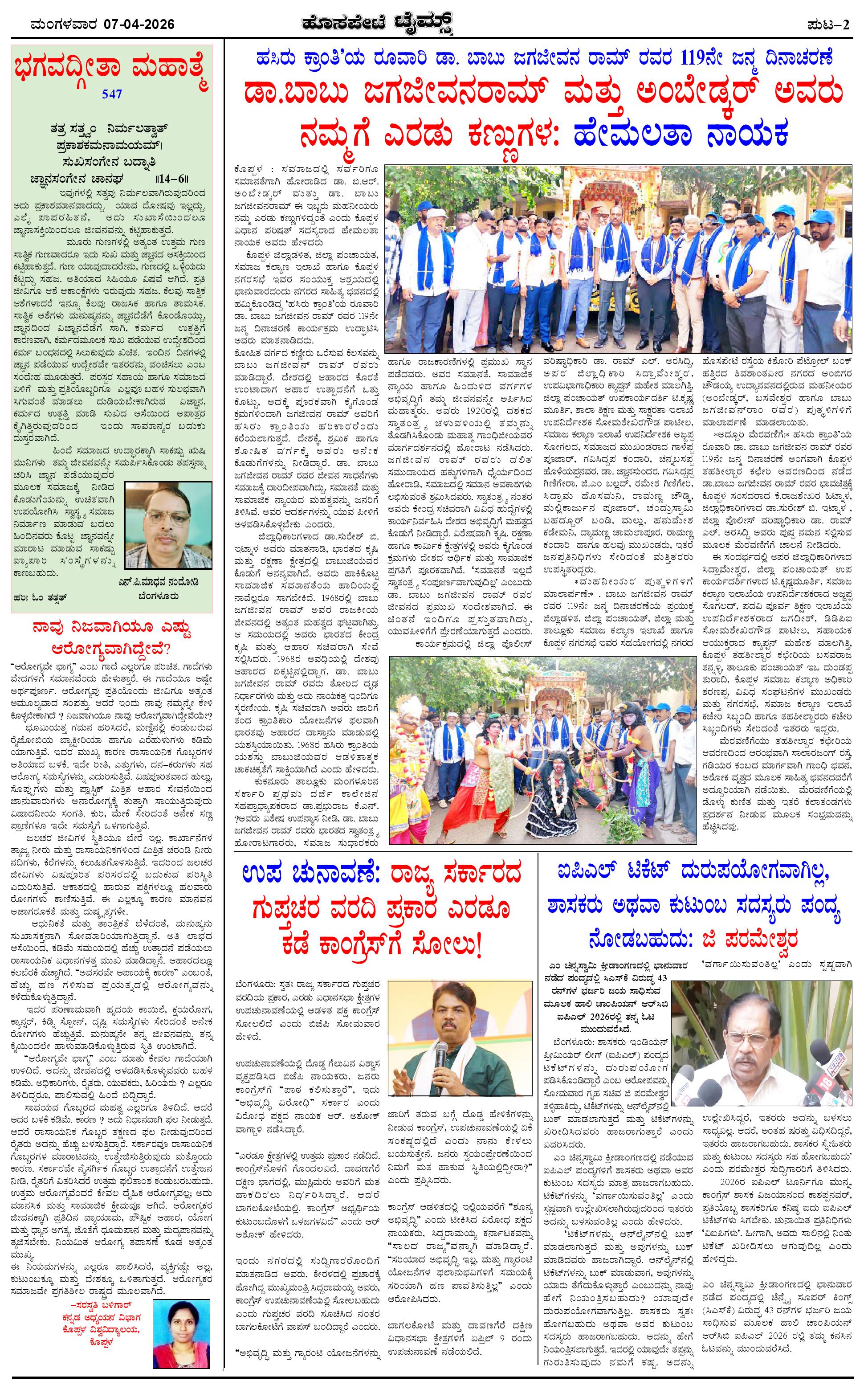 ಮಾಧ್ಯಮ ಅಕಾಡೆಮಿ ಪ್ರಶಸ್ತಿ ಪುರಸ್ಕೃತ 'ಹೊಸಪೇಟೆ ಟೈಮ್ಸ್' Page: 2 April 07, 2026 << First << 2 >> Last >> Page 1Page 2Page 3Page 4 × ಮಾಧ್ಯಮ ಅಕಾಡೆಮಿ ಪ್ರಶಸ್ತಿ ಪುರಸ್ಕೃತ 'ಹೊಸಪೇಟೆ ಟೈಮ್ಸ್' HPT-07042026-4-page-001HPT-07042026-4-page-002HPT-07042026-4-page-003HPT-07042026-4-page-004 << First << 2 >> Last >> HPT-07042026-4-page-001HPT-07042026-4-page-002HPT-07042026-4-page-003HPT-07042026-4-page-004 HPT-07042026-4-page-002