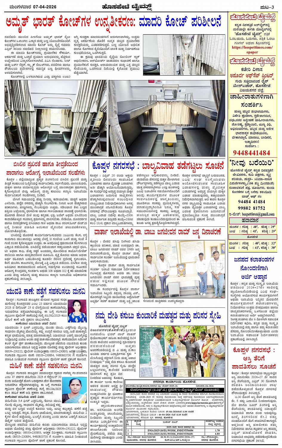 ಮಾಧ್ಯಮ ಅಕಾಡೆಮಿ ಪ್ರಶಸ್ತಿ ಪುರಸ್ಕೃತ 'ಹೊಸಪೇಟೆ ಟೈಮ್ಸ್' Page: 3 April 07, 2026 << First << 3 >> Last >> Page 1Page 2Page 3Page 4 × ಮಾಧ್ಯಮ ಅಕಾಡೆಮಿ ಪ್ರಶಸ್ತಿ ಪುರಸ್ಕೃತ 'ಹೊಸಪೇಟೆ ಟೈಮ್ಸ್' HPT-07042026-4-page-001HPT-07042026-4-page-002HPT-07042026-4-page-003HPT-07042026-4-page-004 << First << 3 >> Last >> HPT-07042026-4-page-001HPT-07042026-4-page-002HPT-07042026-4-page-003HPT-07042026-4-page-004 HPT-07042026-4-page-003