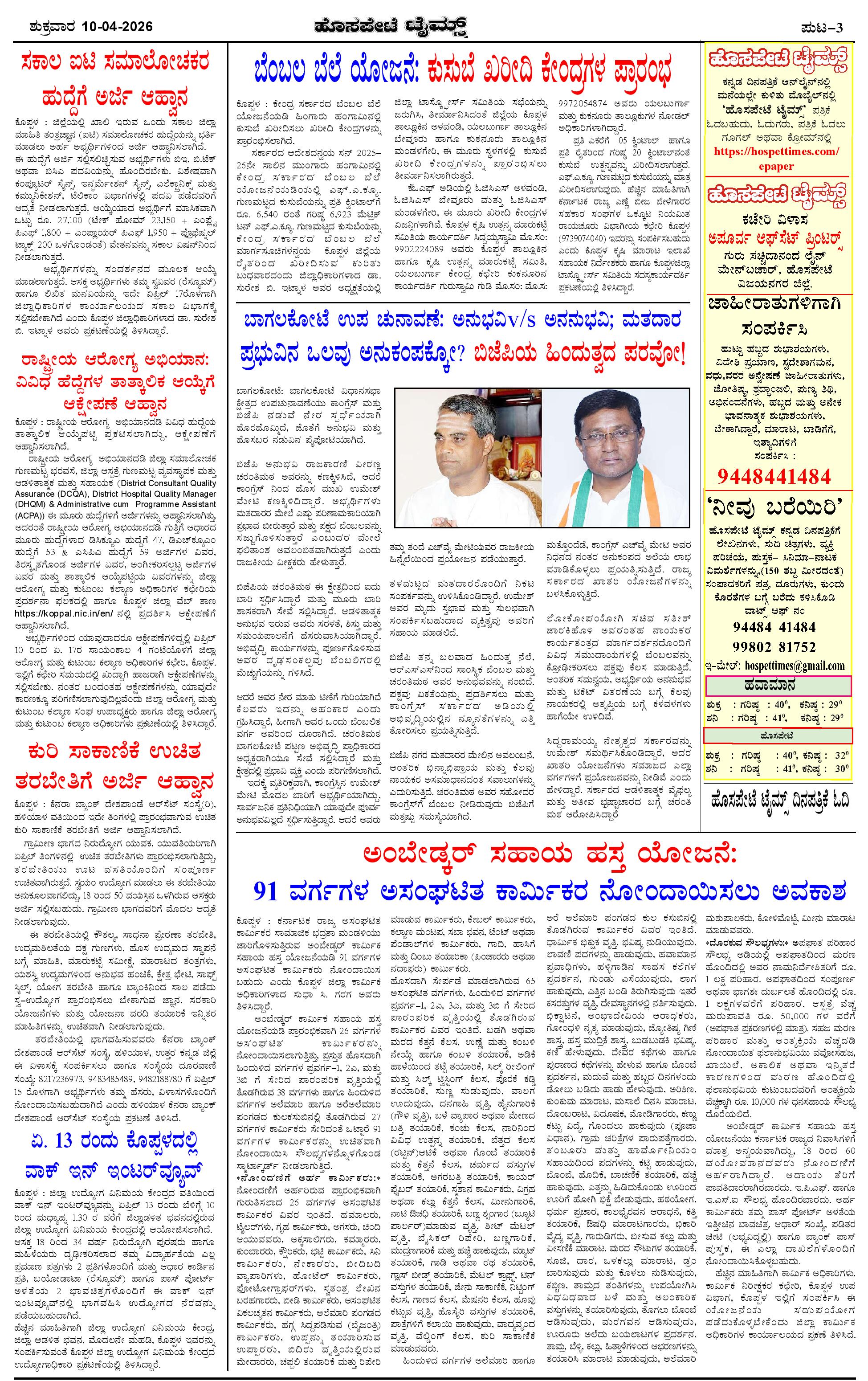 ಮಾಧ್ಯಮ ಅಕಾಡೆಮಿ ಪ್ರಶಸ್ತಿ ಪುರಸ್ಕೃತ 'ಹೊಸಪೇಟೆ ಟೈಮ್ಸ್' Page: 3 April 10, 2026 << First << 3 >> Last >> Page 1Page 2Page 3Page 4 × ಮಾಧ್ಯಮ ಅಕಾಡೆಮಿ ಪ್ರಶಸ್ತಿ ಪುರಸ್ಕೃತ 'ಹೊಸಪೇಟೆ ಟೈಮ್ಸ್' HPT-10042026--4-page-001HPT-10042026--4-page-002HPT-10042026--4-page-003HPT-10042026--4-page-004 << First << 3 >> Last >> HPT-10042026--4-page-001HPT-10042026--4-page-002HPT-10042026--4-page-003HPT-10042026--4-page-004 HPT-10042026--4-page-003