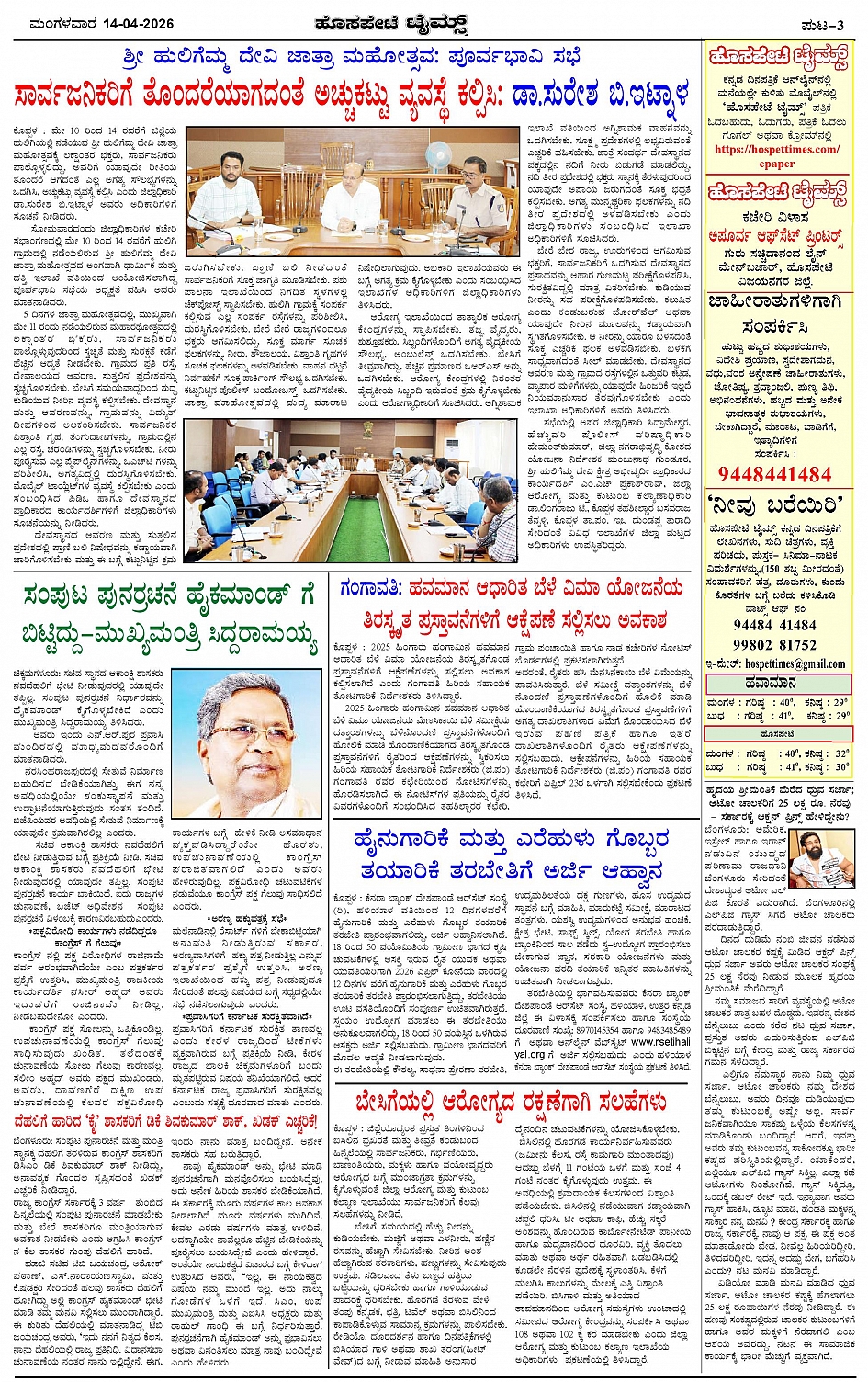 ಮಾಧ್ಯಮ ಅಕಾಡೆಮಿ ಪ್ರಶಸ್ತಿ ಪುರಸ್ಕೃತ 'ಹೊಸಪೇಟೆ ಟೈಮ್ಸ್' Page: 3 April 14, 2026 << First << 3 >> Last >> Page 1Page 2Page 3Page 4 × ಮಾಧ್ಯಮ ಅಕಾಡೆಮಿ ಪ್ರಶಸ್ತಿ ಪುರಸ್ಕೃತ 'ಹೊಸಪೇಟೆ ಟೈಮ್ಸ್' HPT-14042026-4-page-001HPT-14042026-4-page-002HPT-14042026-4-page-003HPT-14042026-4-page-004 << First << 3 >> Last >> HPT-14042026-4-page-001HPT-14042026-4-page-002HPT-14042026-4-page-003HPT-14042026-4-page-004 HPT-14042026-4-page-003