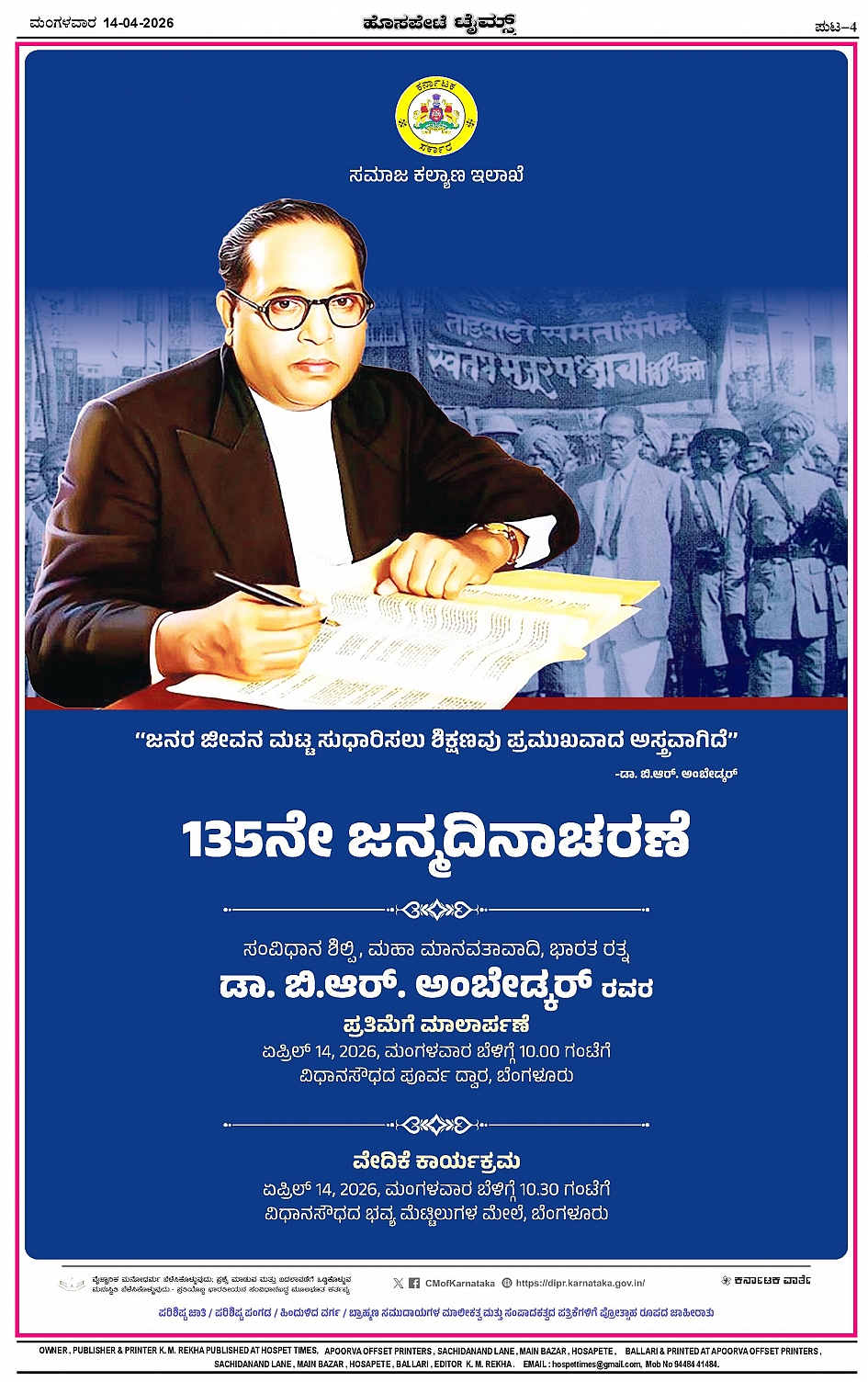 ಮಾಧ್ಯಮ ಅಕಾಡೆಮಿ ಪ್ರಶಸ್ತಿ ಪುರಸ್ಕೃತ 'ಹೊಸಪೇಟೆ ಟೈಮ್ಸ್' Page: 4 April 14, 2026 << First << 4 >> Last >> Page 1Page 2Page 3Page 4 × ಮಾಧ್ಯಮ ಅಕಾಡೆಮಿ ಪ್ರಶಸ್ತಿ ಪುರಸ್ಕೃತ 'ಹೊಸಪೇಟೆ ಟೈಮ್ಸ್' HPT-14042026-4-page-001HPT-14042026-4-page-002HPT-14042026-4-page-003HPT-14042026-4-page-004 << First << 4 >> Last >> HPT-14042026-4-page-001HPT-14042026-4-page-002HPT-14042026-4-page-003HPT-14042026-4-page-004 HPT-14042026-4-page-004
