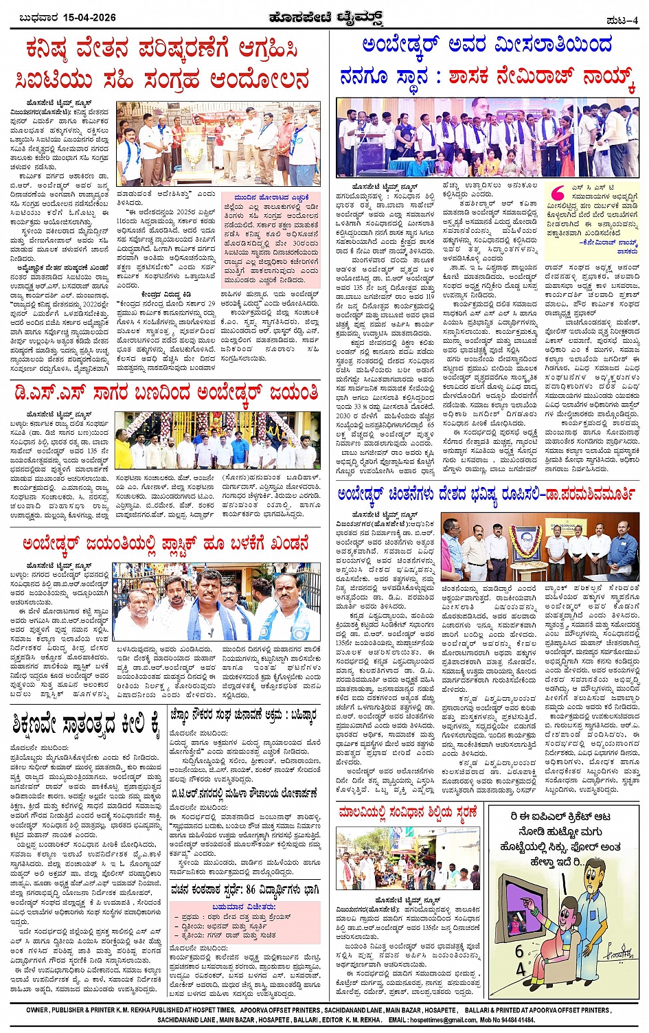 ಮಾಧ್ಯಮ ಅಕಾಡೆಮಿ ಪ್ರಶಸ್ತಿ ಪುರಸ್ಕೃತ 'ಹೊಸಪೇಟೆ ಟೈಮ್ಸ್' Page: 4 April 15, 2026 << First << 4 >> Last >> Page 1Page 2Page 3Page 4 × ಮಾಧ್ಯಮ ಅಕಾಡೆಮಿ ಪ್ರಶಸ್ತಿ ಪುರಸ್ಕೃತ 'ಹೊಸಪೇಟೆ ಟೈಮ್ಸ್' HPT-15042026-4-page-001HPT-15042026-4-page-002HPT-15042026-4-page-003HPT-15042026-4-page-004 << First << 4 >> Last >> HPT-15042026-4-page-001HPT-15042026-4-page-002HPT-15042026-4-page-003HPT-15042026-4-page-004 HPT-15042026-4-page-004