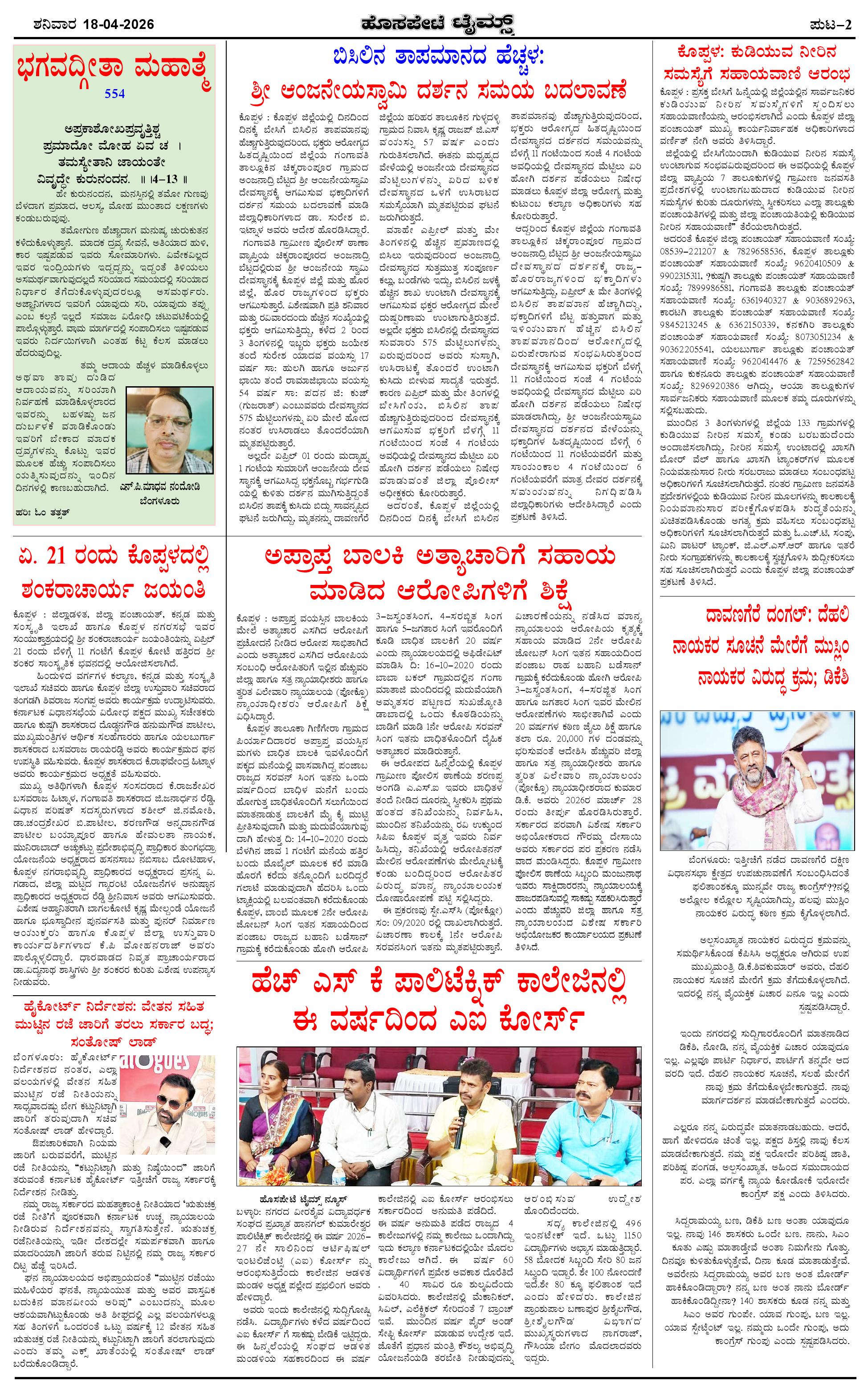 ಮಾಧ್ಯಮ ಅಕಾಡೆಮಿ ಪ್ರಶಸ್ತಿ ಪುರಸ್ಕೃತ 'ಹೊಸಪೇಟೆ ಟೈಮ್ಸ್' Page: 2 April 18, 2026 << First << 2 >> Last >> Page 1Page 2Page 3Page 4 × ಮಾಧ್ಯಮ ಅಕಾಡೆಮಿ ಪ್ರಶಸ್ತಿ ಪುರಸ್ಕೃತ 'ಹೊಸಪೇಟೆ ಟೈಮ್ಸ್' HPT-18042026-4 PAGE-page-001HPT-18042026-4 PAGE-page-002HPT-18042026-4 PAGE-page-003HPT-18042026-4 PAGE-page-004 << First << 2 >> Last >> HPT-18042026-4 PAGE-page-001HPT-18042026-4 PAGE-page-002HPT-18042026-4 PAGE-page-003HPT-18042026-4 PAGE-page-004 HPT-18042026-4 PAGE-page-002