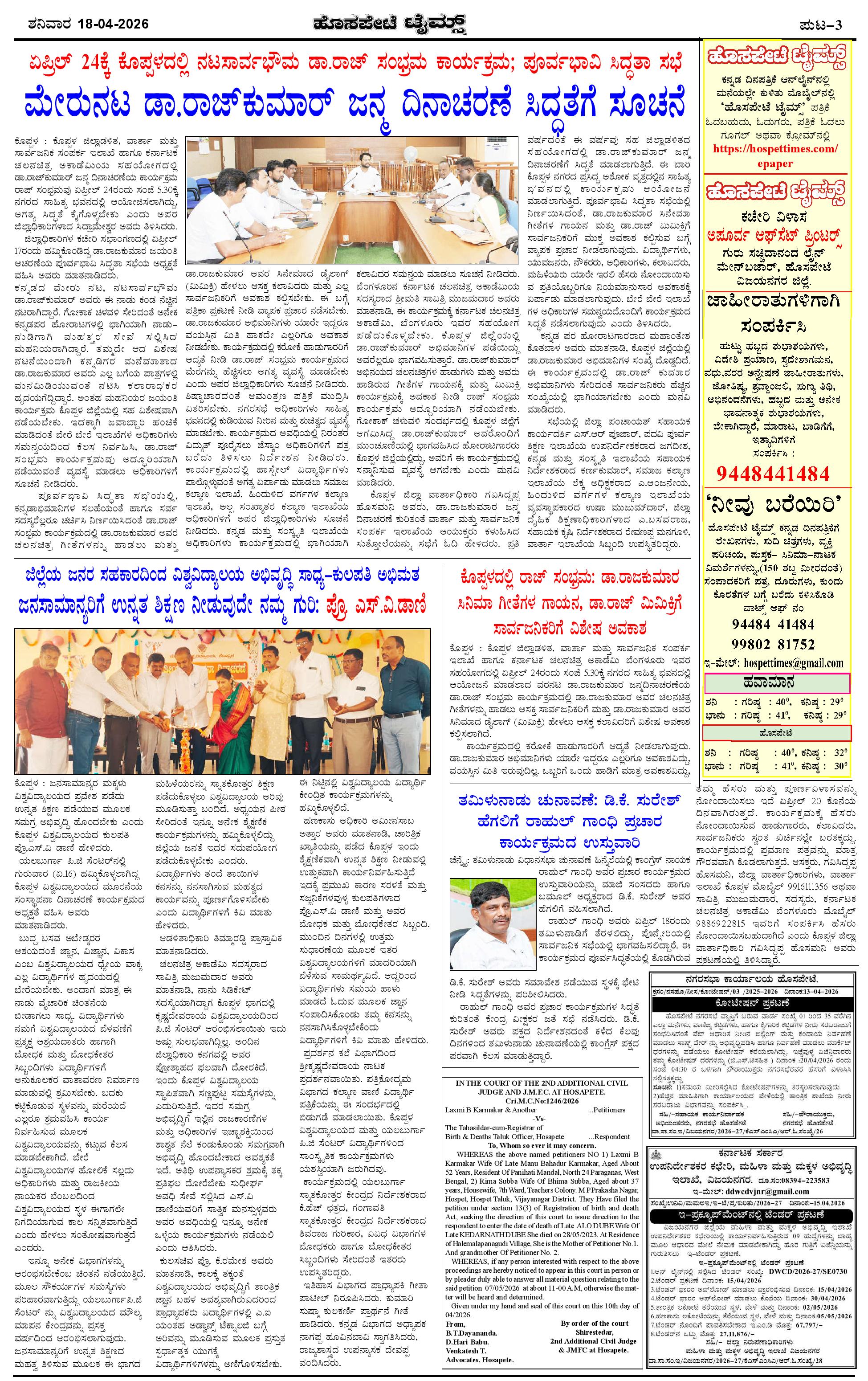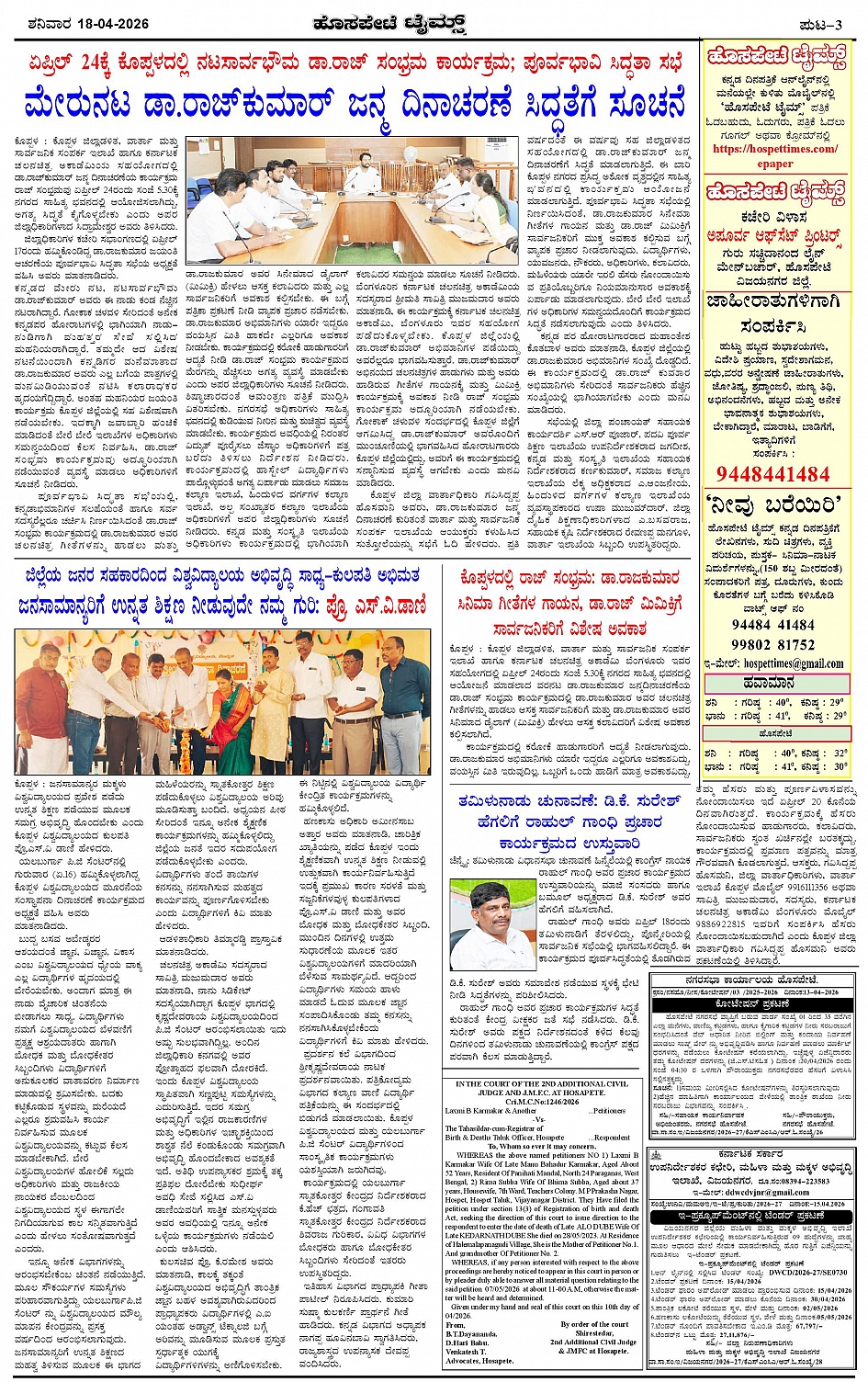 ಮಾಧ್ಯಮ ಅಕಾಡೆಮಿ ಪ್ರಶಸ್ತಿ ಪುರಸ್ಕೃತ 'ಹೊಸಪೇಟೆ ಟೈಮ್ಸ್' Page: 3 April 18, 2026 << First << 3 >> Last >> Page 1Page 2Page 3Page 4 × ಮಾಧ್ಯಮ ಅಕಾಡೆಮಿ ಪ್ರಶಸ್ತಿ ಪುರಸ್ಕೃತ 'ಹೊಸಪೇಟೆ ಟೈಮ್ಸ್' HPT-18042026-4 PAGE-page-001HPT-18042026-4 PAGE-page-002HPT-18042026-4 PAGE-page-003HPT-18042026-4 PAGE-page-004 << First << 3 >> Last >> HPT-18042026-4 PAGE-page-001HPT-18042026-4 PAGE-page-002HPT-18042026-4 PAGE-page-003HPT-18042026-4 PAGE-page-004 HPT-18042026-4 PAGE-page-003
