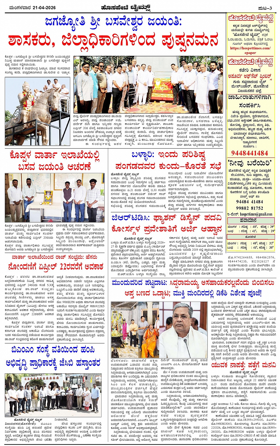 ಮಾಧ್ಯಮ ಅಕಾಡೆಮಿ ಪ್ರಶಸ್ತಿ ಪುರಸ್ಕೃತ 'ಹೊಸಪೇಟೆ ಟೈಮ್ಸ್' Page: 3 April 21, 2026 << First << 3 >> Last >> Page 1Page 2Page 3Page 4 × ಮಾಧ್ಯಮ ಅಕಾಡೆಮಿ ಪ್ರಶಸ್ತಿ ಪುರಸ್ಕೃತ 'ಹೊಸಪೇಟೆ ಟೈಮ್ಸ್' HPT-21042026-page-001HPT-21042026-page-002HPT-21042026-page-003HPT-21042026-page-004 << First << 3 >> Last >> HPT-21042026-page-001HPT-21042026-page-002HPT-21042026-page-003HPT-21042026-page-004 HPT-21042026-page-003