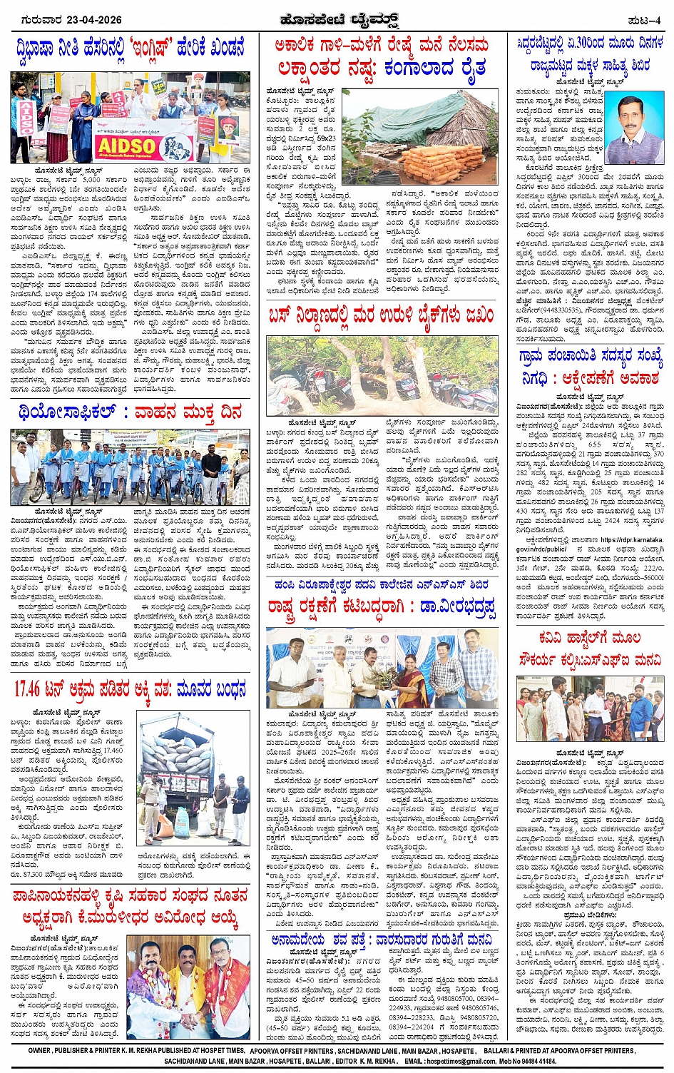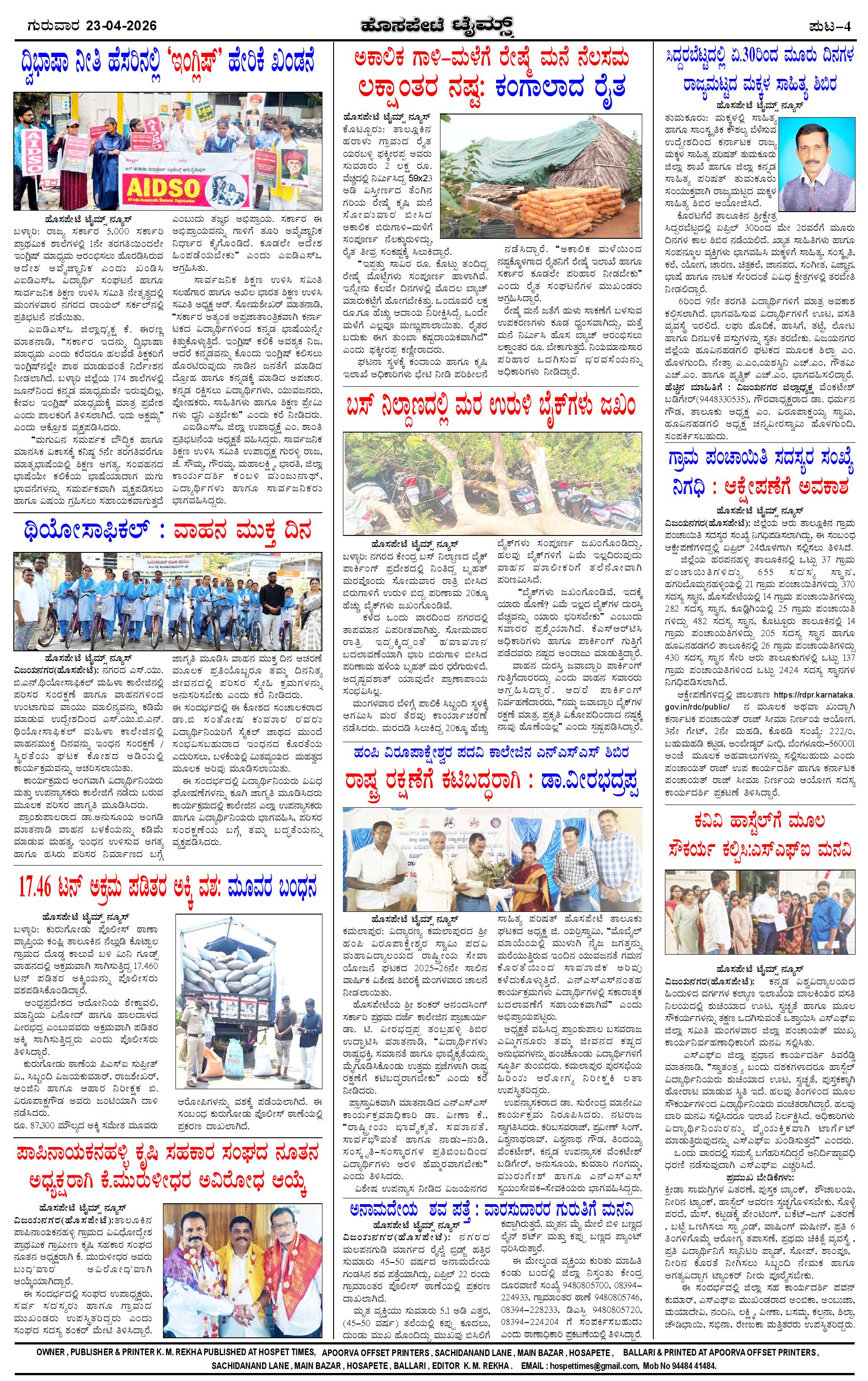 ಮಾಧ್ಯಮ ಅಕಾಡೆಮಿ ಪ್ರಶಸ್ತಿ ಪುರಸ್ಕೃತ 'ಹೊಸಪೇಟೆ ಟೈಮ್ಸ್' Page: 4 April 23, 2026 << First << 4 >> Last >> Page 1Page 2Page 3Page 4 × ಮಾಧ್ಯಮ ಅಕಾಡೆಮಿ ಪ್ರಶಸ್ತಿ ಪುರಸ್ಕೃತ 'ಹೊಸಪೇಟೆ ಟೈಮ್ಸ್' HPT-23042026-4-page-001HPT-23042026-4-page-002HPT-23042026-4-page-003HPT-23042026-4-page-004 << First << 4 >> Last >> HPT-23042026-4-page-001HPT-23042026-4-page-002HPT-23042026-4-page-003HPT-23042026-4-page-004 HPT-23042026-4-page-004