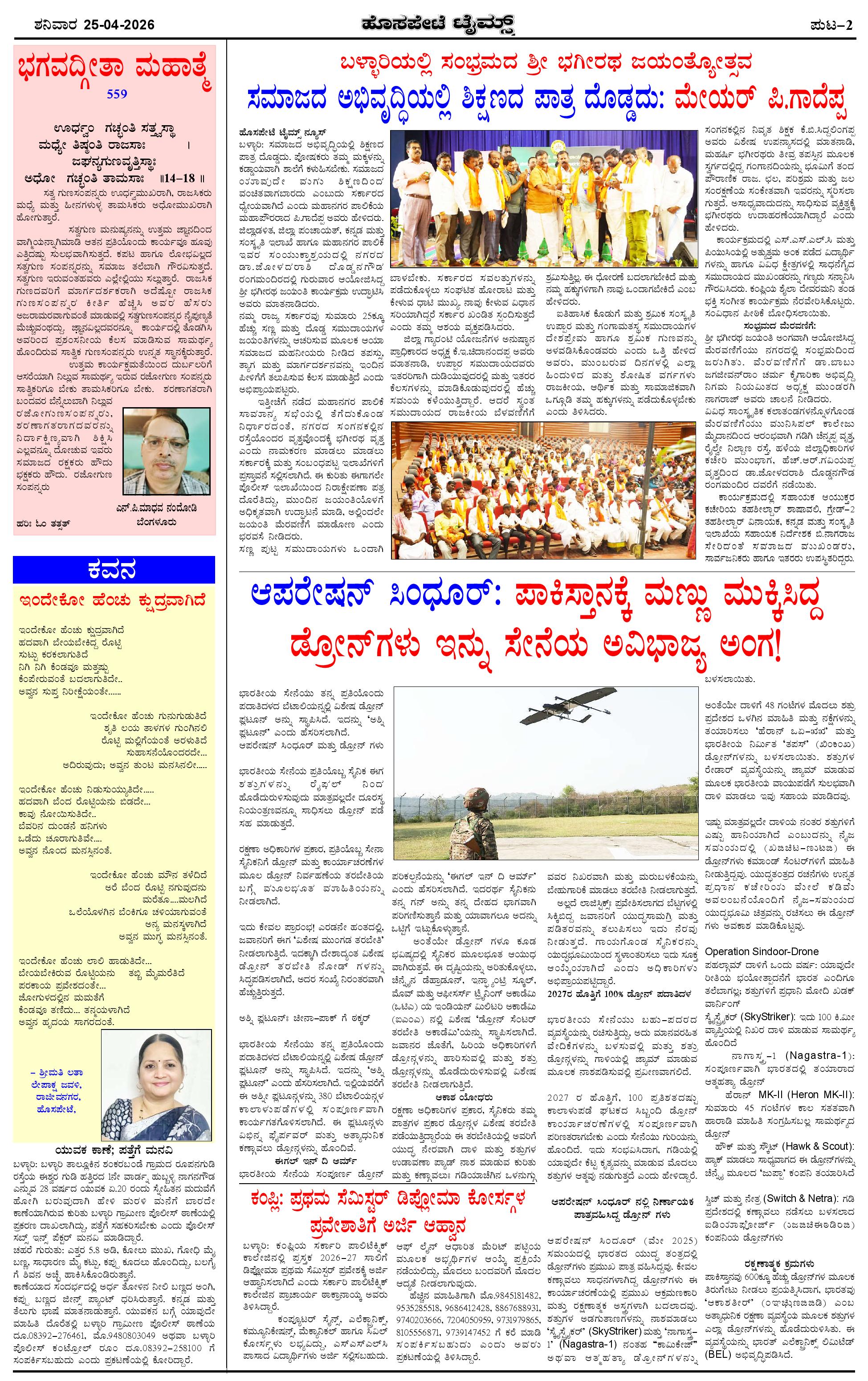 ಮಾಧ್ಯಮ ಅಕಾಡೆಮಿ ಪ್ರಶಸ್ತಿ ಪುರಸ್ಕೃತ 'ಹೊಸಪೇಟೆ ಟೈಮ್ಸ್' Page: 2 April 25, 2026 << First << 2 >> Last >> Page 1Page 2Page 3Page 4 × ಮಾಧ್ಯಮ ಅಕಾಡೆಮಿ ಪ್ರಶಸ್ತಿ ಪುರಸ್ಕೃತ 'ಹೊಸಪೇಟೆ ಟೈಮ್ಸ್' HPT-25042026-4-page-001HPT-25042026-4-page-002HPT-25042026-4-page-003HPT-25042026-4-page-004 << First << 2 >> Last >> HPT-25042026-4-page-001HPT-25042026-4-page-002HPT-25042026-4-page-003HPT-25042026-4-page-004 HPT-25042026-4-page-002