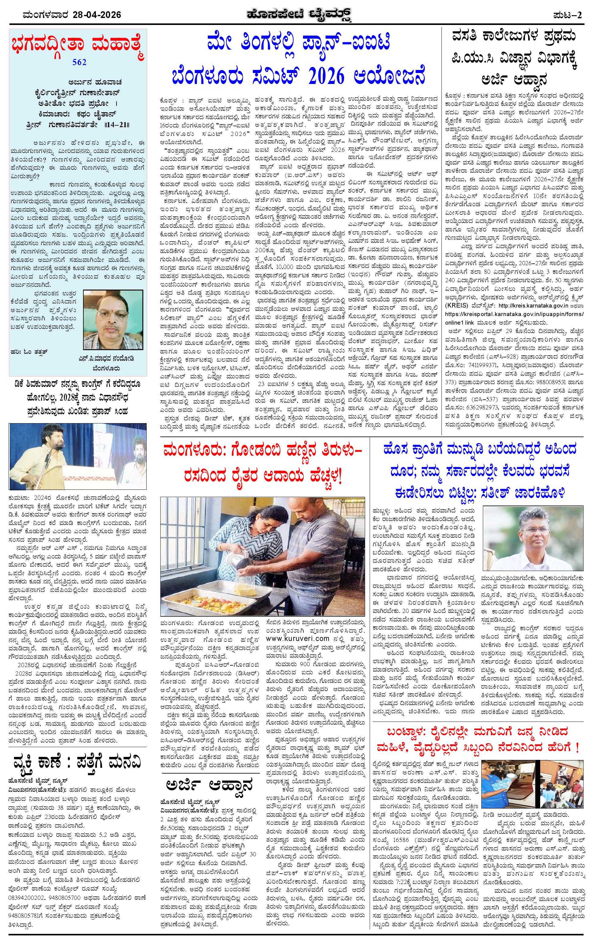 ಮಾಧ್ಯಮ ಅಕಾಡೆಮಿ ಪ್ರಶಸ್ತಿ ಪುರಸ್ಕೃತ 'ಹೊಸಪೇಟೆ ಟೈಮ್ಸ್' Page: 2 April 28, 2026 ಸ್ಥಳೀಯ ಸುದ್ದಿಗಳ ನೈಜ ಪ್ರತಿಬಿಂಬ << First << 2 >> Last >> Page 1Page 2Page 3Page 4 × ಮಾಧ್ಯಮ ಅಕಾಡೆಮಿ ಪ್ರಶಸ್ತಿ ಪುರಸ್ಕೃತ 'ಹೊಸಪೇಟೆ ಟೈಮ್ಸ್' HPT28042026.1-page-001HPT28042026.1-page-002HPT28042026.1-page-003HPT28042026.1-page-004 << First << 2 >> Last >> HPT28042026.1-page-001HPT28042026.1-page-002HPT28042026.1-page-003HPT28042026.1-page-004 HPT28042026.1-page-002