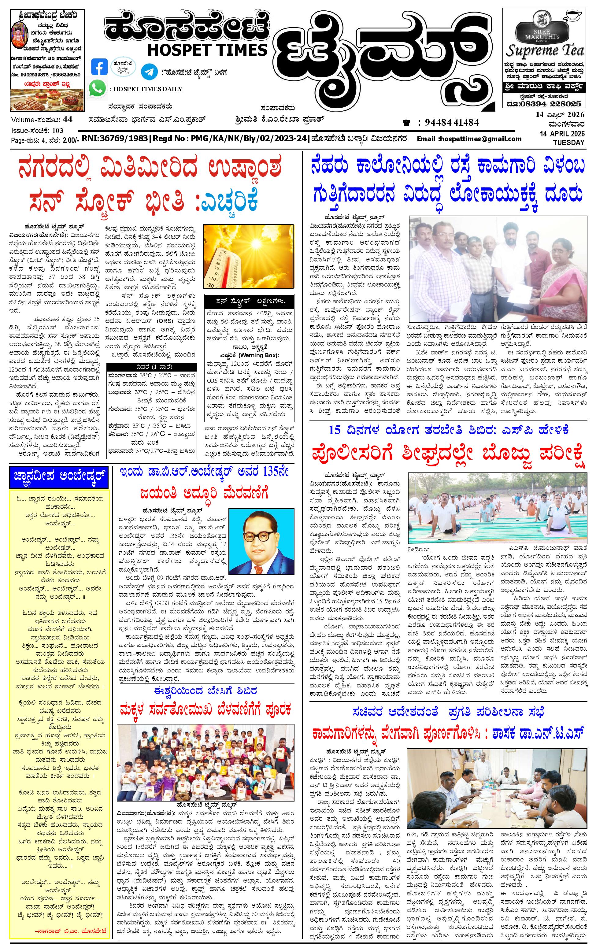 ಮಾಧ್ಯಮ ಅಕಾಡೆಮಿ ಪ್ರಶಸ್ತಿ ಪುರಸ್ಕೃತ 'ಹೊಸಪೇಟೆ ಟೈಮ್ಸ್' April 14, 2026 << First << 1 >> Last >> Page 1Page 2Page 3Page 4 × ಮಾಧ್ಯಮ ಅಕಾಡೆಮಿ ಪ್ರಶಸ್ತಿ ಪುರಸ್ಕೃತ 'ಹೊಸಪೇಟೆ ಟೈಮ್ಸ್' HPT-14042026-4-page-001HPT-14042026-4-page-002HPT-14042026-4-page-003HPT-14042026-4-page-004 << First << 1 >> Last >> HPT-14042026-4-page-001HPT-14042026-4-page-002HPT-14042026-4-page-003HPT-14042026-4-page-004 HPT-14042026-4-page-001