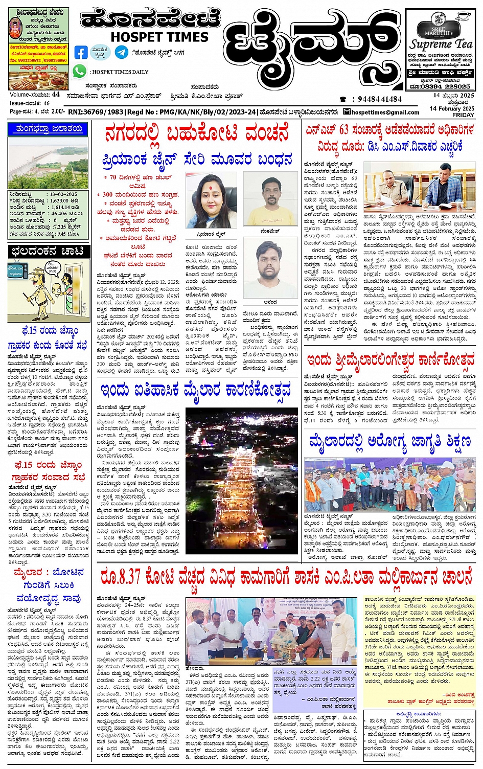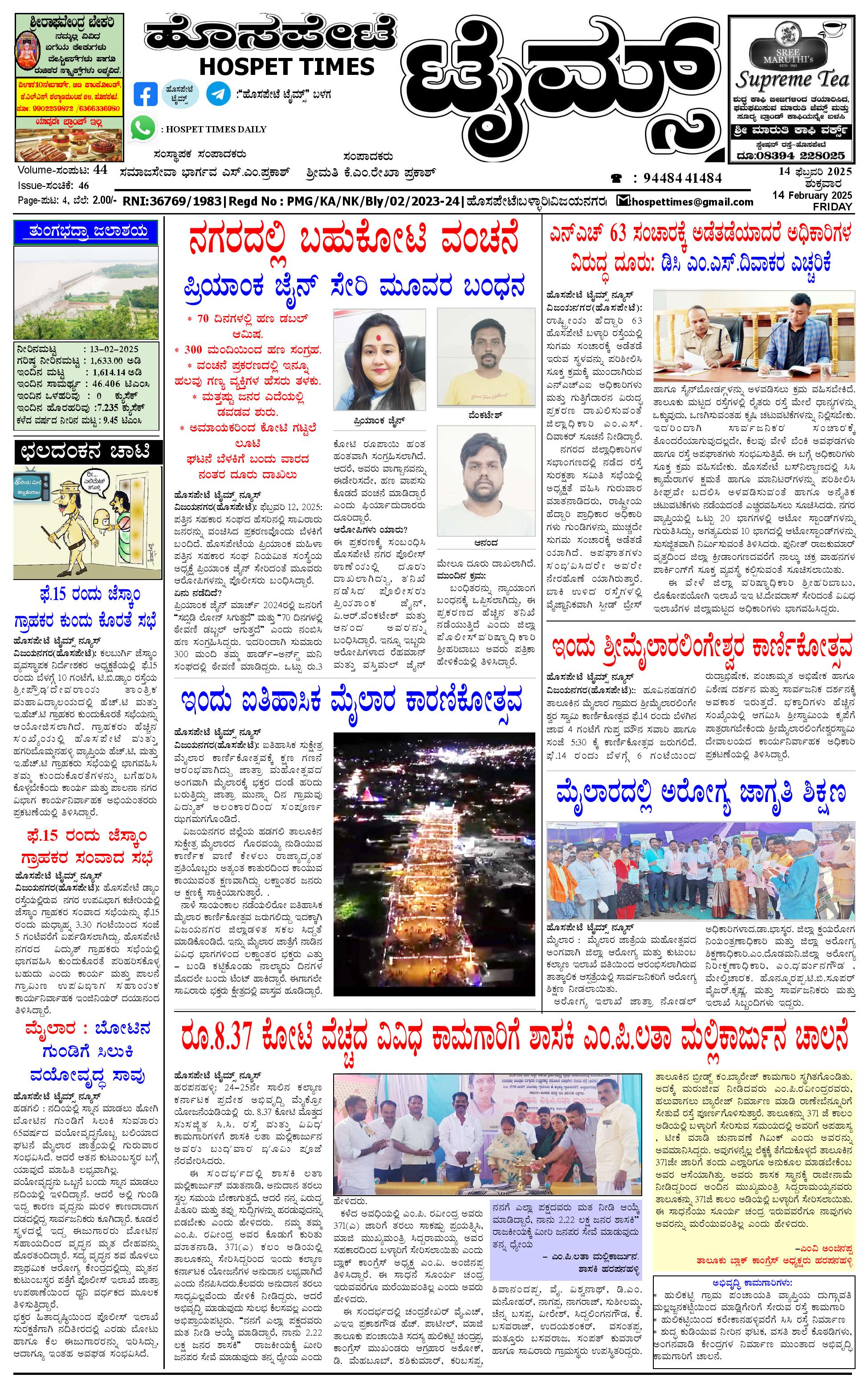 ಹೊಸಪೇಟೆ ಟೈಮ್ಸ್ 14 feb 2025