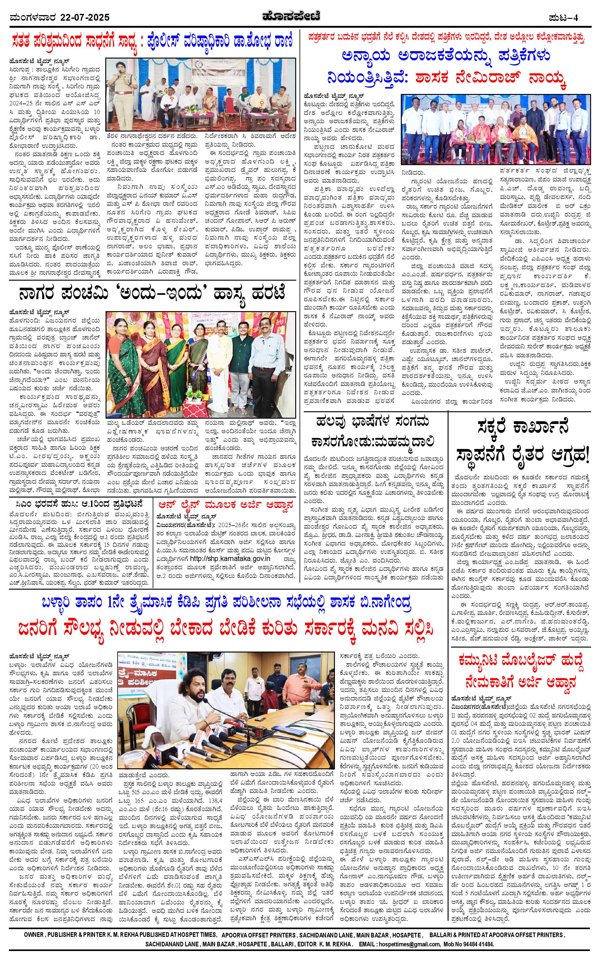 ಮಾಧ್ಯಮ ಅಕಾಡೆಮಿ ಪ್ರಶಸ್ತಿ ಪುರಸ್ಕೃತ 'ಹೊಸಪೇಟೆ ಟೈಮ್ಸ್' Page: 4 July 22, 2025 << First << 4 >> Last >> Page 1Page 2Page 3Page 4 × ಮಾಧ್ಯಮ ಅಕಾಡೆಮಿ ಪ್ರಶಸ್ತಿ ಪುರಸ್ಕೃತ 'ಹೊಸಪೇಟೆ ಟೈಮ್ಸ್' HPT-22072025--4-page-001HPT-22072025--4-page-002HPT-22072025--4-page-003HPT-22072025--4-page-004 << First << 4 >> Last >> HPT-22072025--4-page-001HPT-22072025--4-page-002HPT-22072025--4-page-003HPT-22072025--4-page-004 HPT-22072025--4-page-004