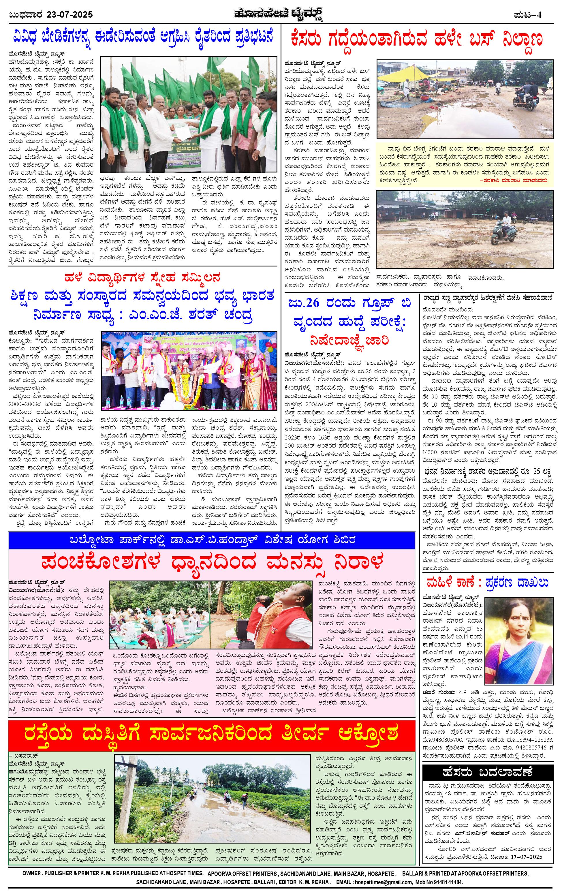 ಮಾಧ್ಯಮ ಅಕಾಡೆಮಿ ಪ್ರಶಸ್ತಿ ಪುರಸ್ಕೃತ 'ಹೊಸಪೇಟೆ ಟೈಮ್ಸ್' Page: 4 July 23, 2025 << First << 4 >> Last >> Page 1Page 2Page 3Page 4 × ಮಾಧ್ಯಮ ಅಕಾಡೆಮಿ ಪ್ರಶಸ್ತಿ ಪುರಸ್ಕೃತ 'ಹೊಸಪೇಟೆ ಟೈಮ್ಸ್' HPT-23072025--4-page-001HPT-23072025--4-page-002HPT-23072025--4-page-003HPT-23072025--4-page-004 << First << 4 >> Last >> HPT-23072025--4-page-001HPT-23072025--4-page-002HPT-23072025--4-page-003HPT-23072025--4-page-004 HPT-23072025--4-page-004